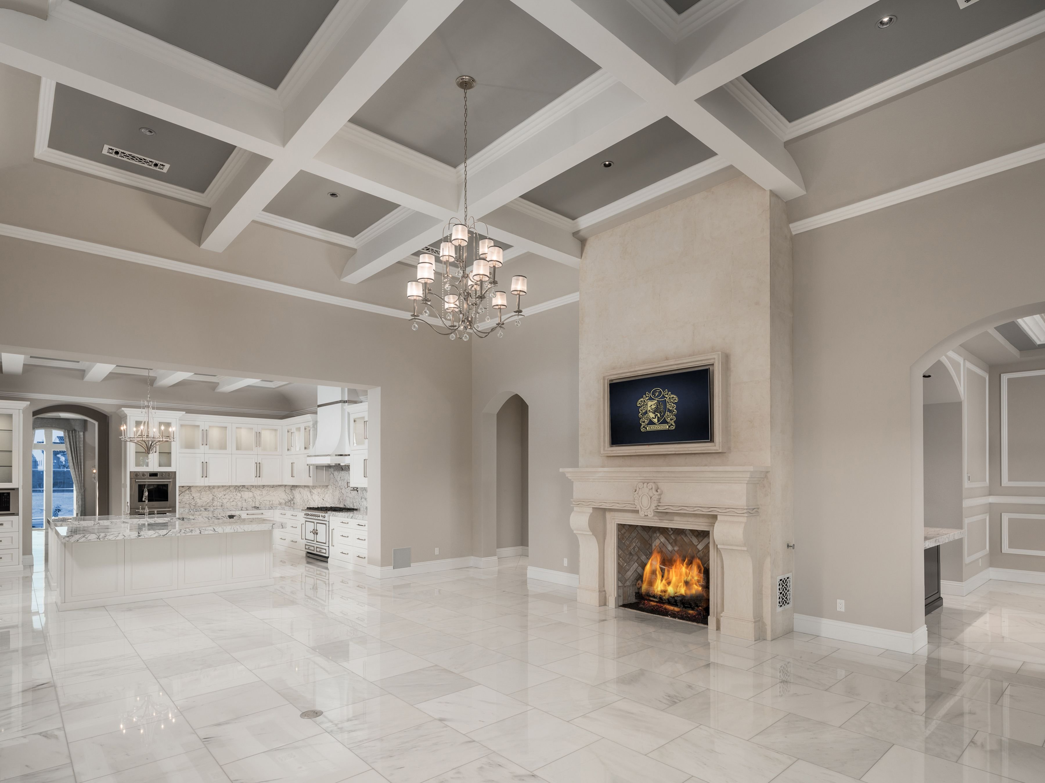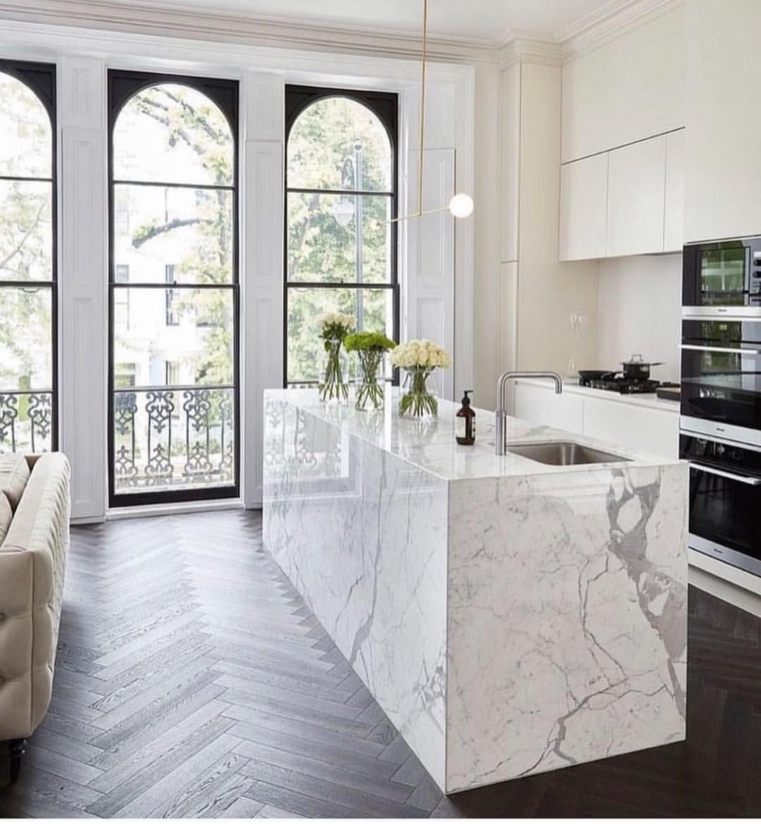 Кухня гостиная мраморный пол в доме