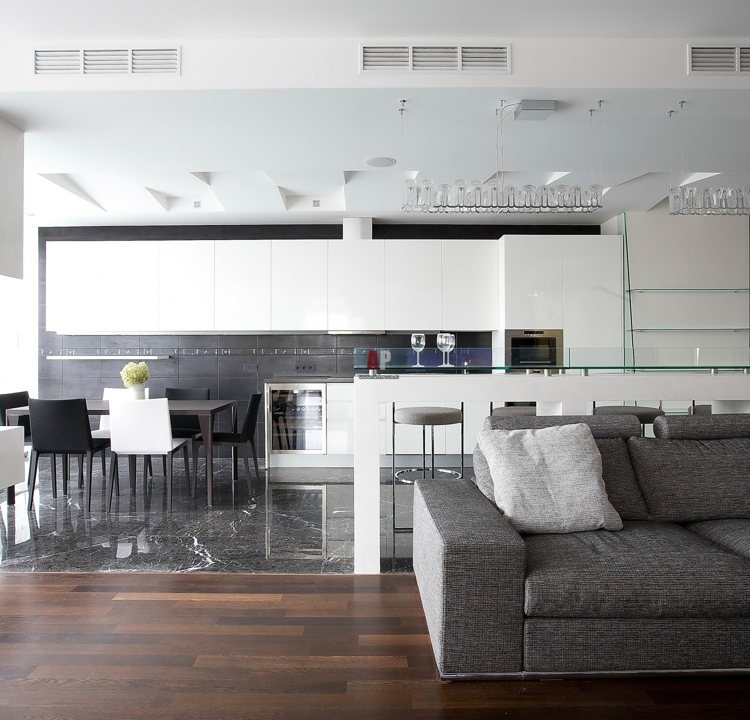 Мраморная плитка в кухне гостиной