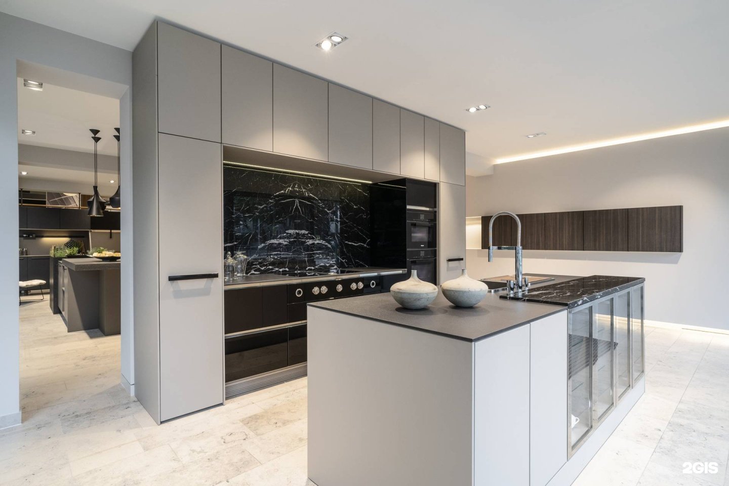 Кухня гостиная серый мрамор