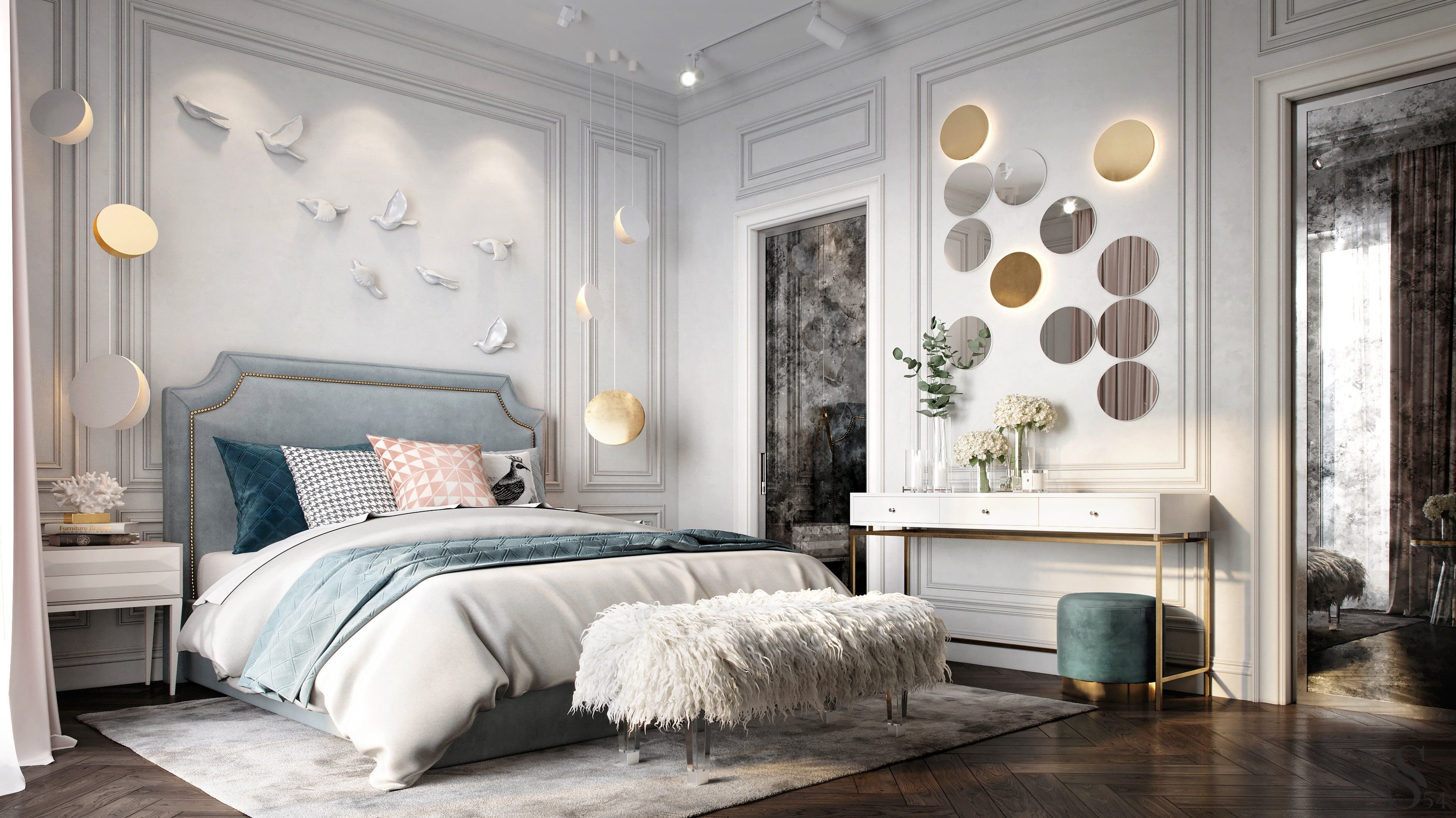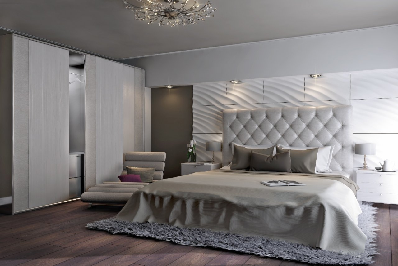 Спальня в современном стиле в светлых тонах 2022