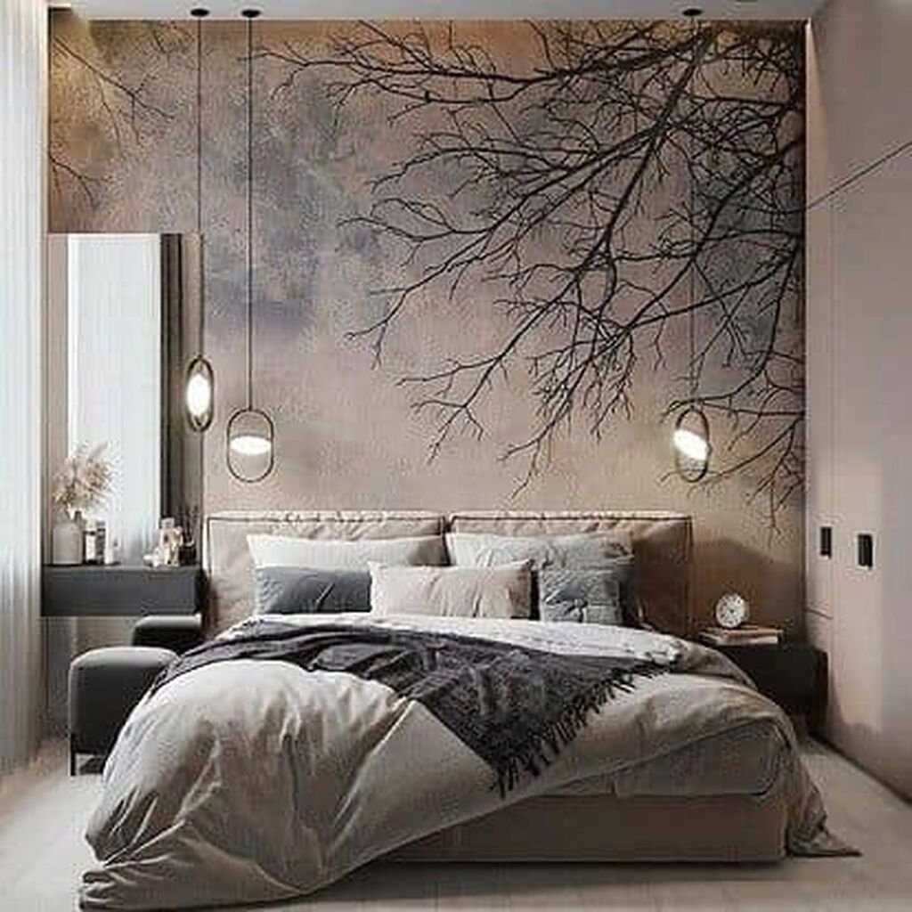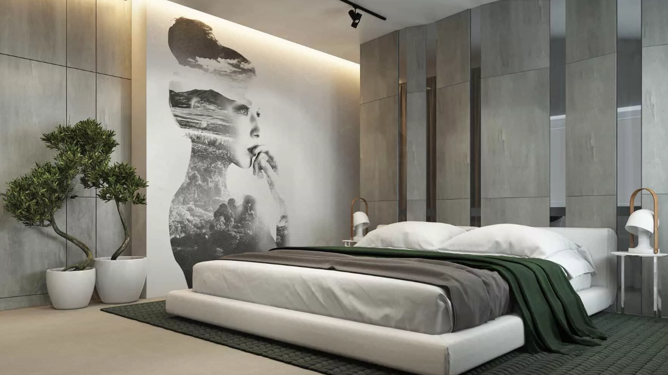 Фреска в спальне в современном стиле