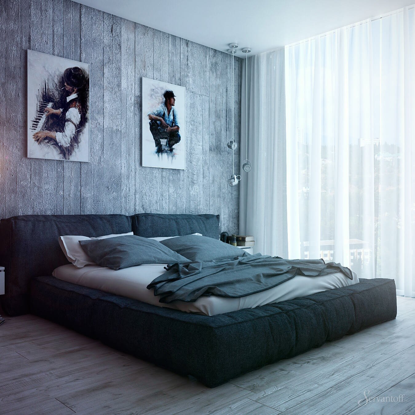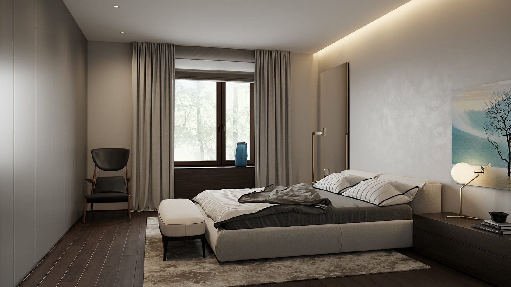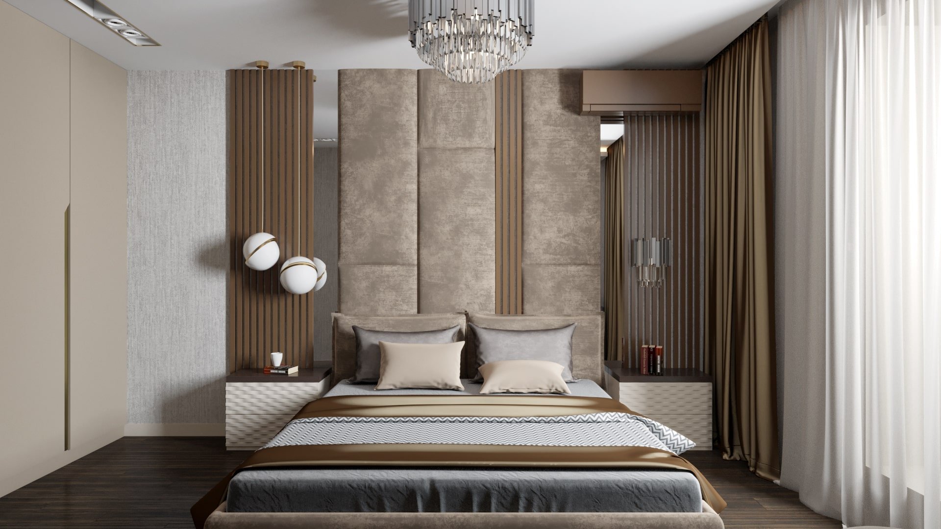 Спальня в стиле Контемпорари в серых тонах