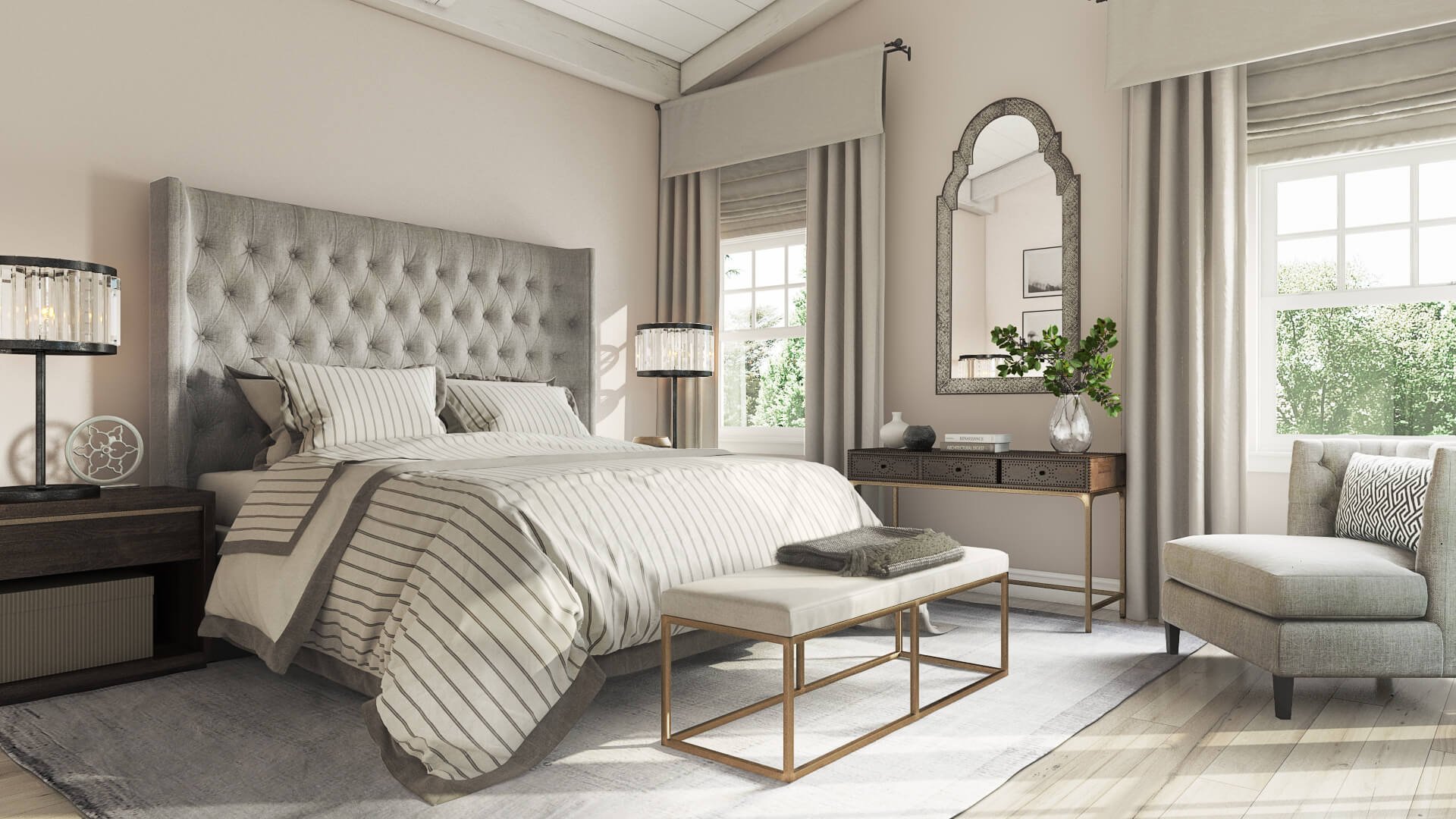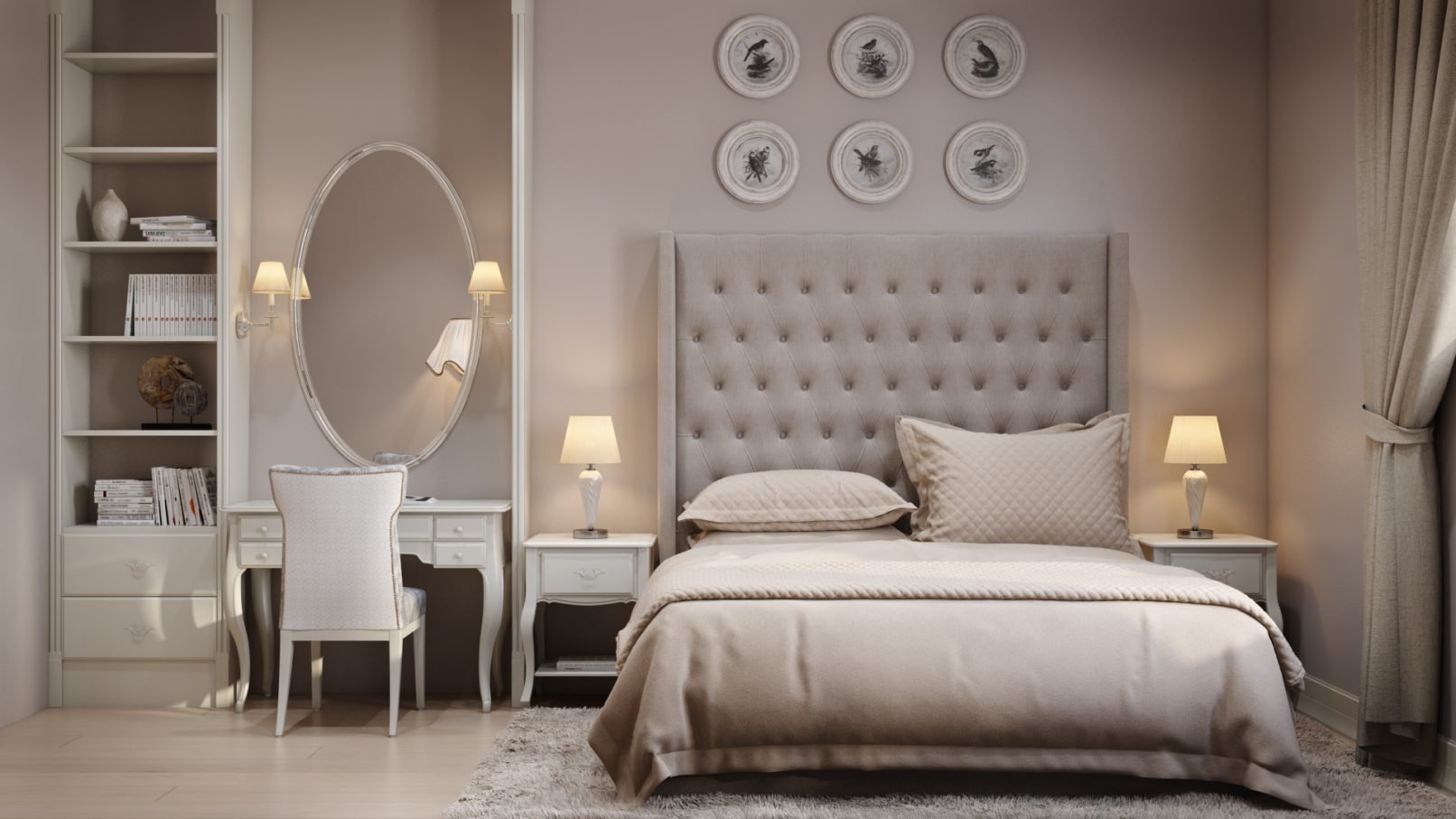 Спальня в пастельных бежевых тонах