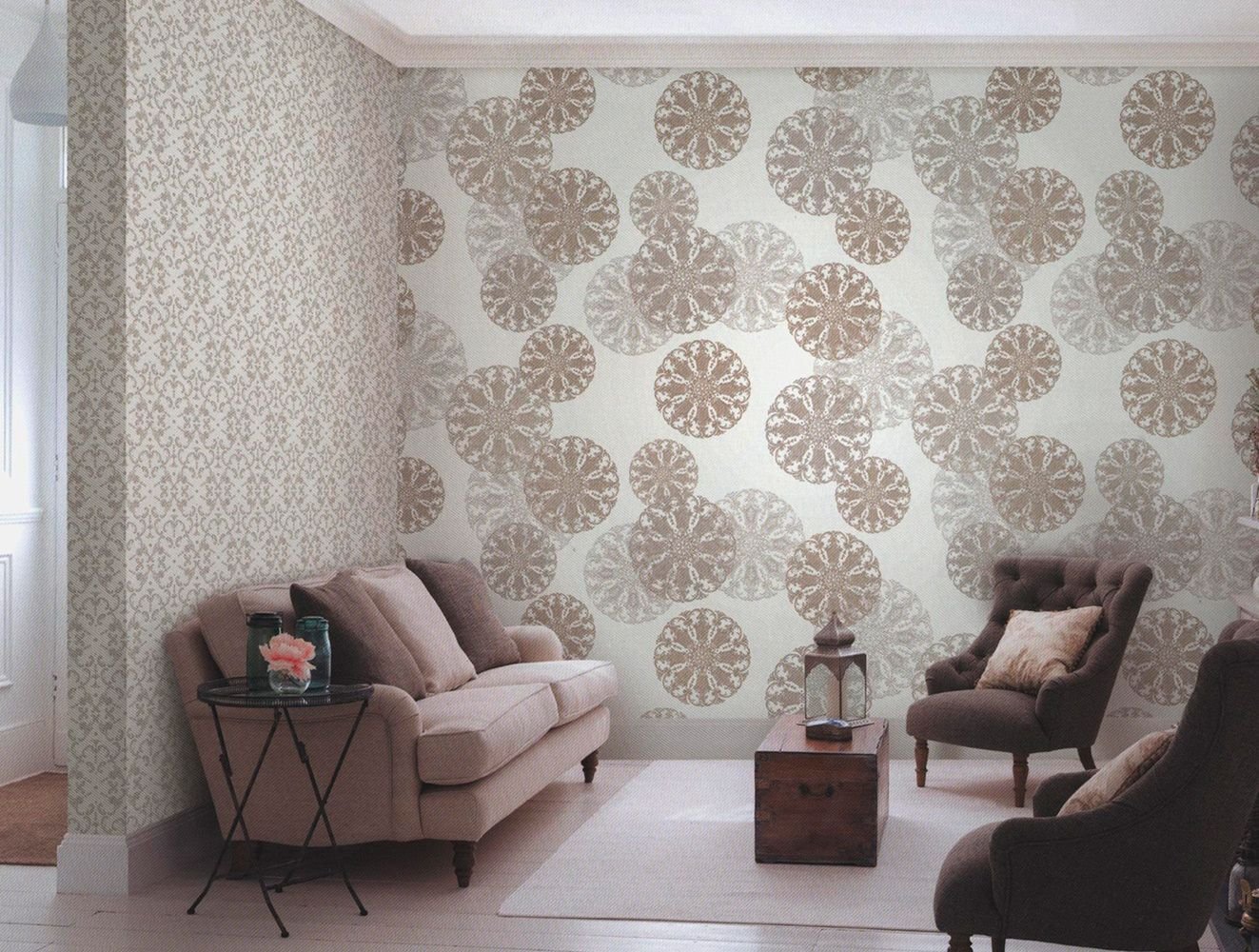 Обои с вензелями в зале