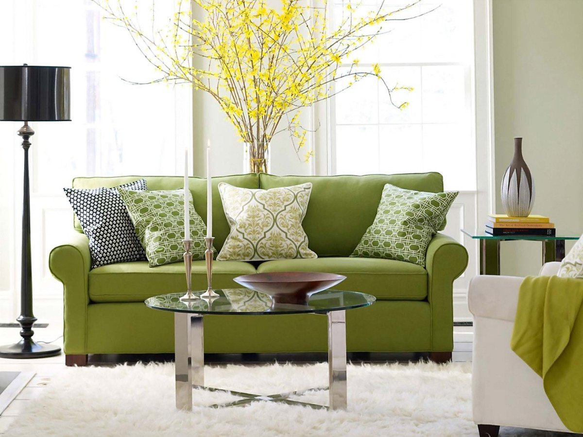 Салатовый диван в интерьере