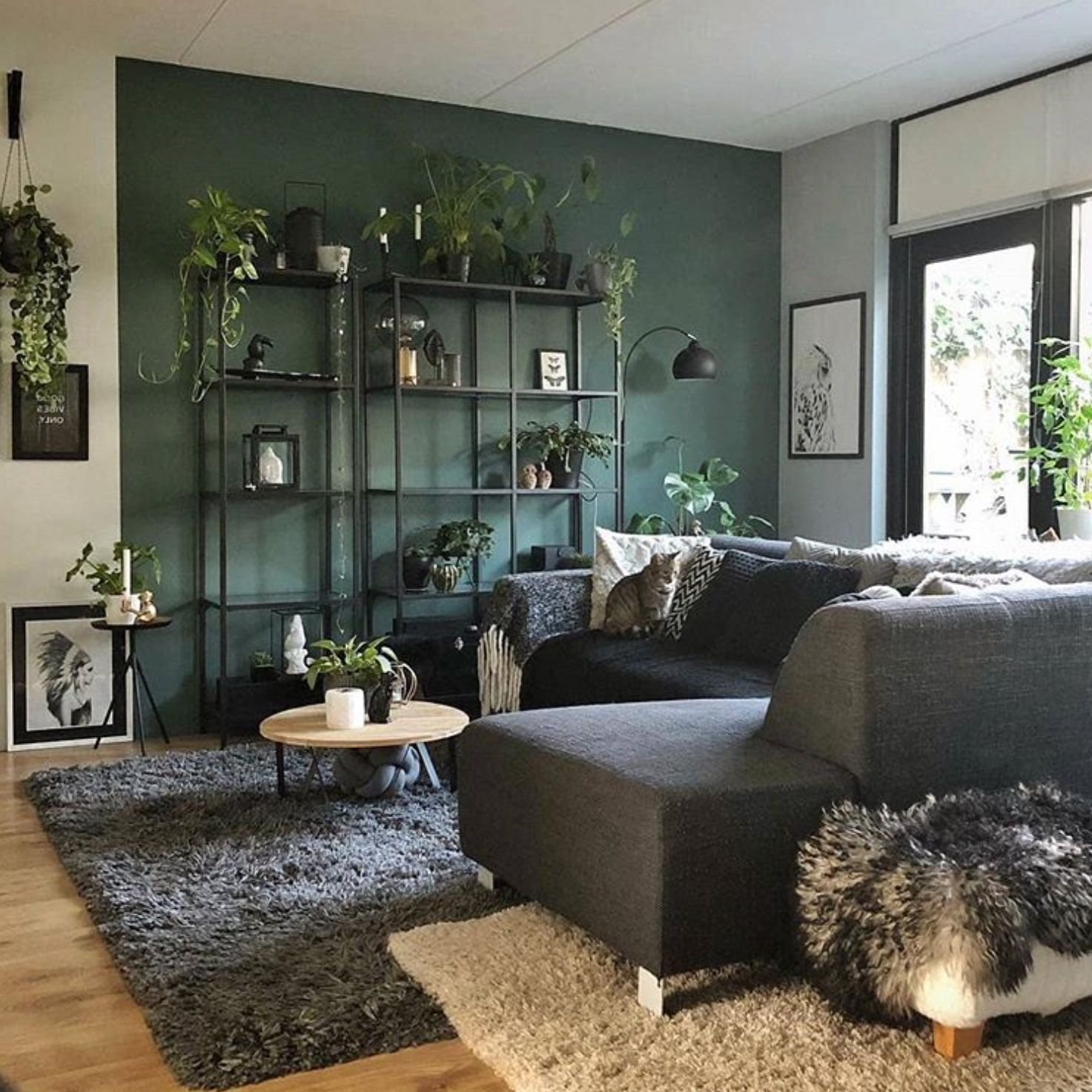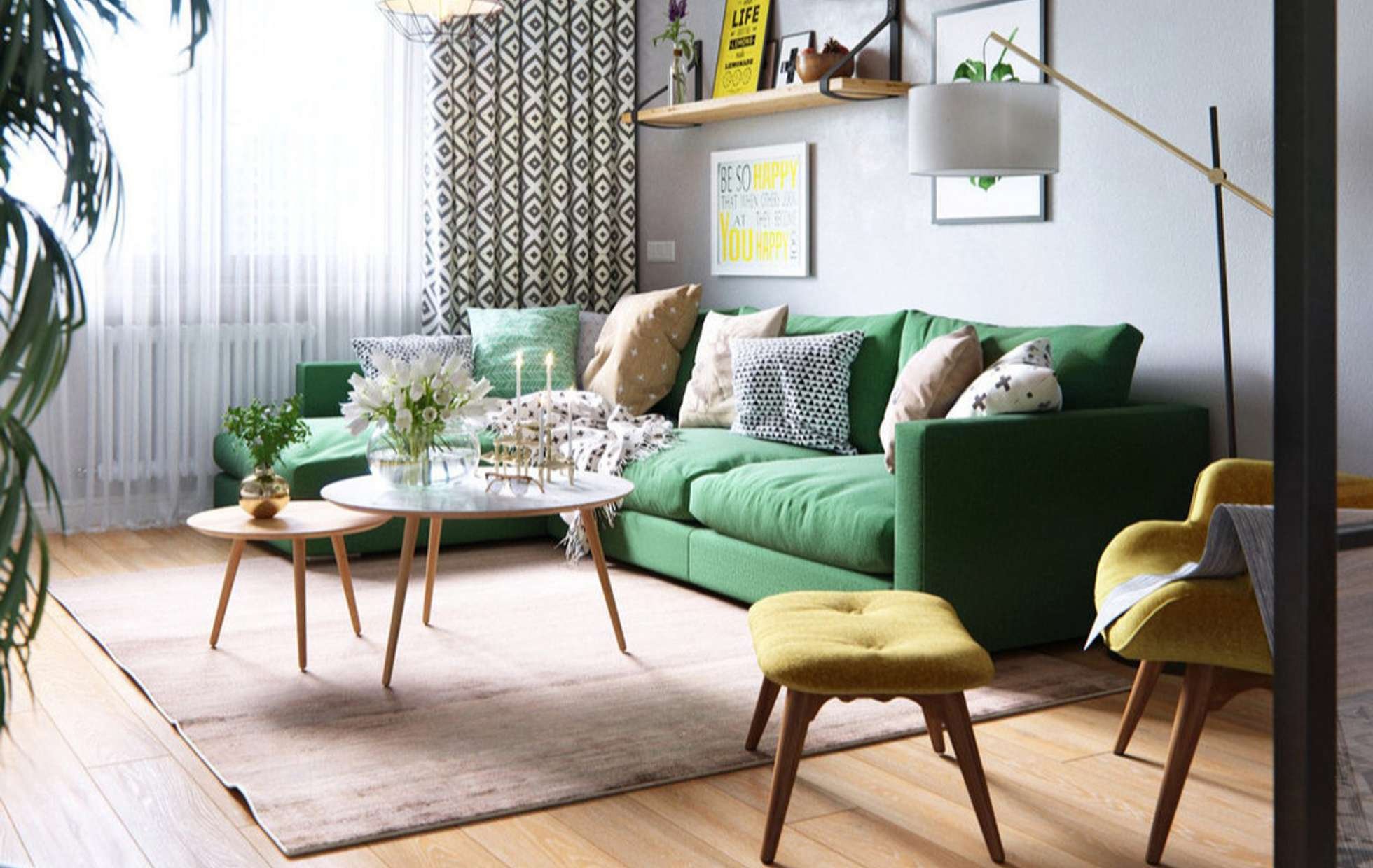 Скандинавский стиль с зеленым диваном