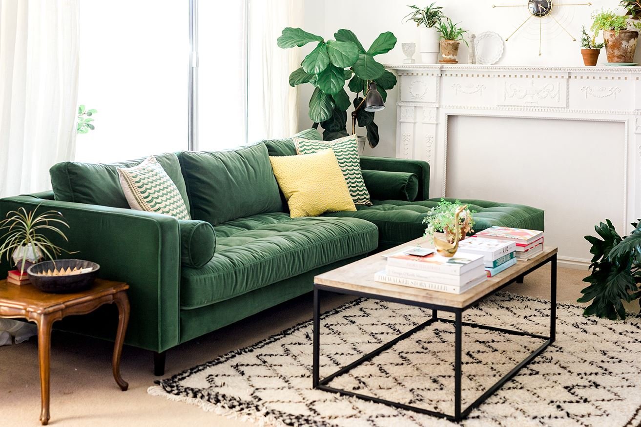 Изумрудный диван в интерье