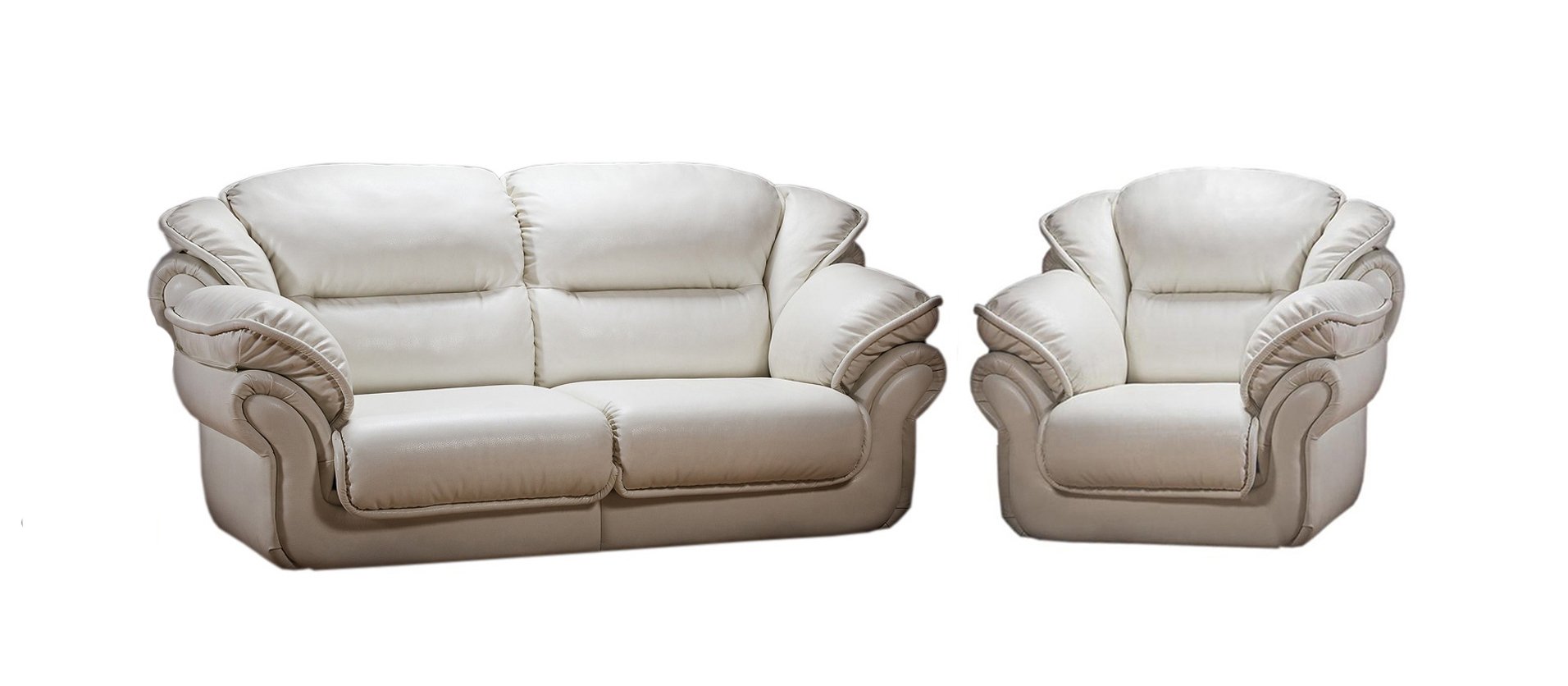 Диван с креслом комплект кожаный белый