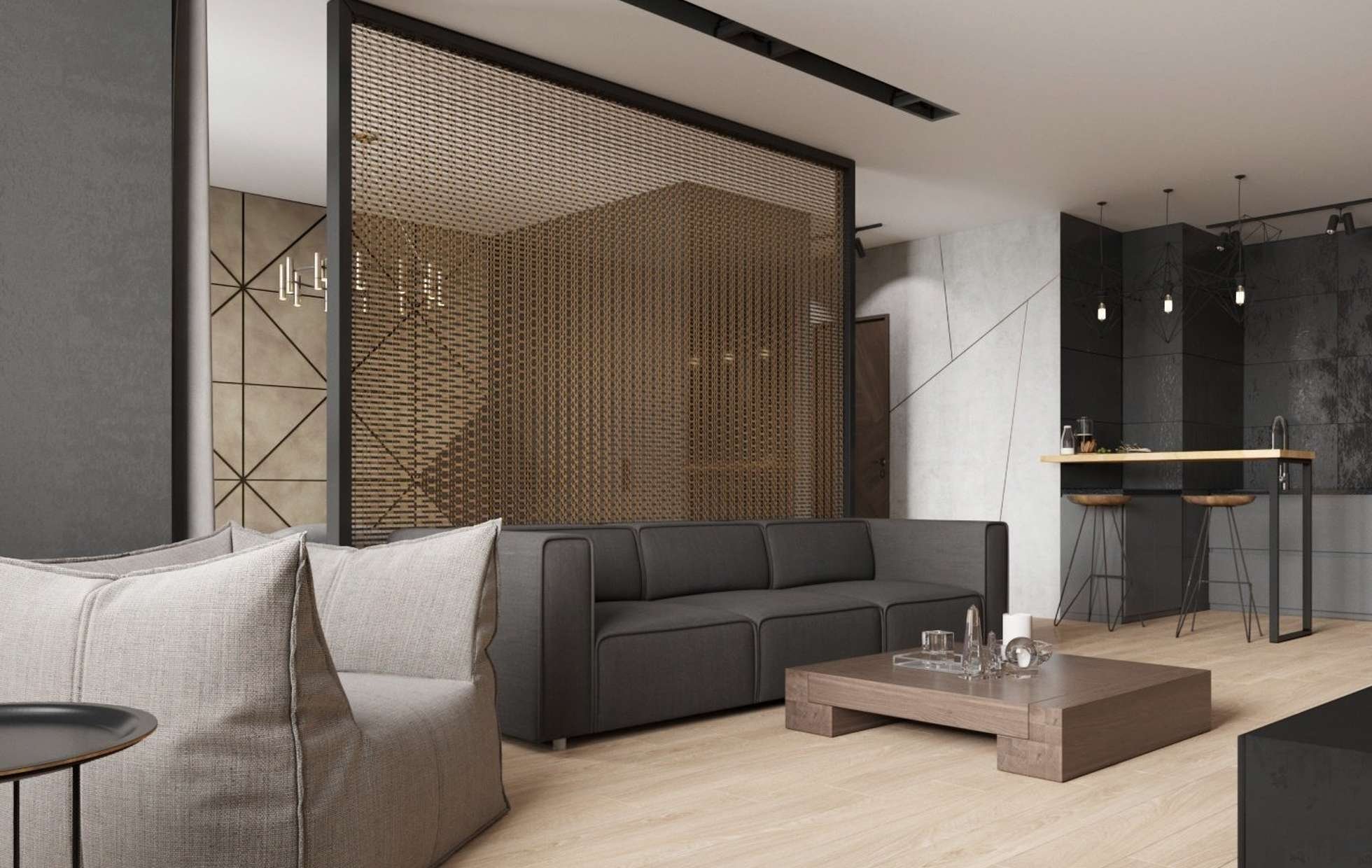 Перегородка в гостиной в стиле лофт