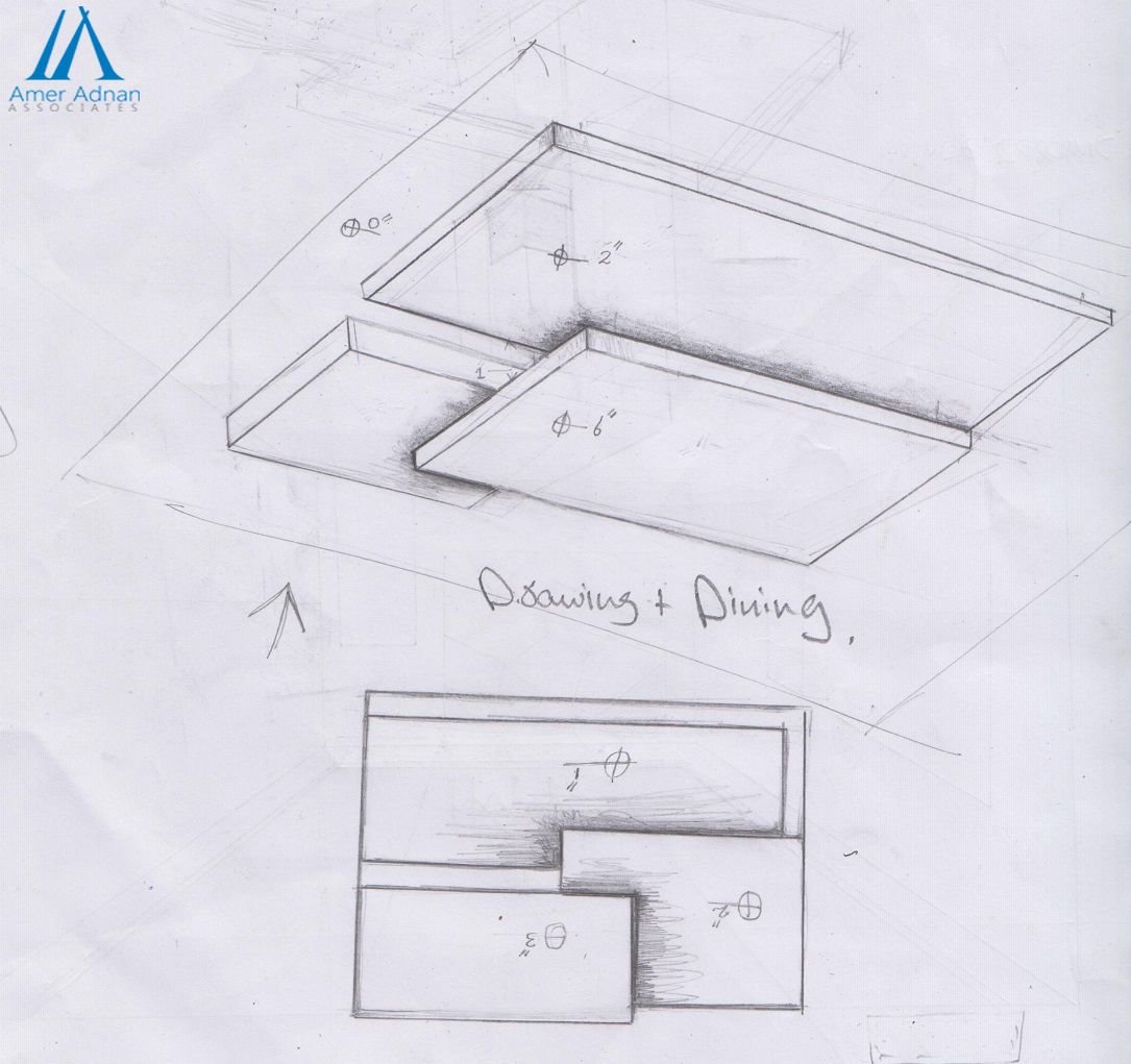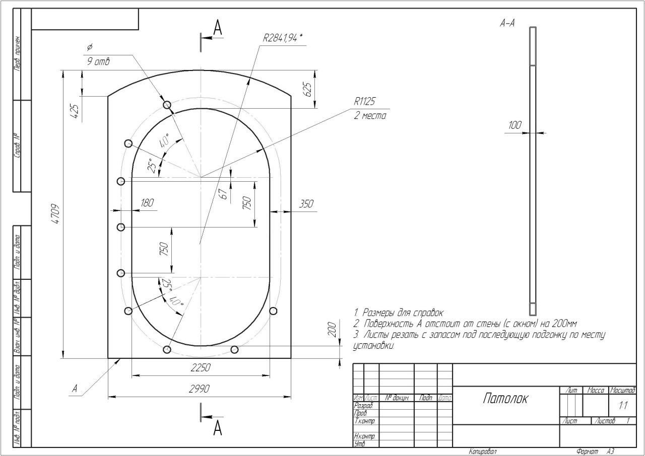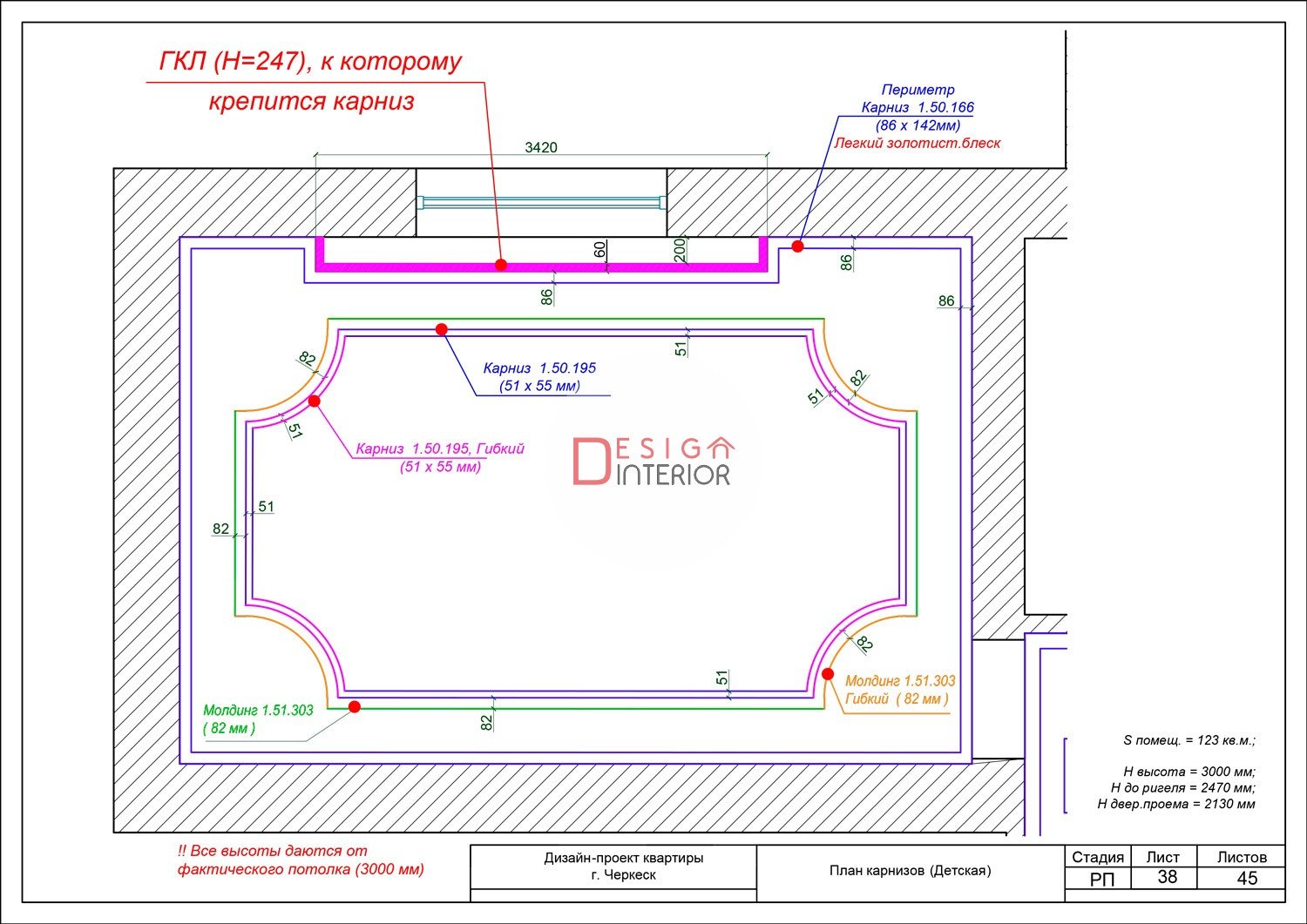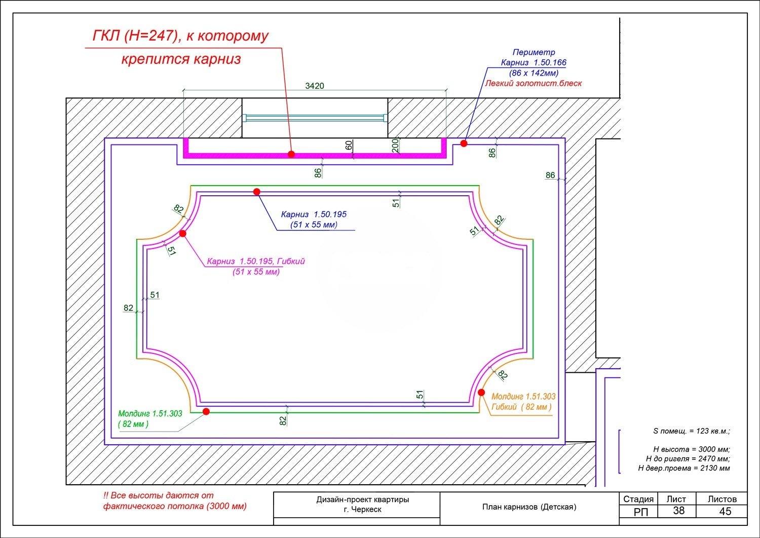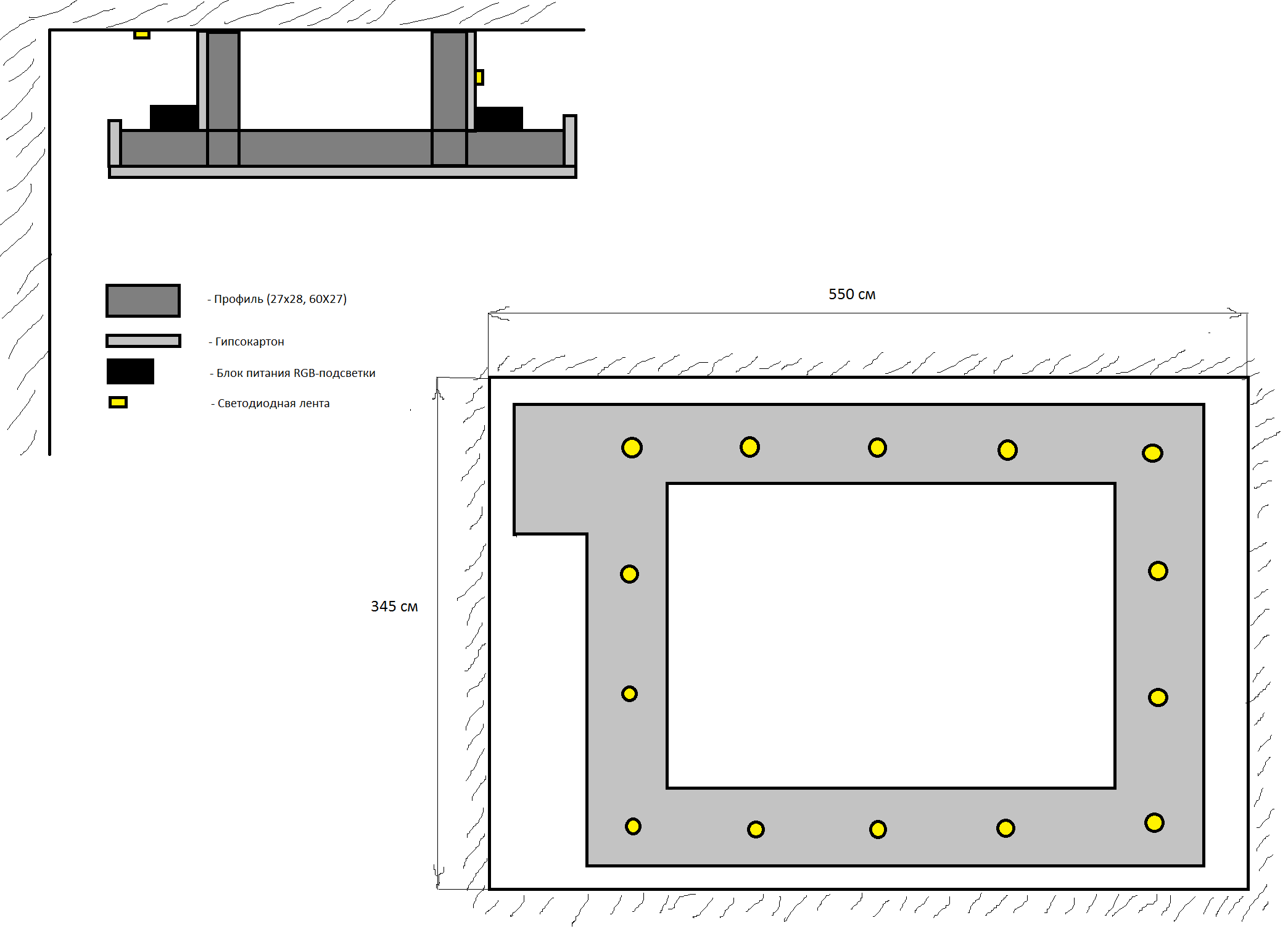 Чертеж двухуровневого потолка из гипсокартона с подсветкой