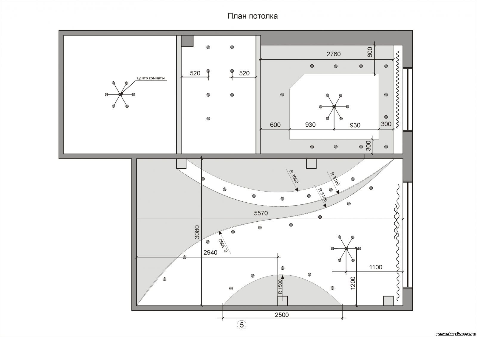 Фигурный потолок из гипсокартона для спальни с чертежами