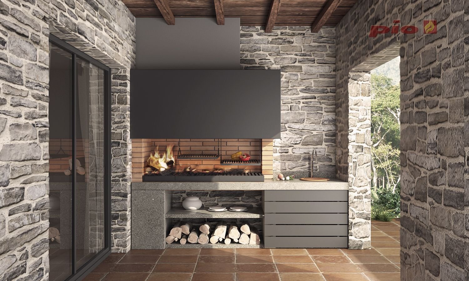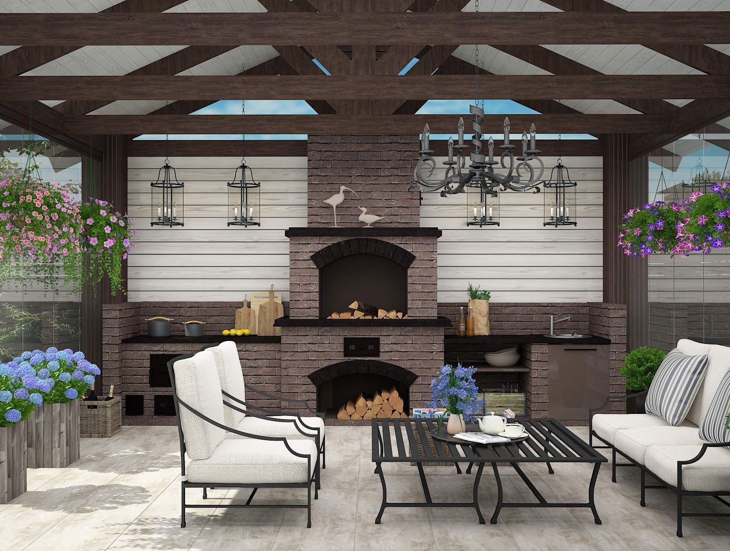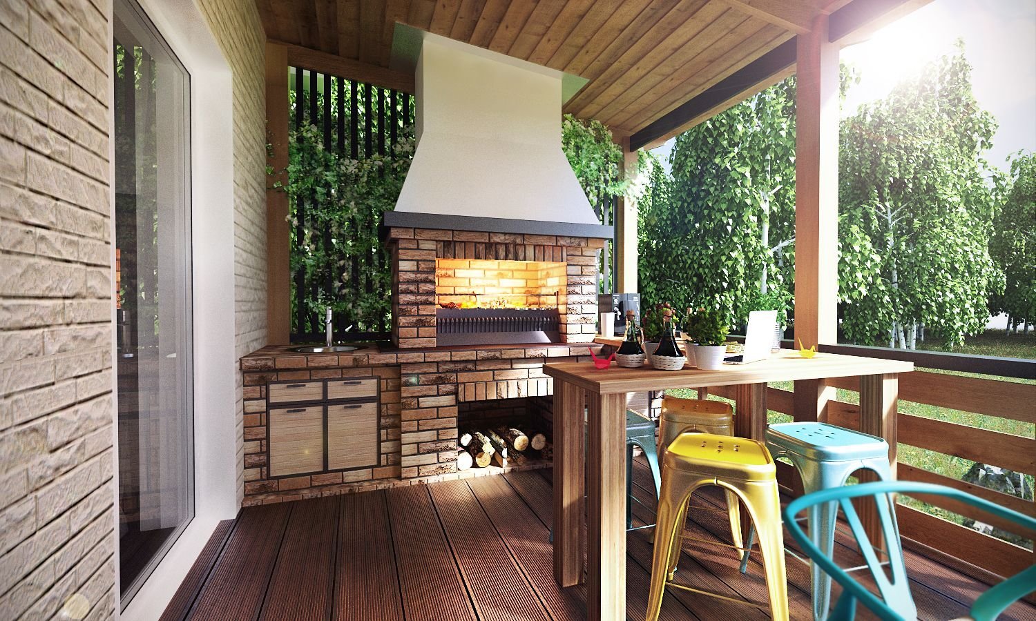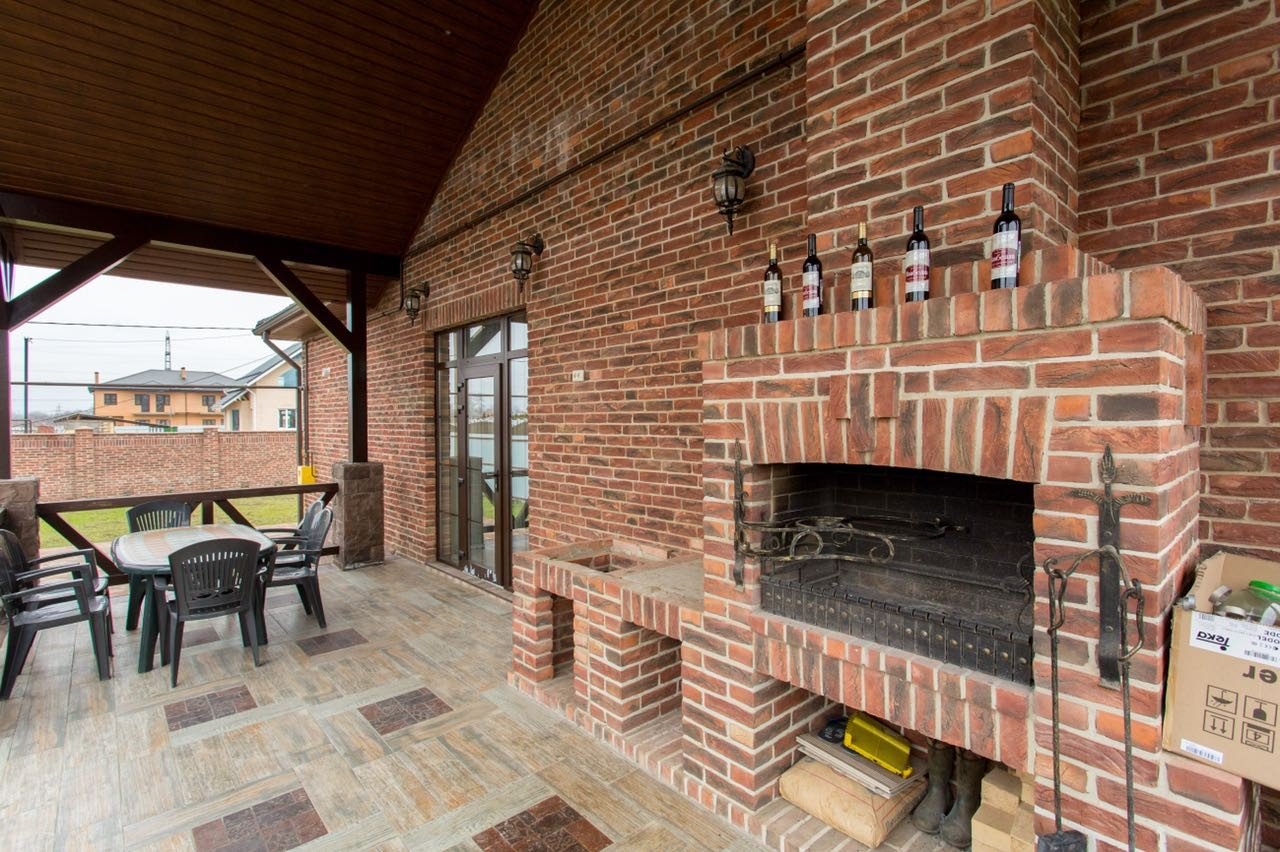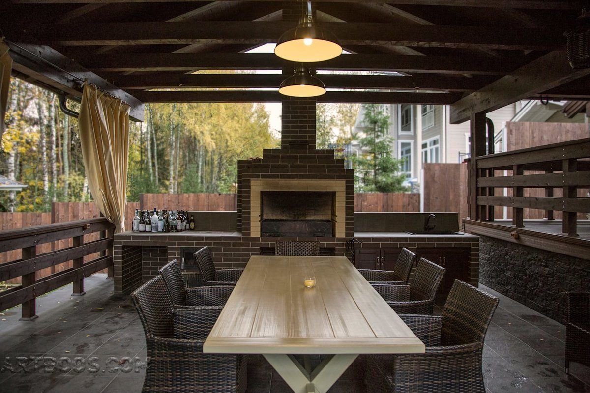 Терраса с камином-барбекю