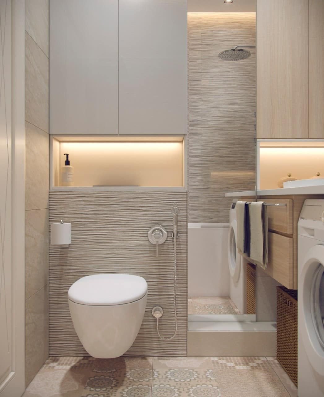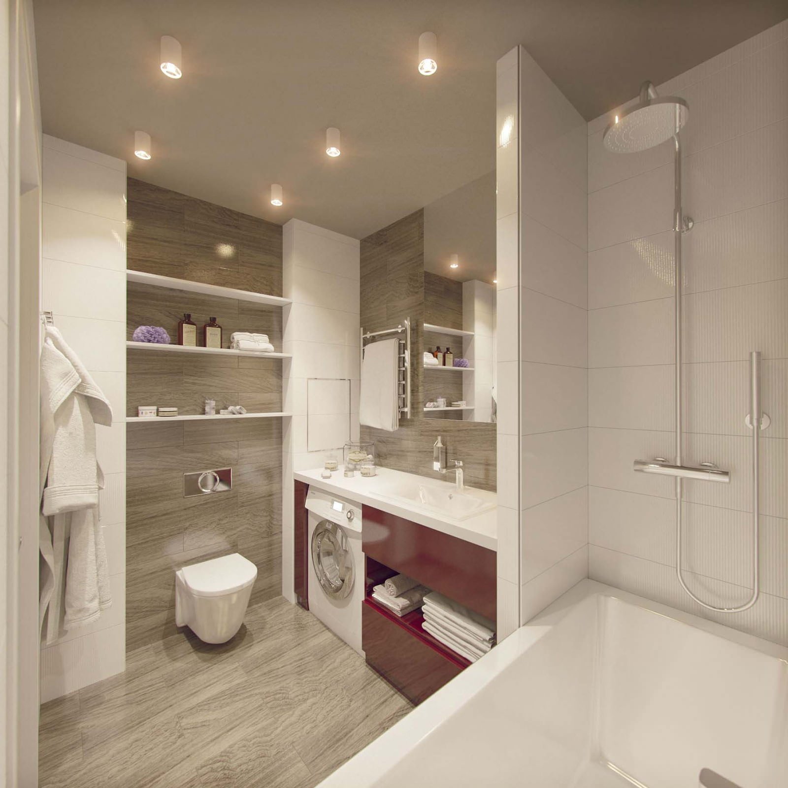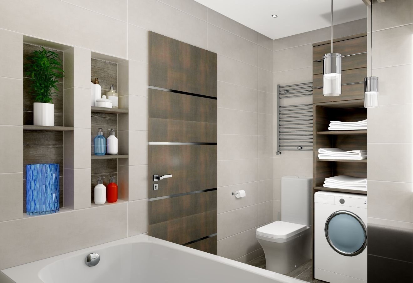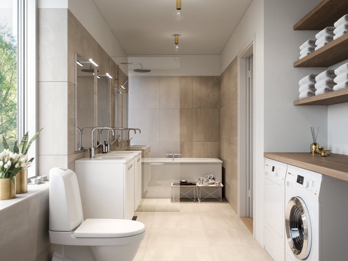 Современная ванная со стиральной машиной