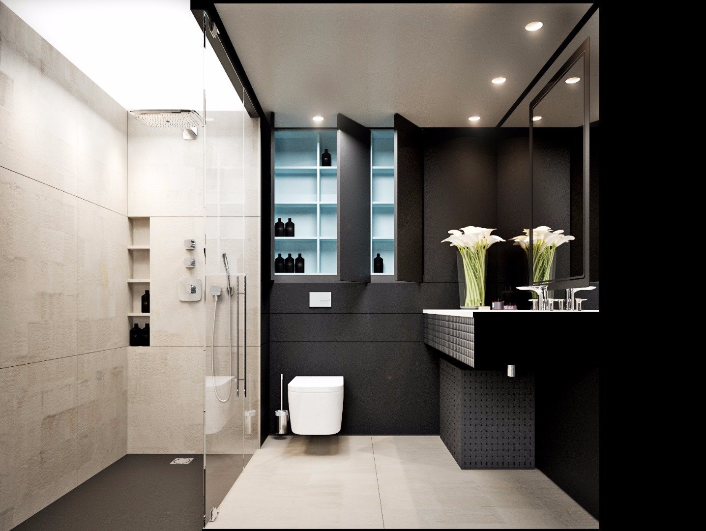 Ванная комната с встроенными полками