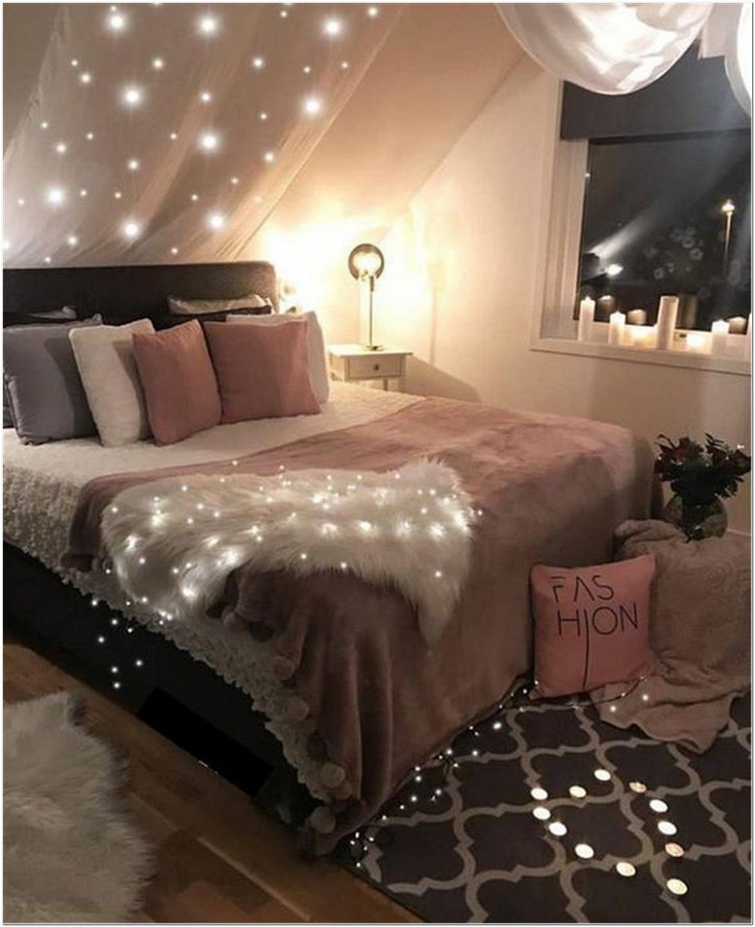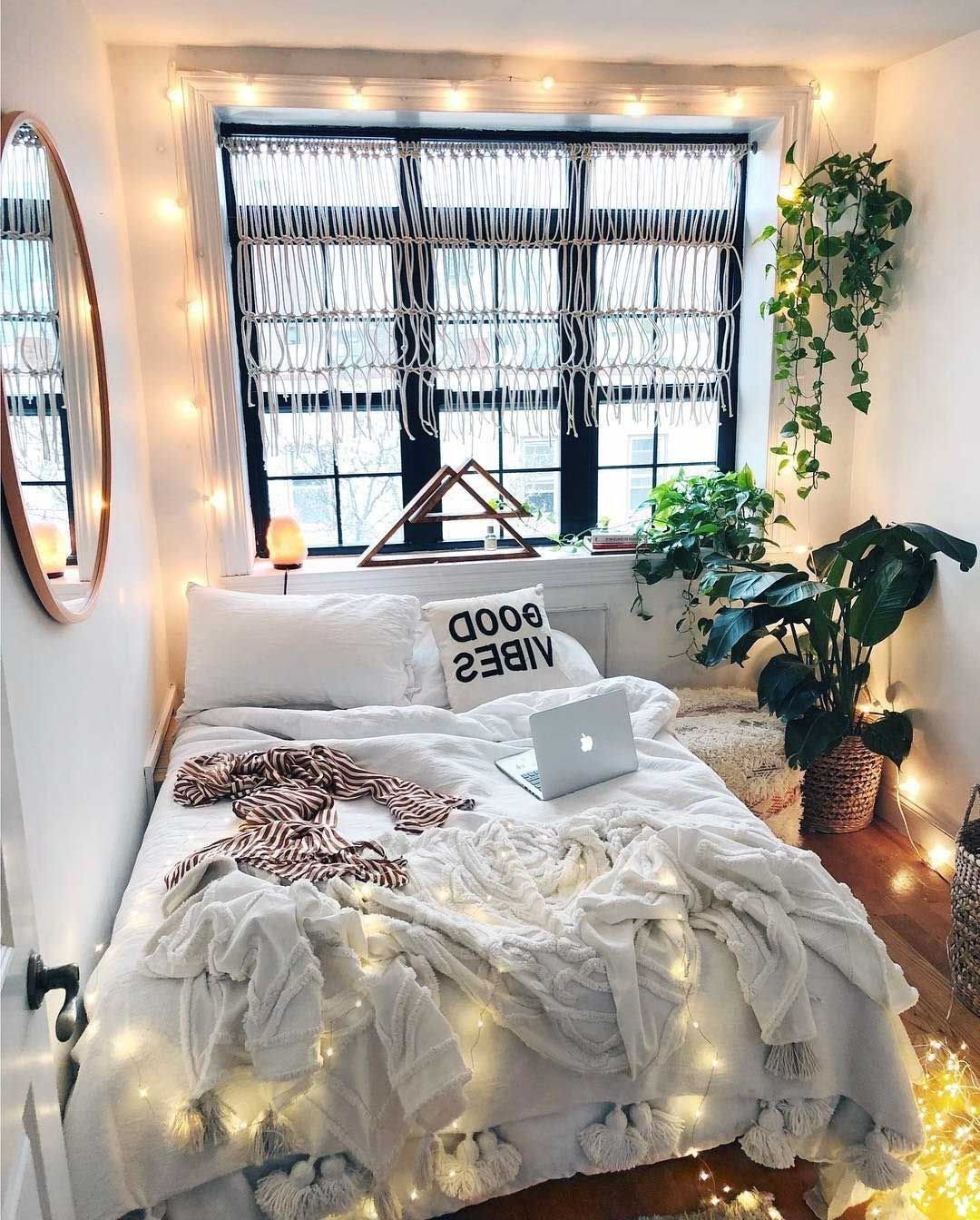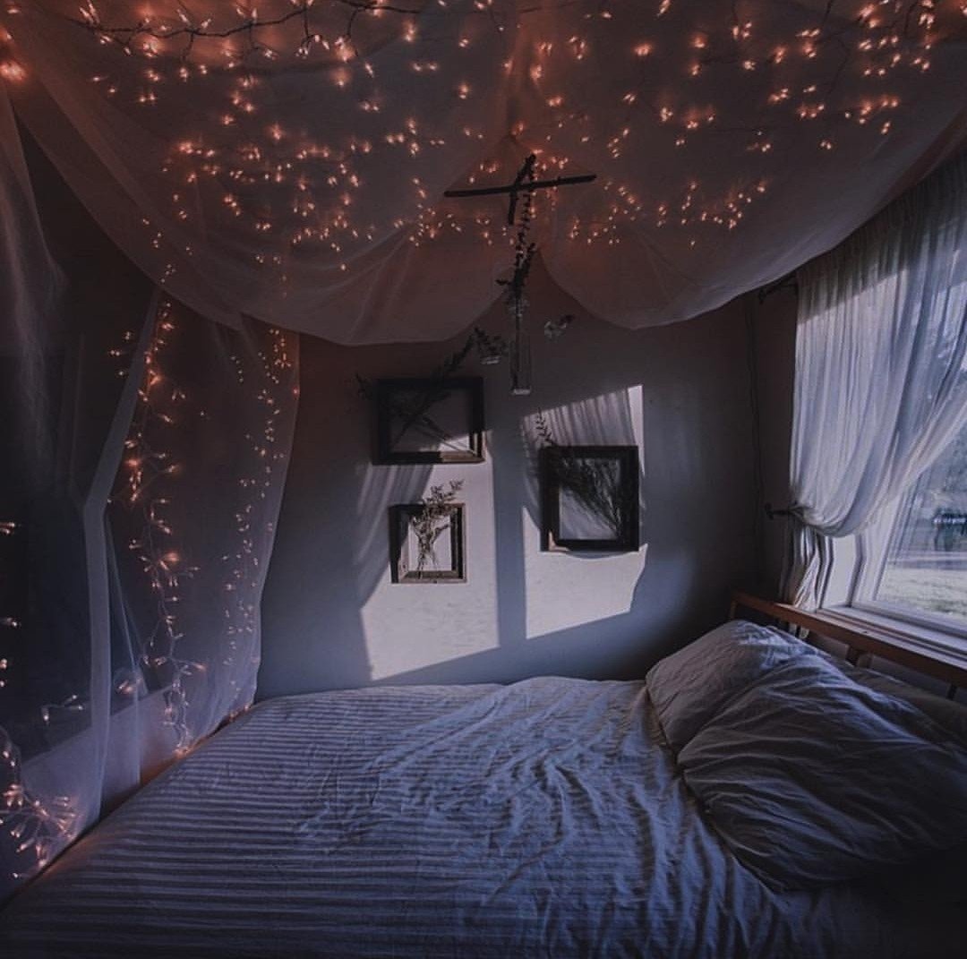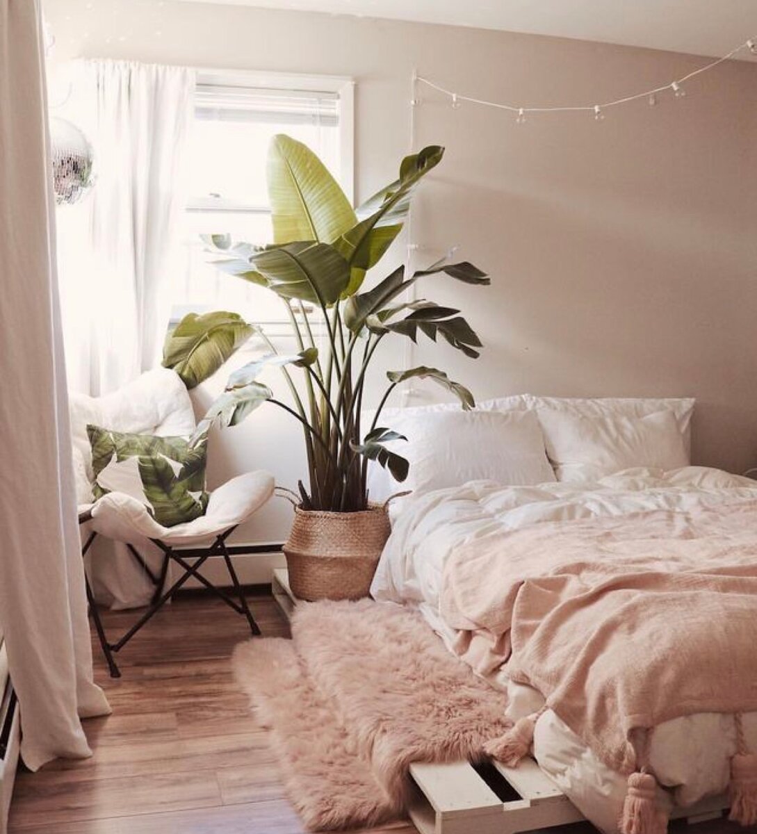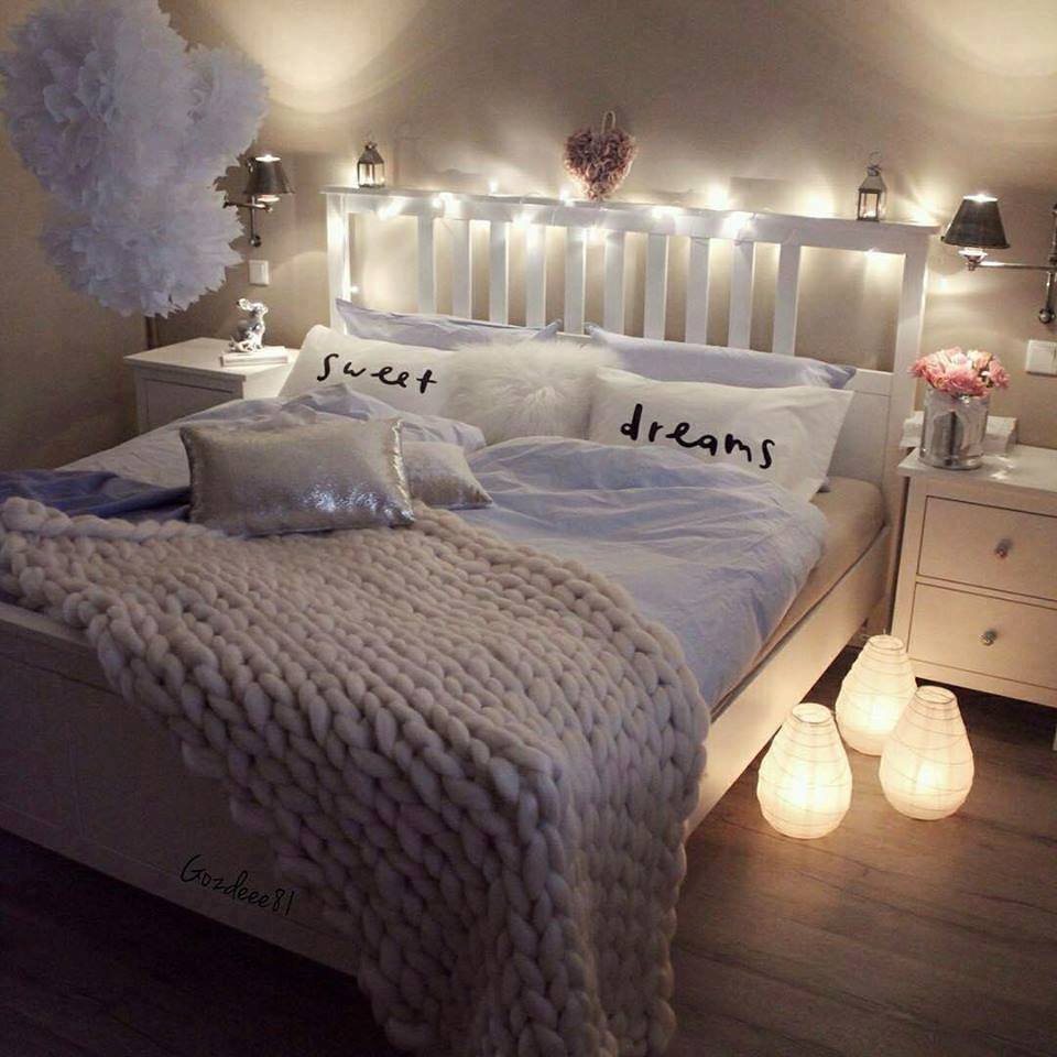 Гирлянда в интерьере спальни
