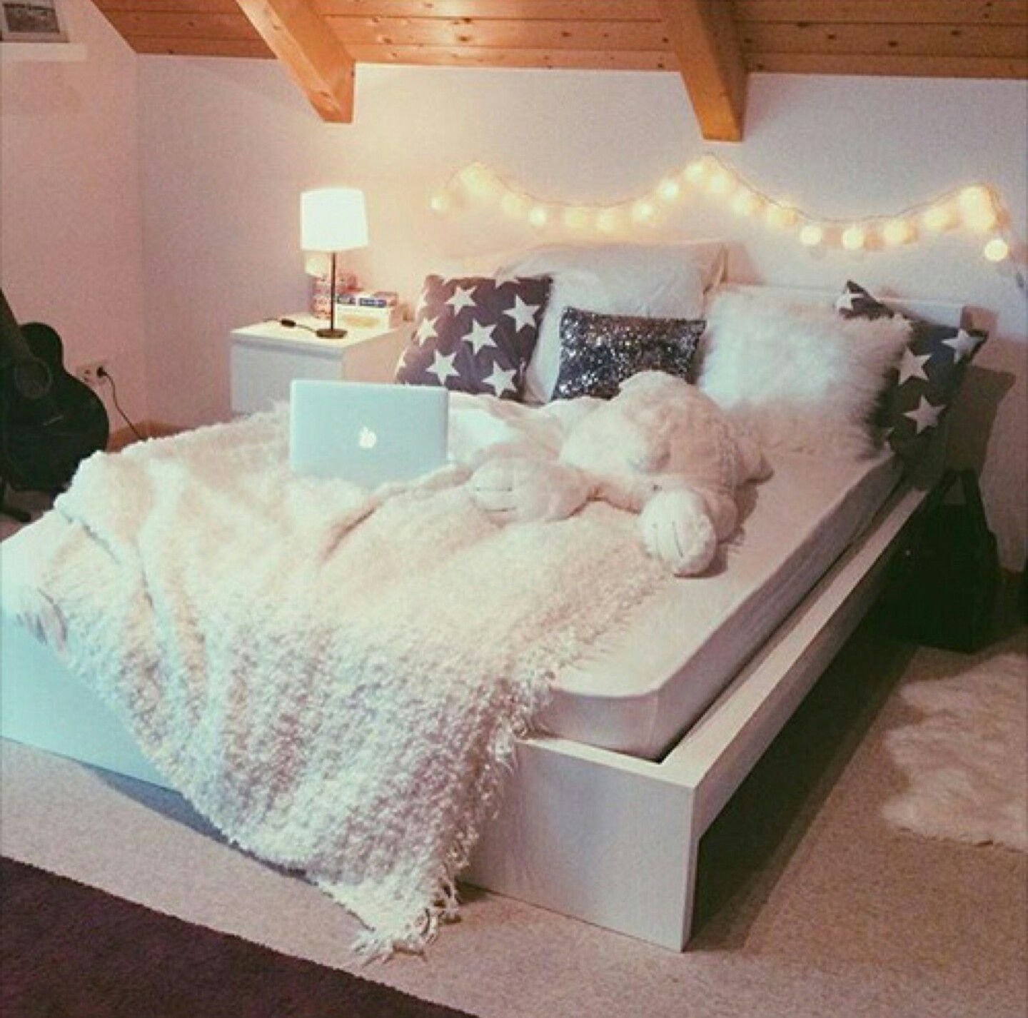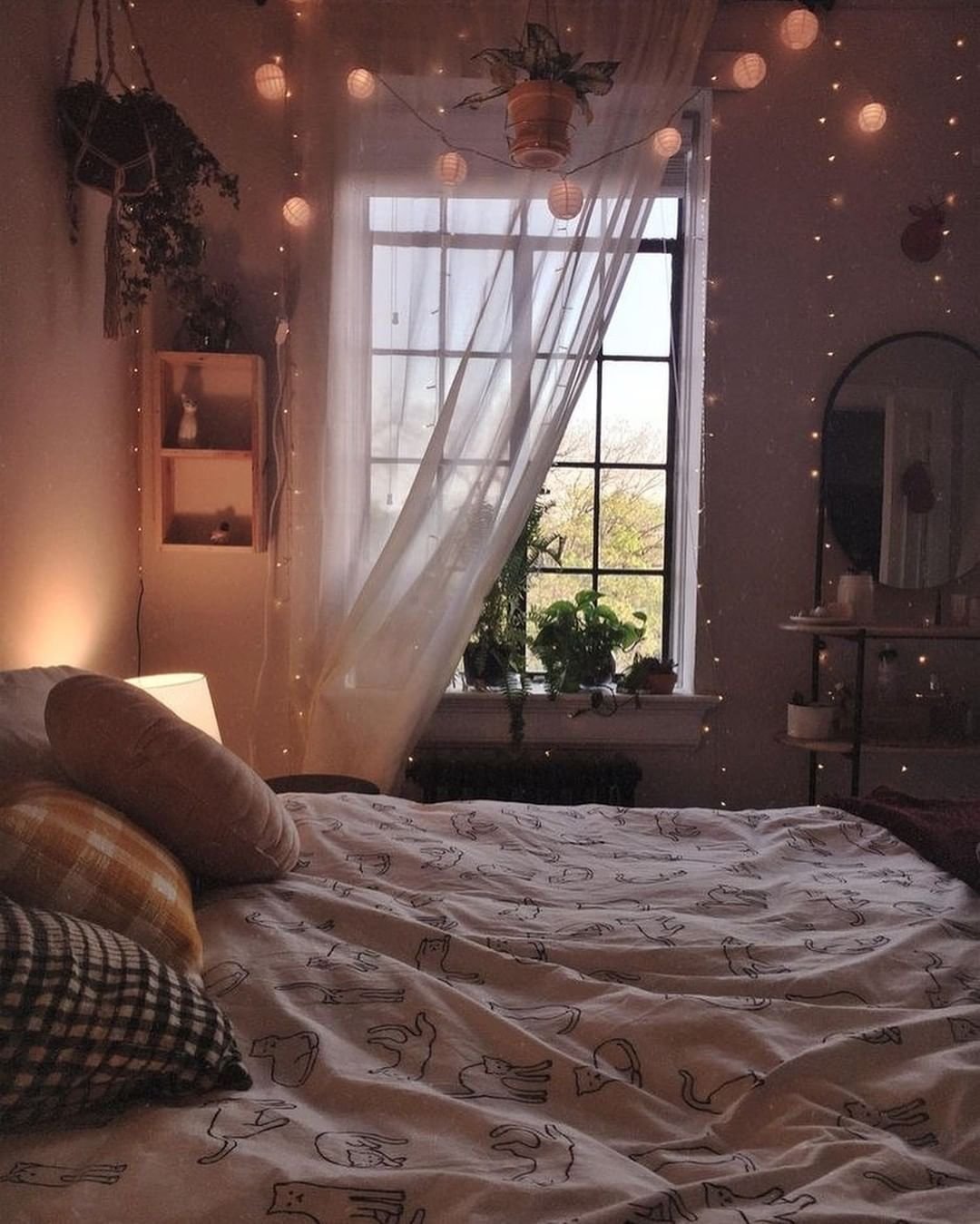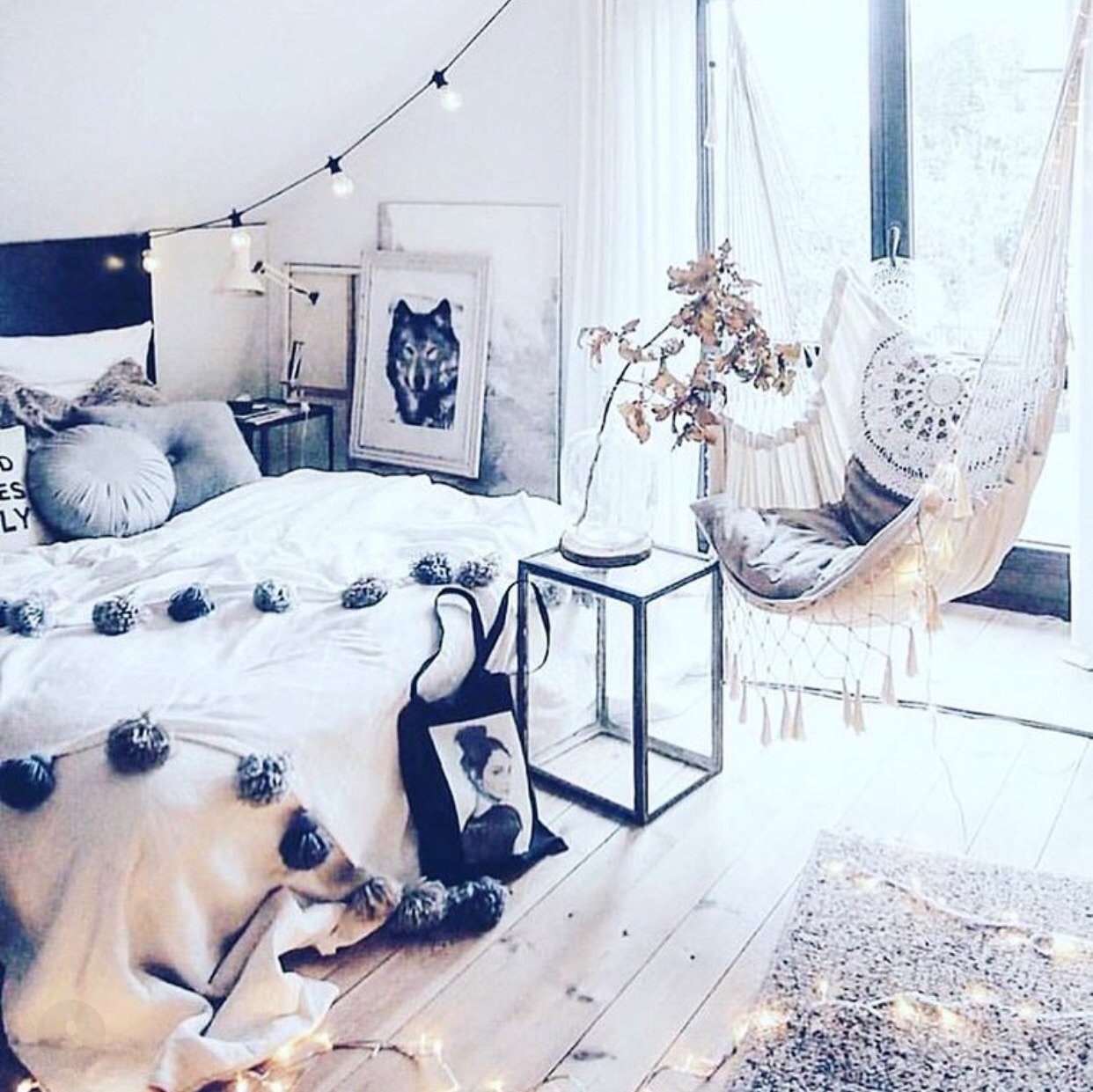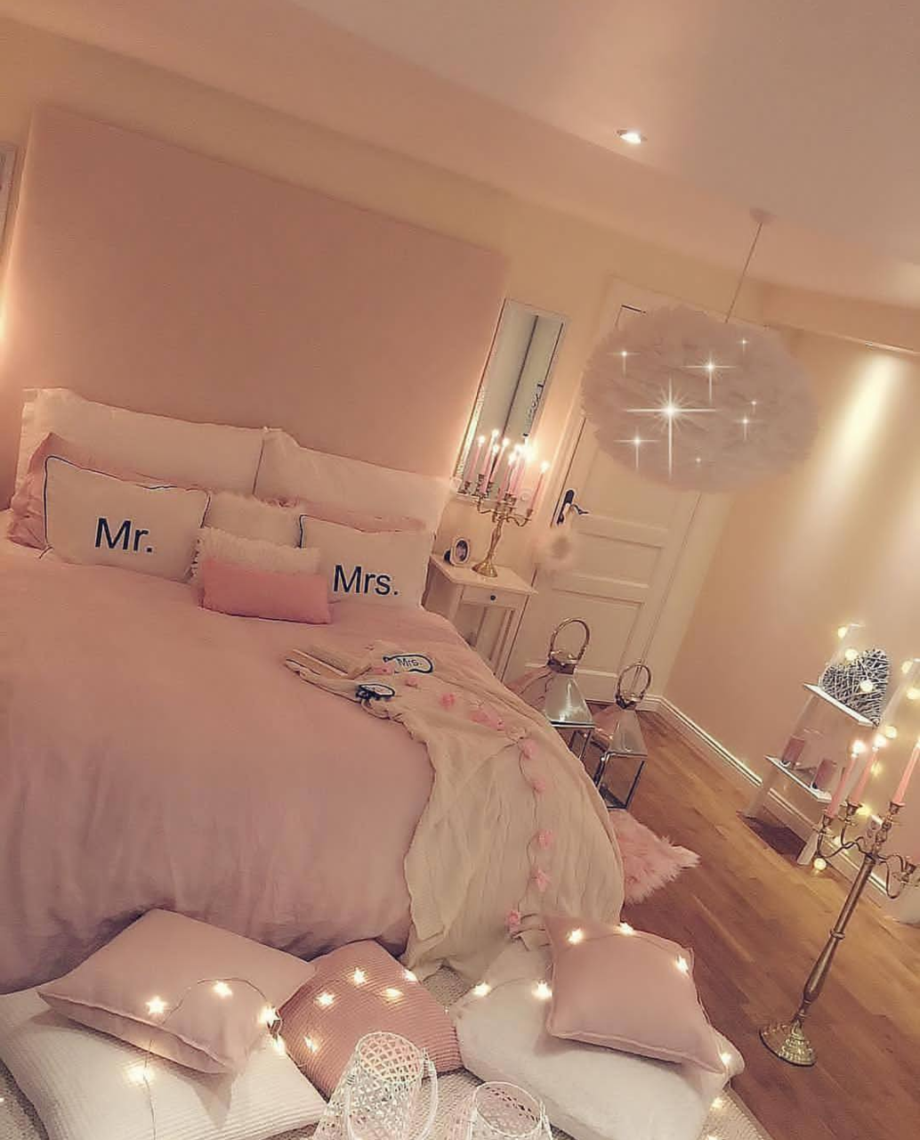 Гирлянда в интерьере спальни
