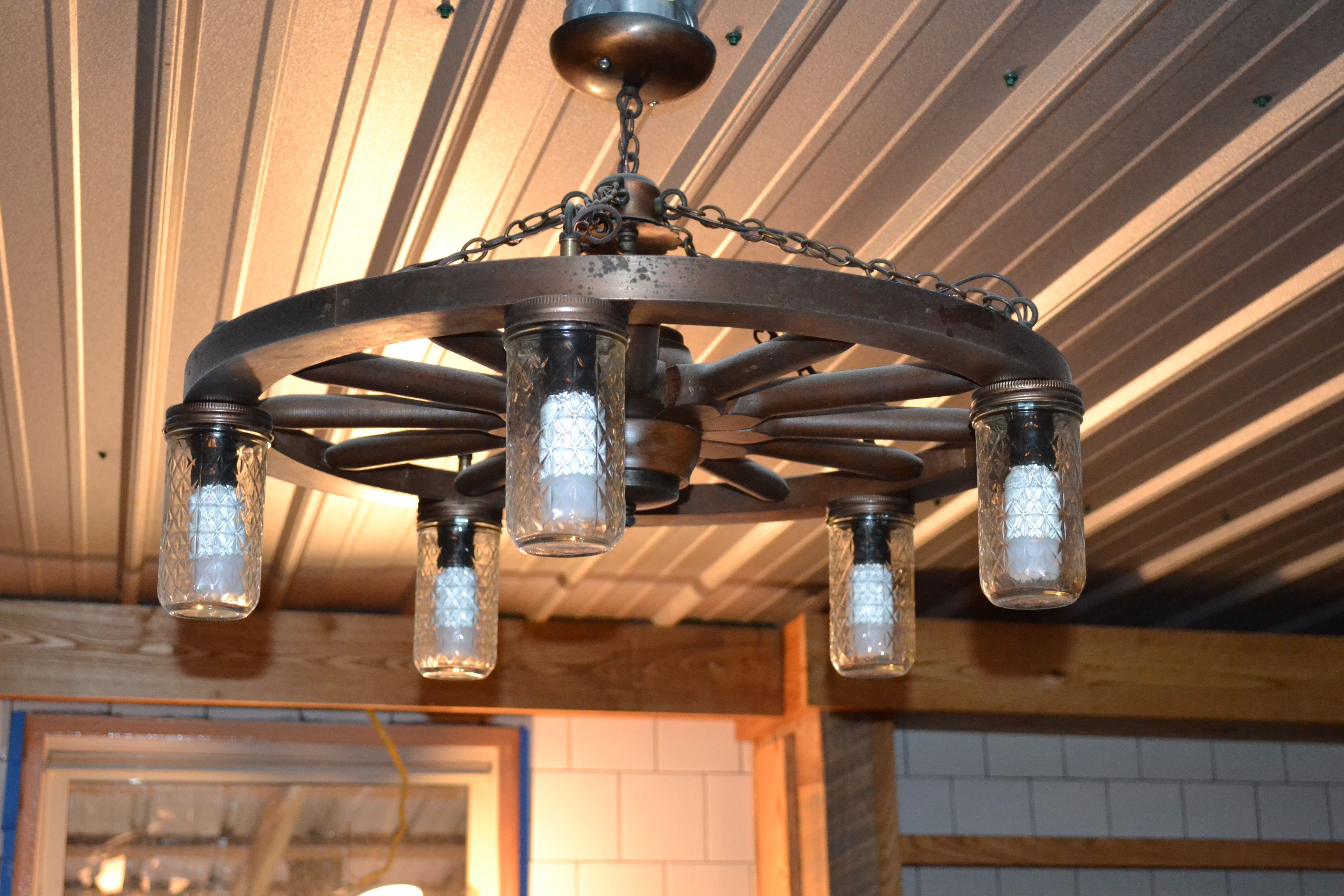 Люстра из колеса от телеги