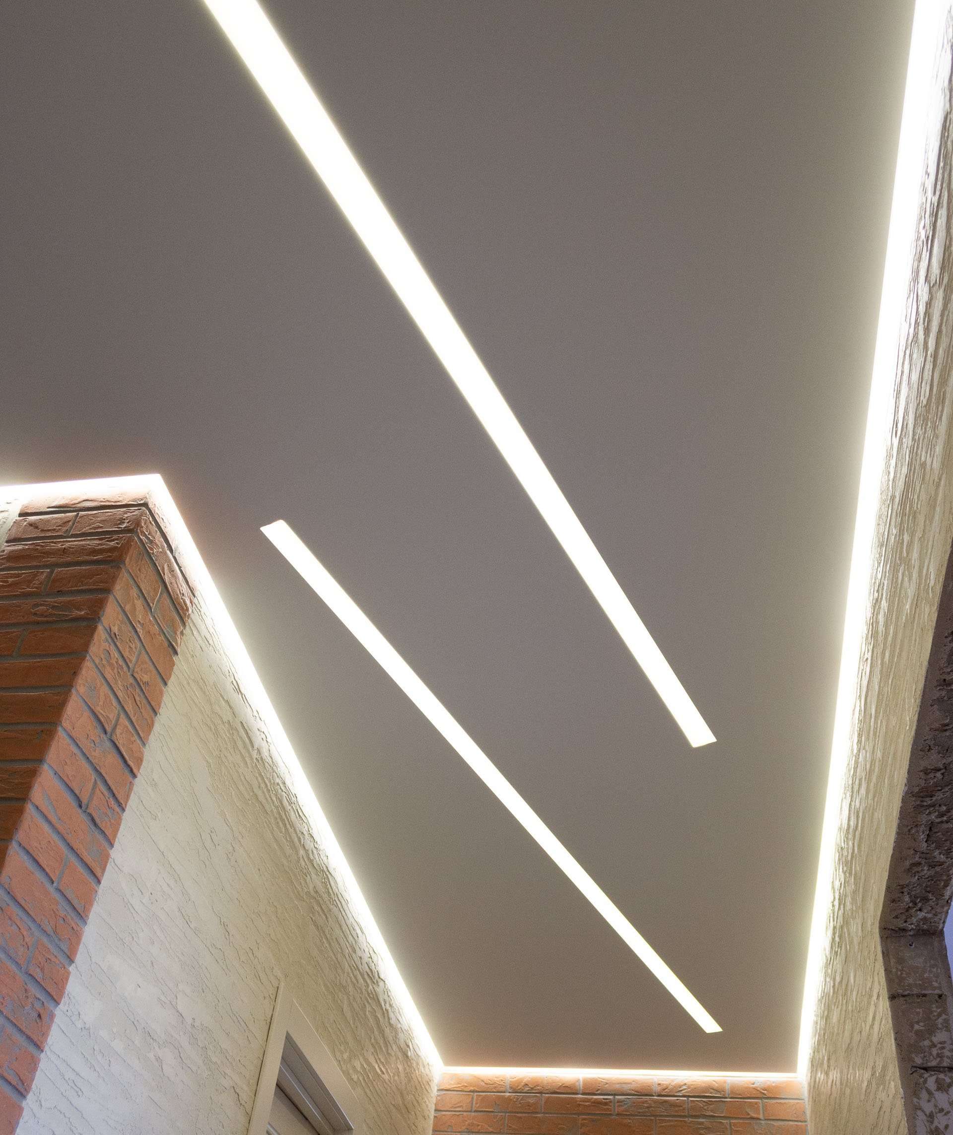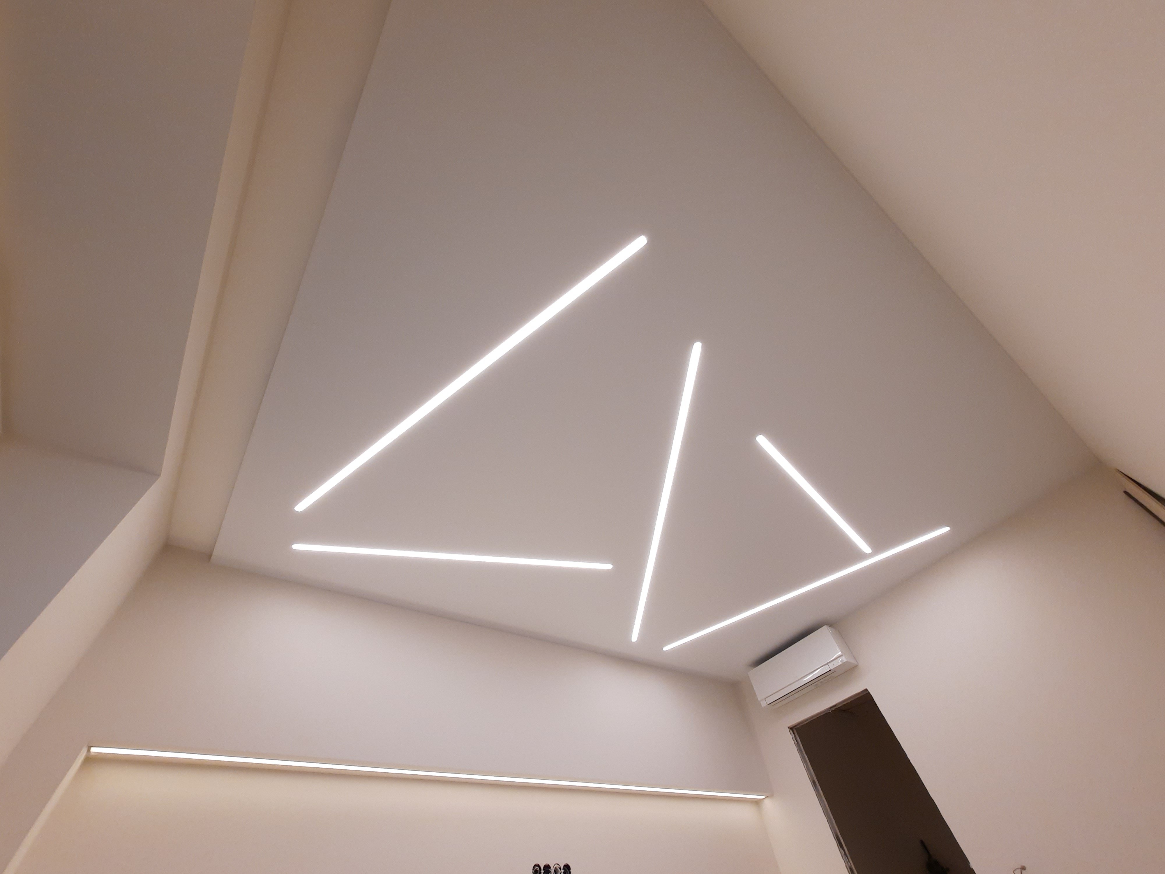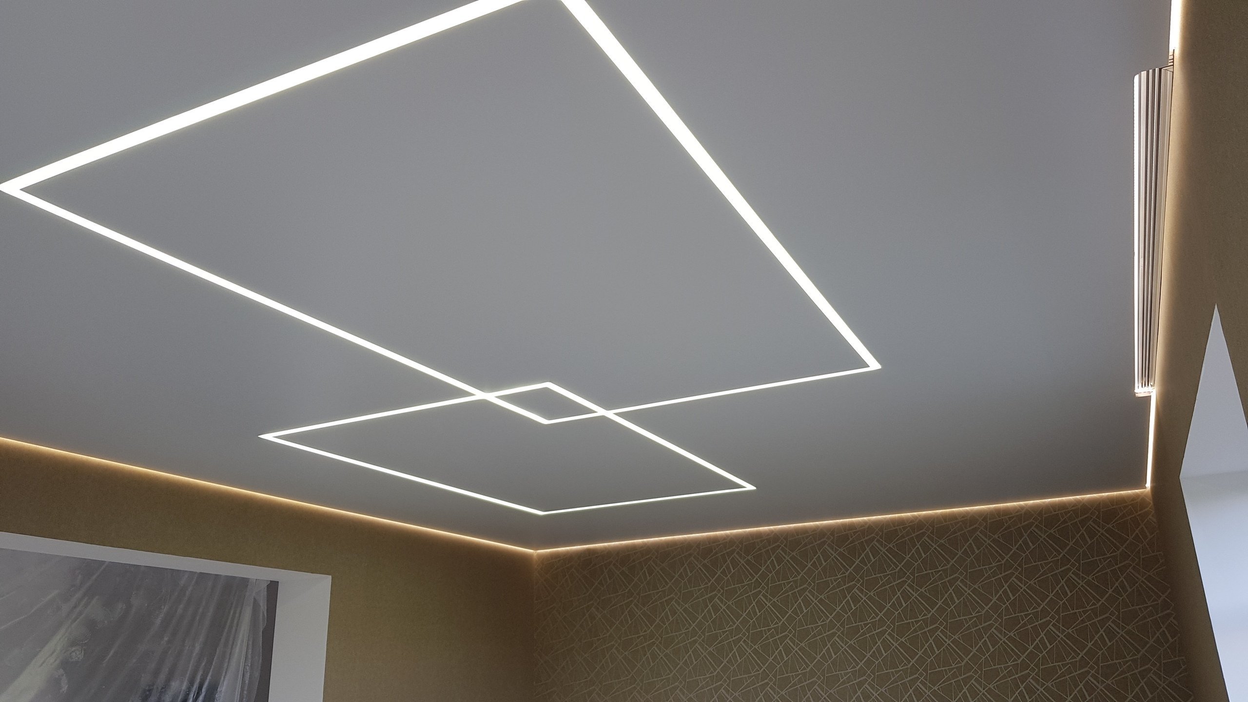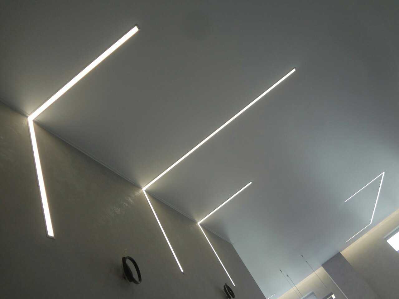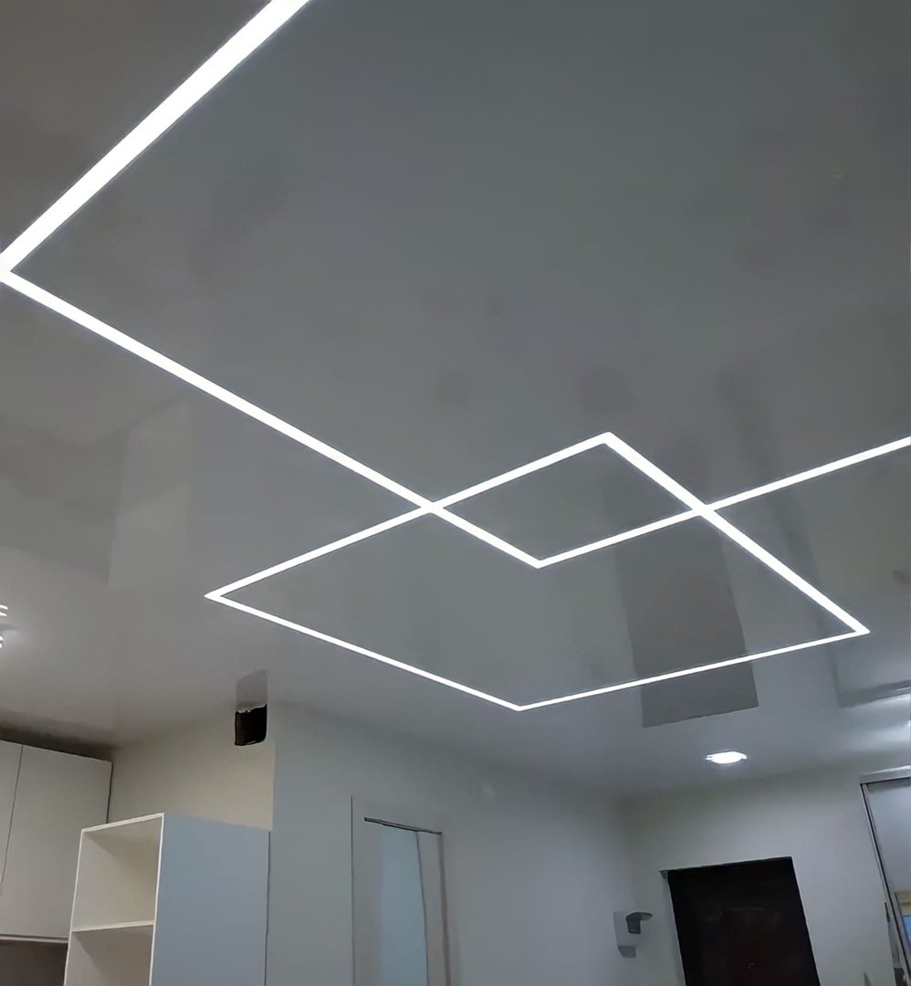 Флекси световые линии 30мм на натяжном потолке рассеиватель