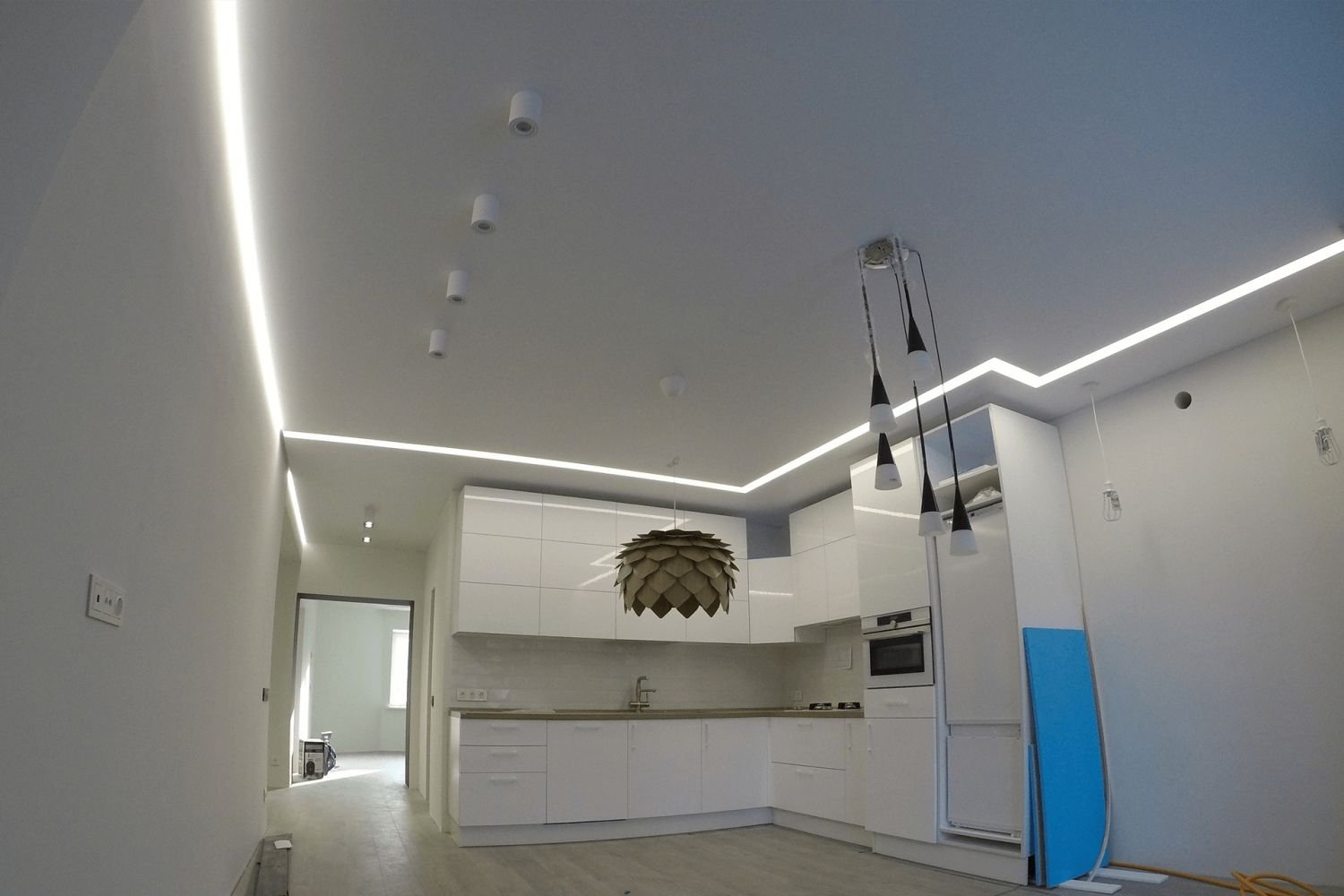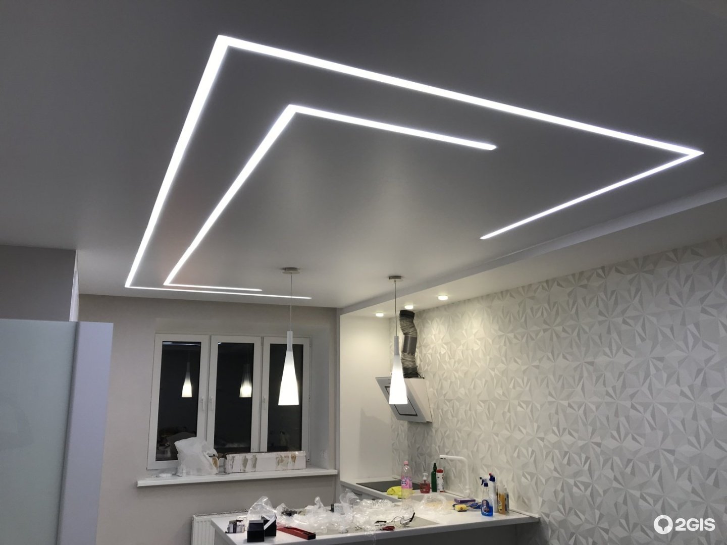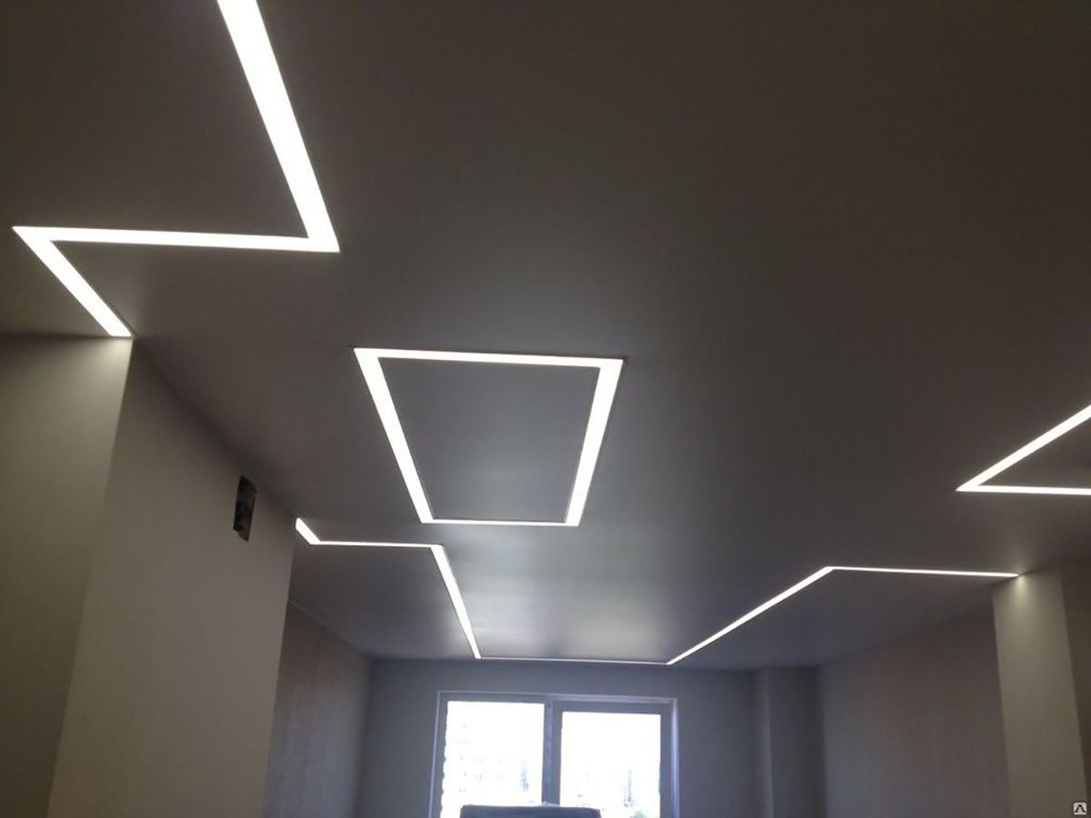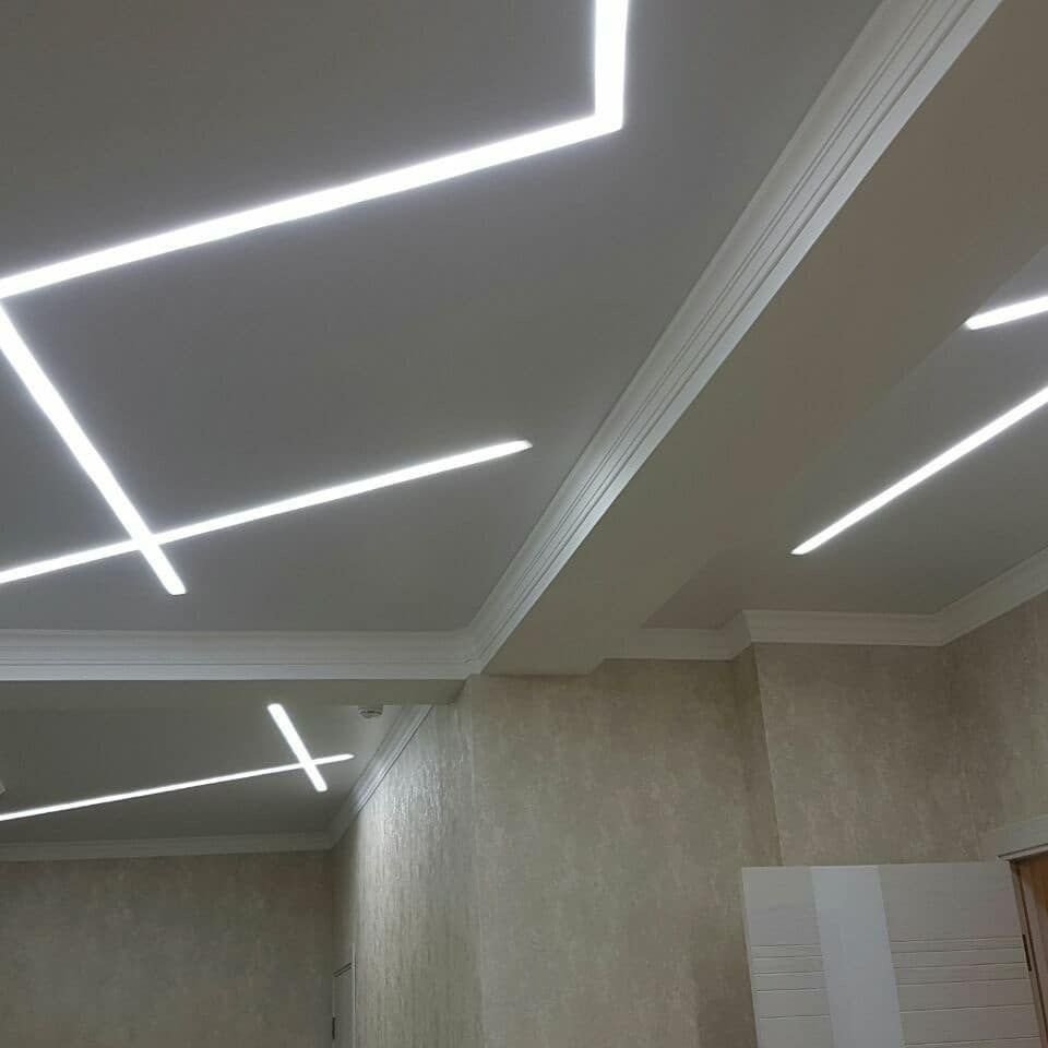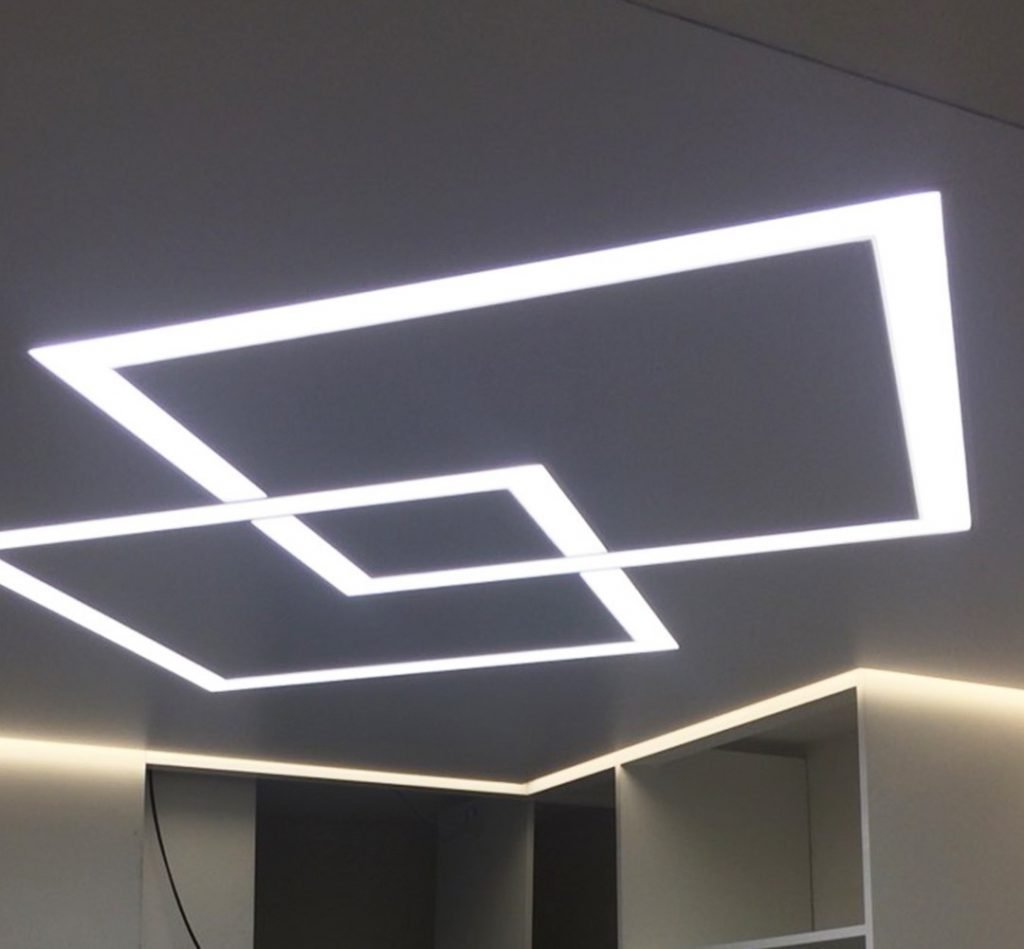 Флекси световые линии 30мм на натяжном потолке рассеиватель