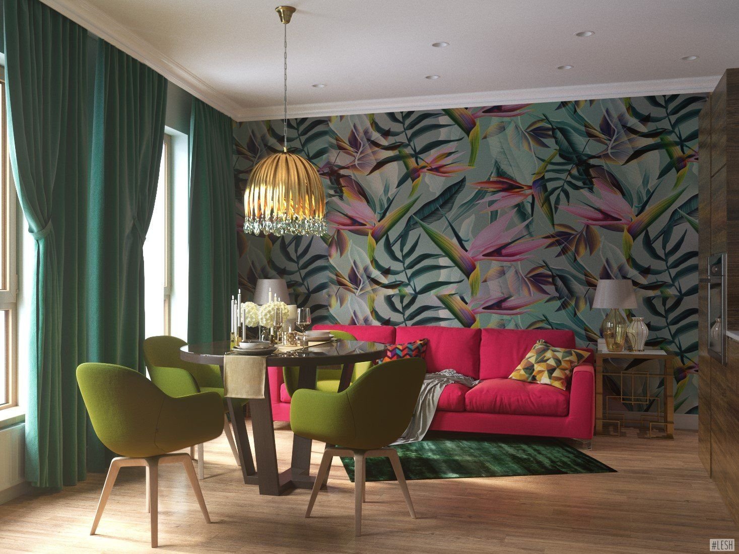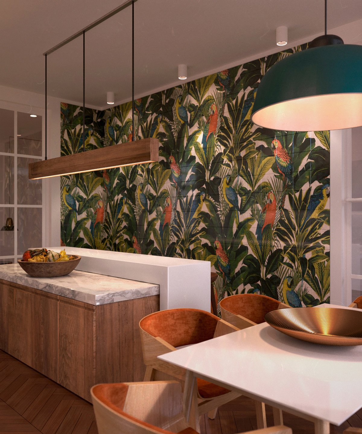Тропический интерьер кухни