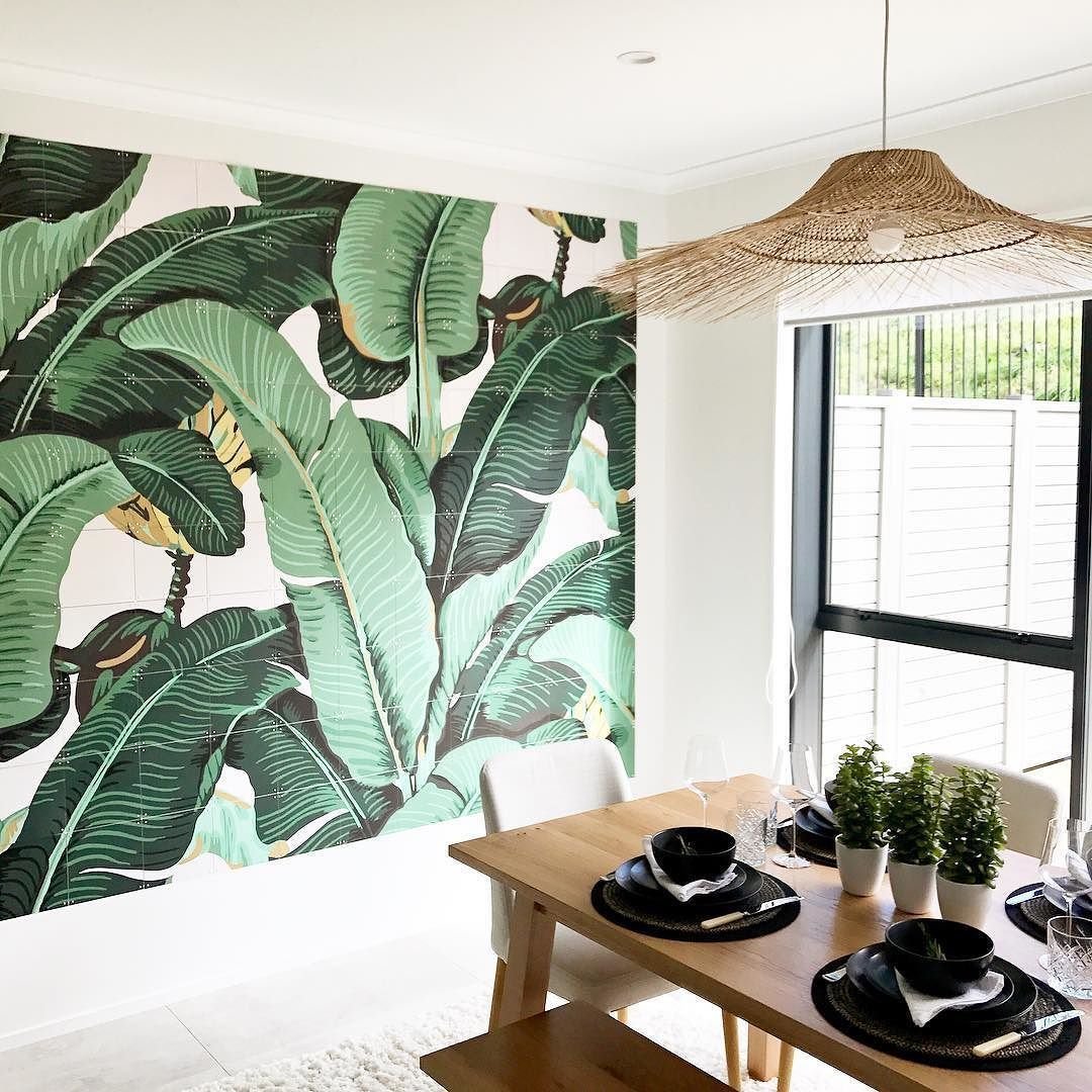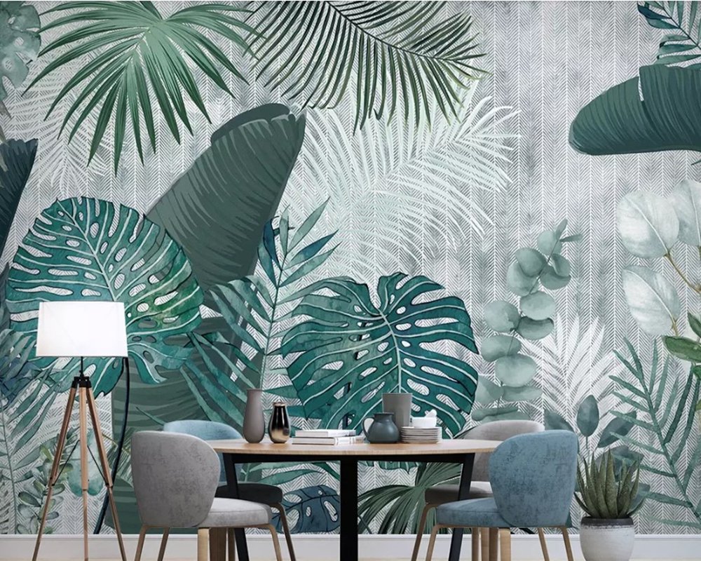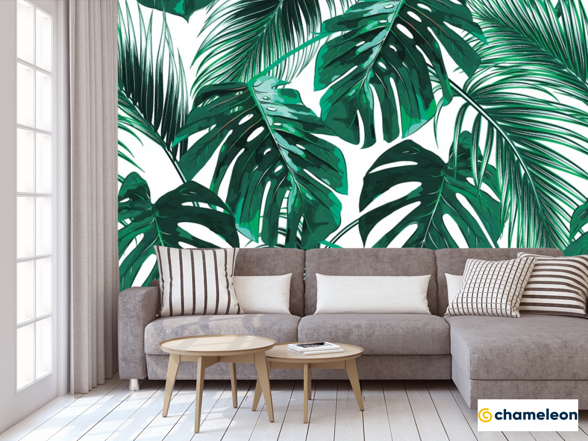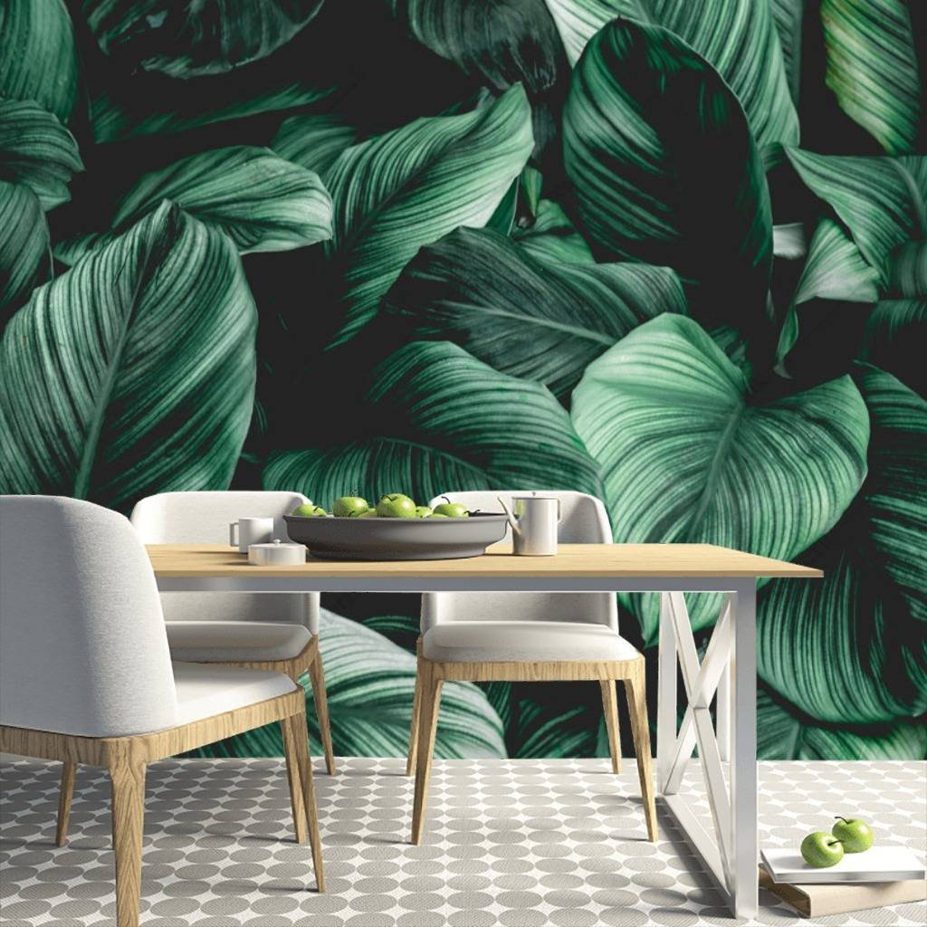 Обои с тропическими листьями в интерьере