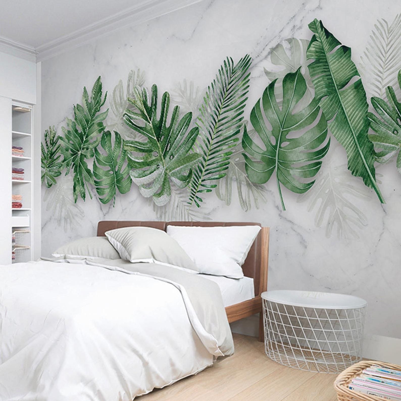 Обои с листьями в интерьере
