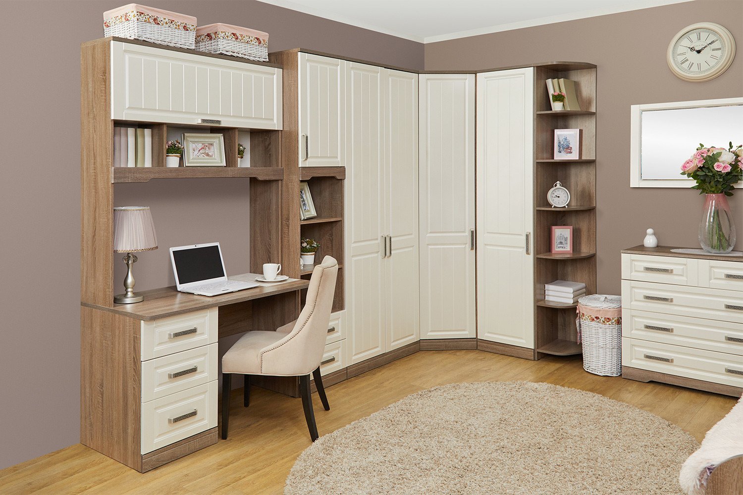 Угловой шкаф со столом в спальню