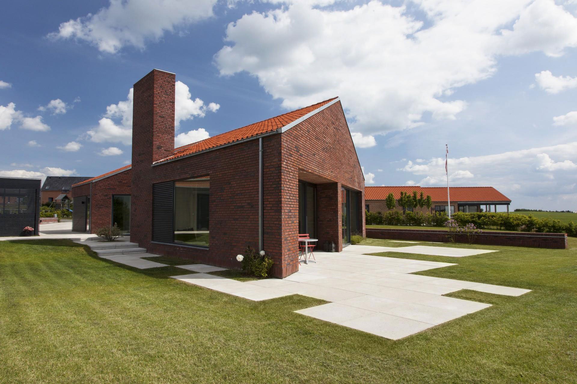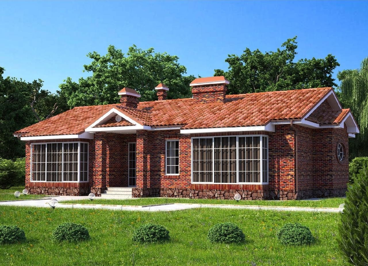 Современный одноэтажный кирпичный дом