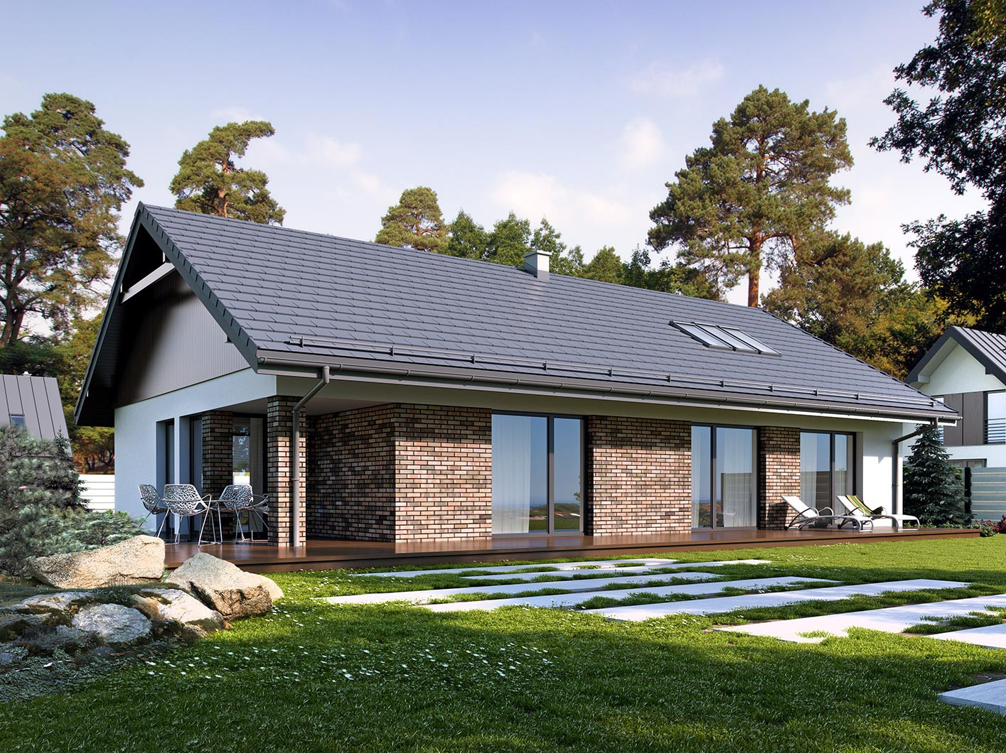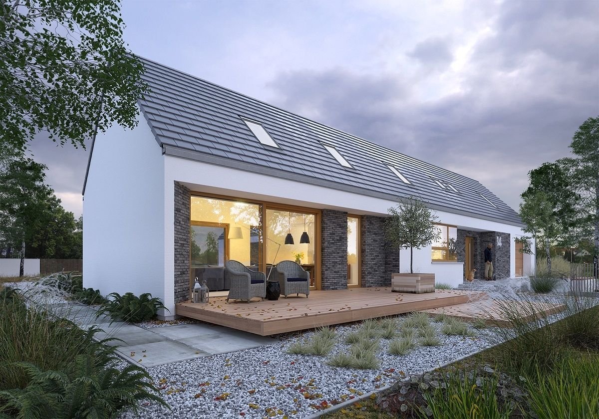 Дом в стиле лофт одноэтажный с мансардой