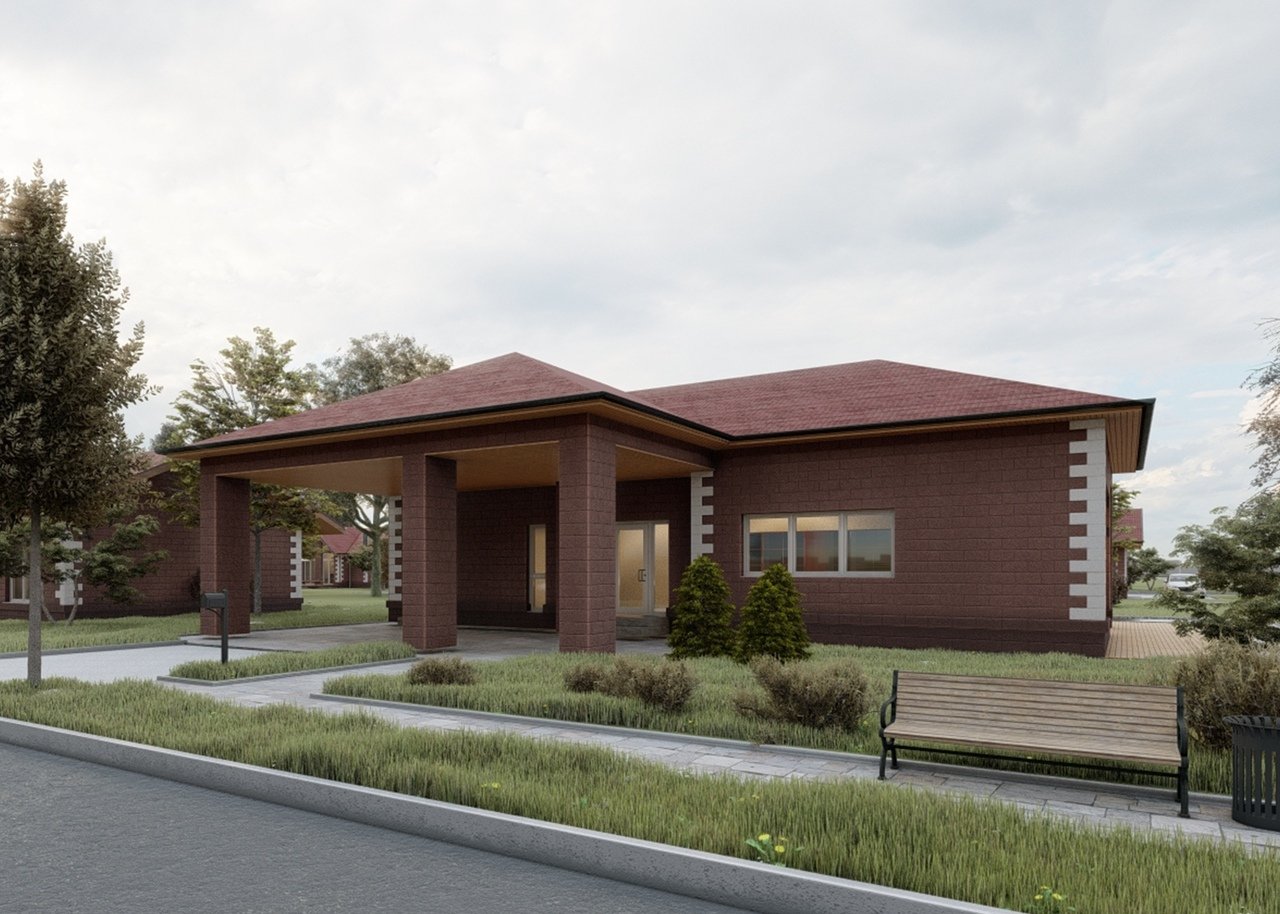 Одноэтажный кирпичный дом в американском стиле
