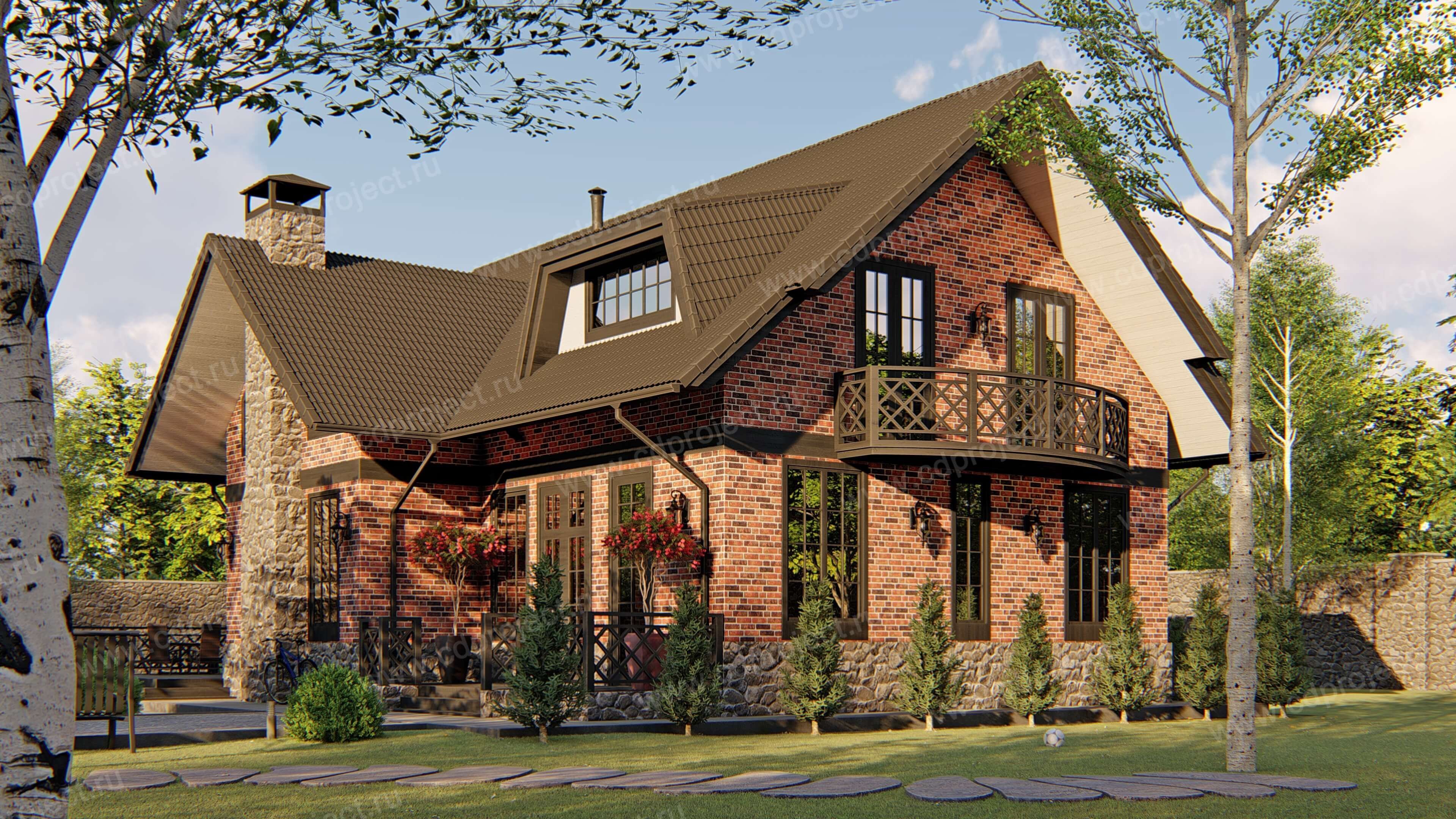 Одноэтажный дом в английском стиле из кирпича