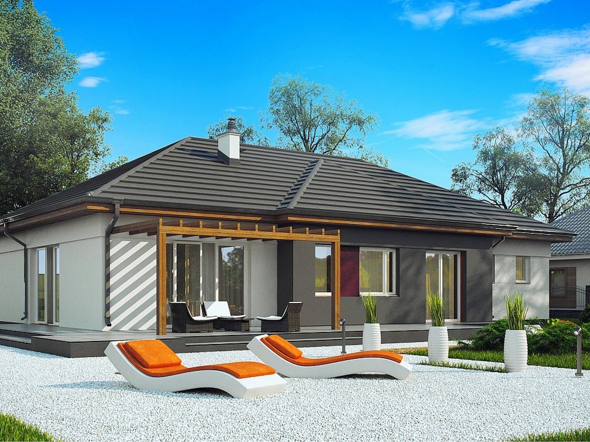 Очень красивый фасад одноэтажного дома