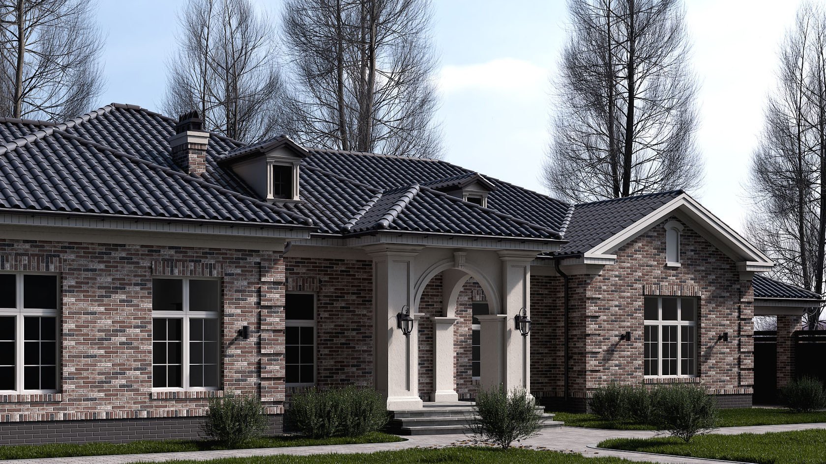 Одноэтажная усадьба в классическом стиле