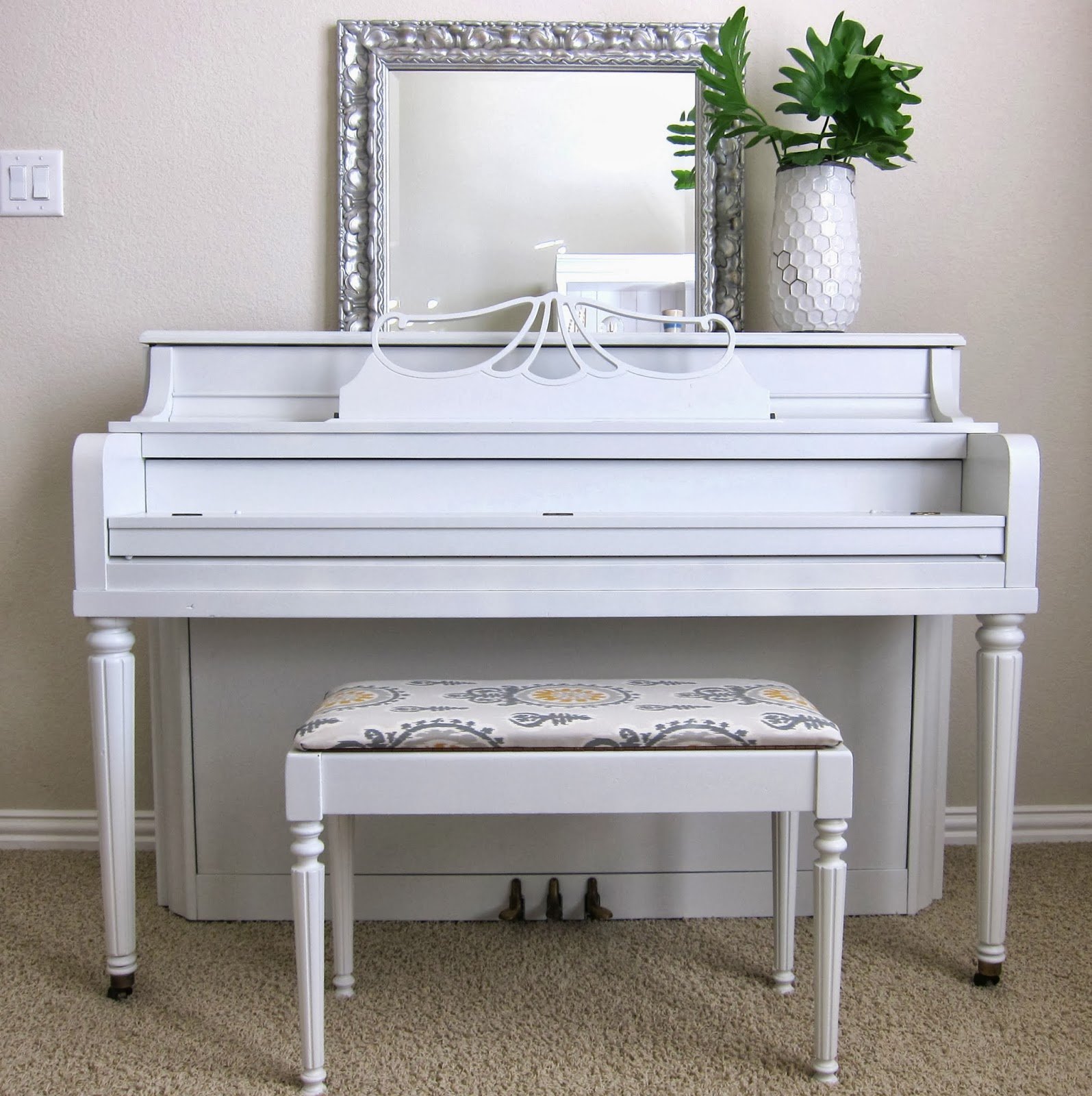 Белое пианино в интерьере