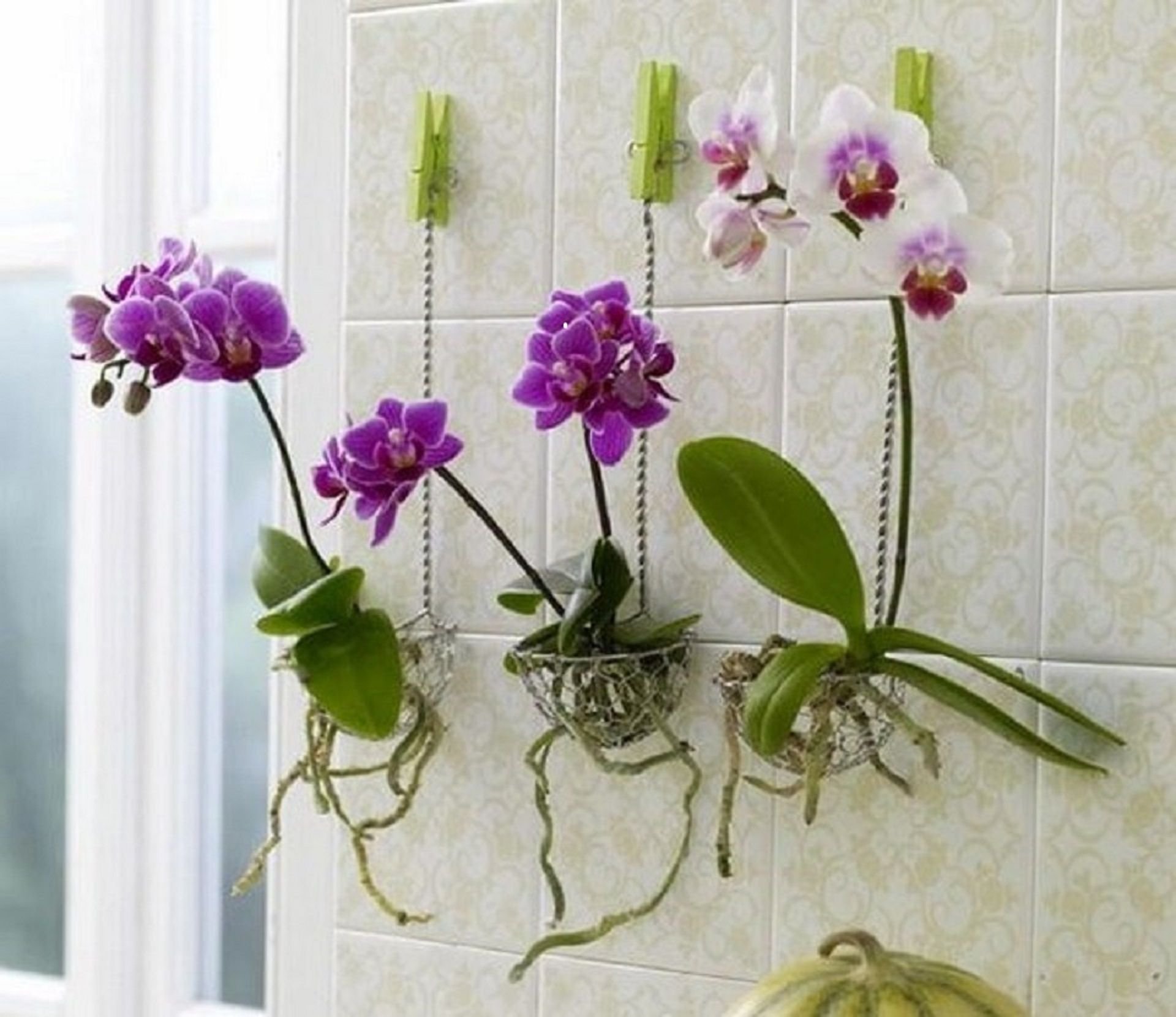 Орхидеи на стене в горшках