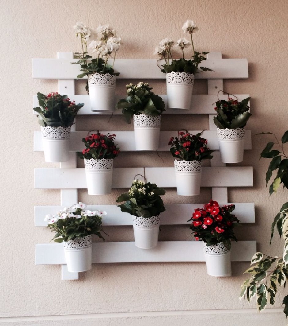 Цветы на стене в горшках