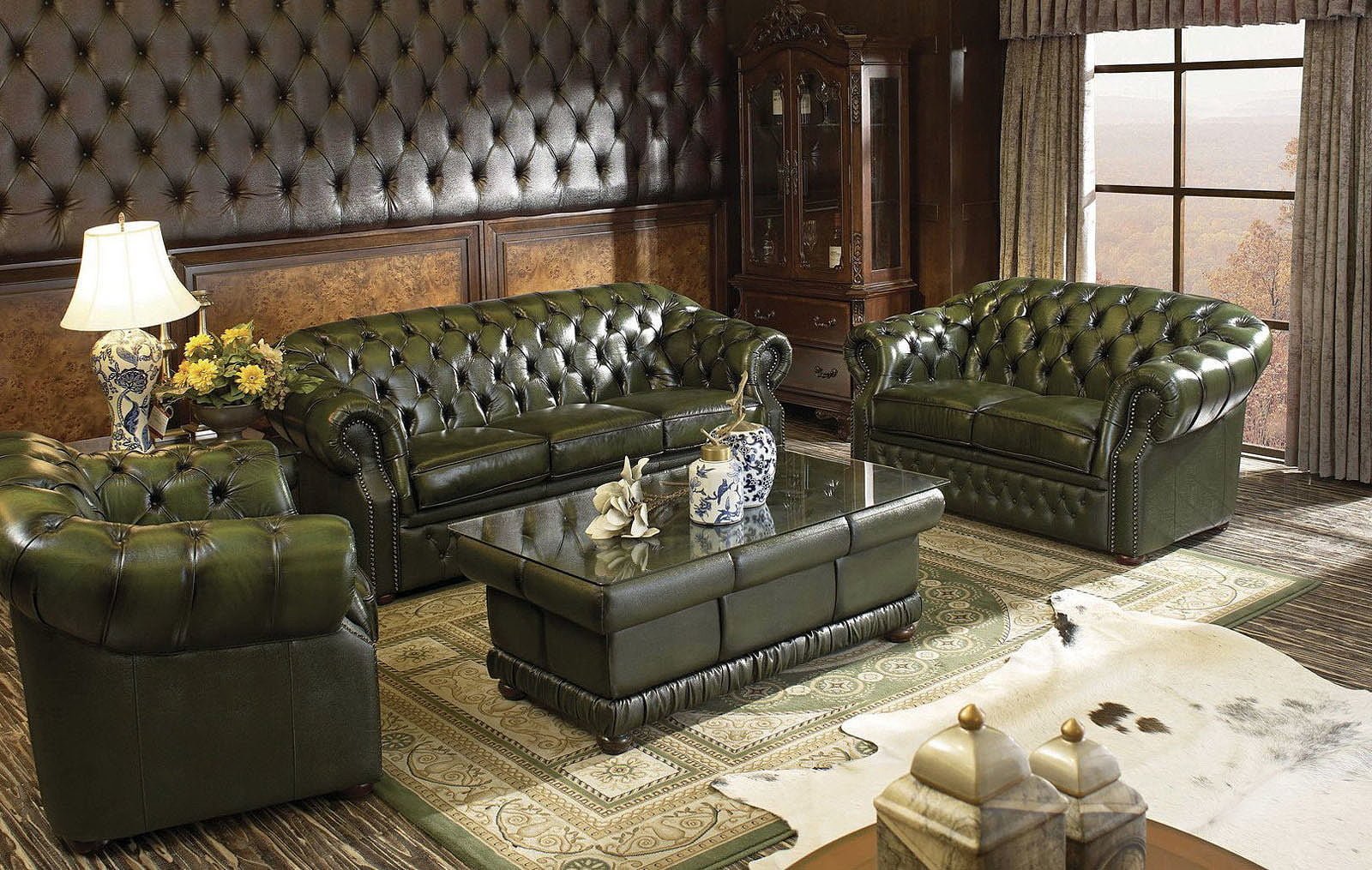 Зеленый кожаный диван Честер