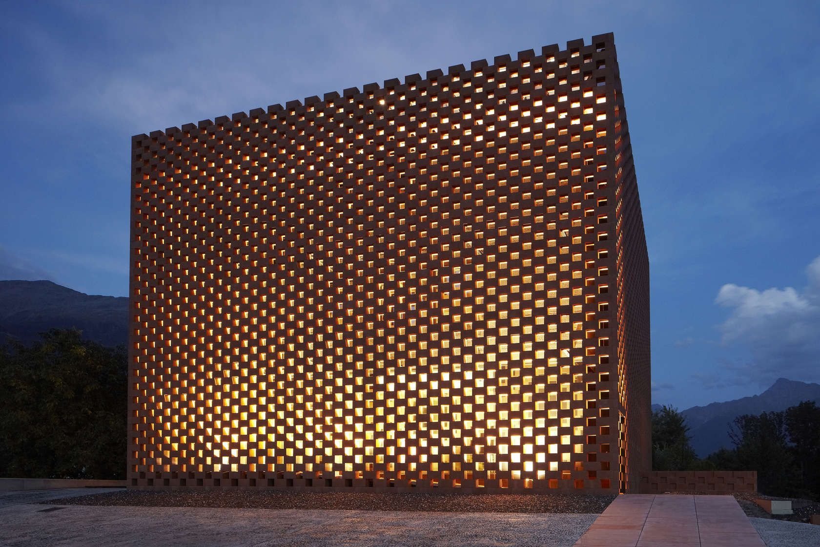 Перфорированный фасад с подсветкой