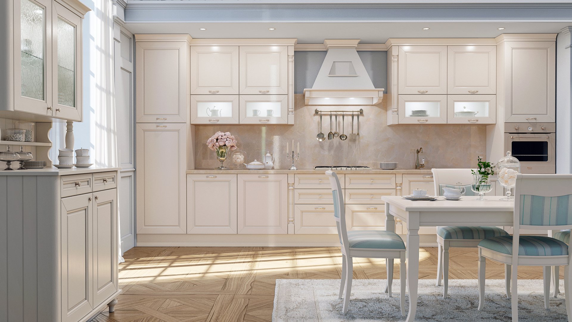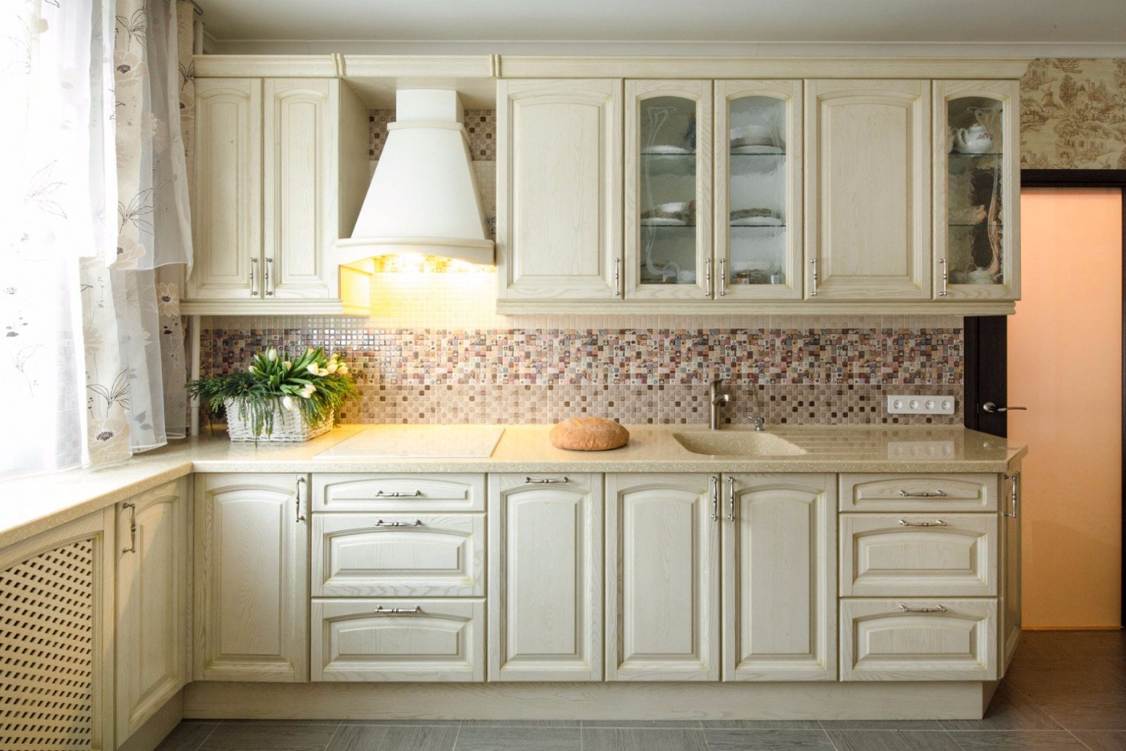 Фартуки для классической кухни в светлых тонах