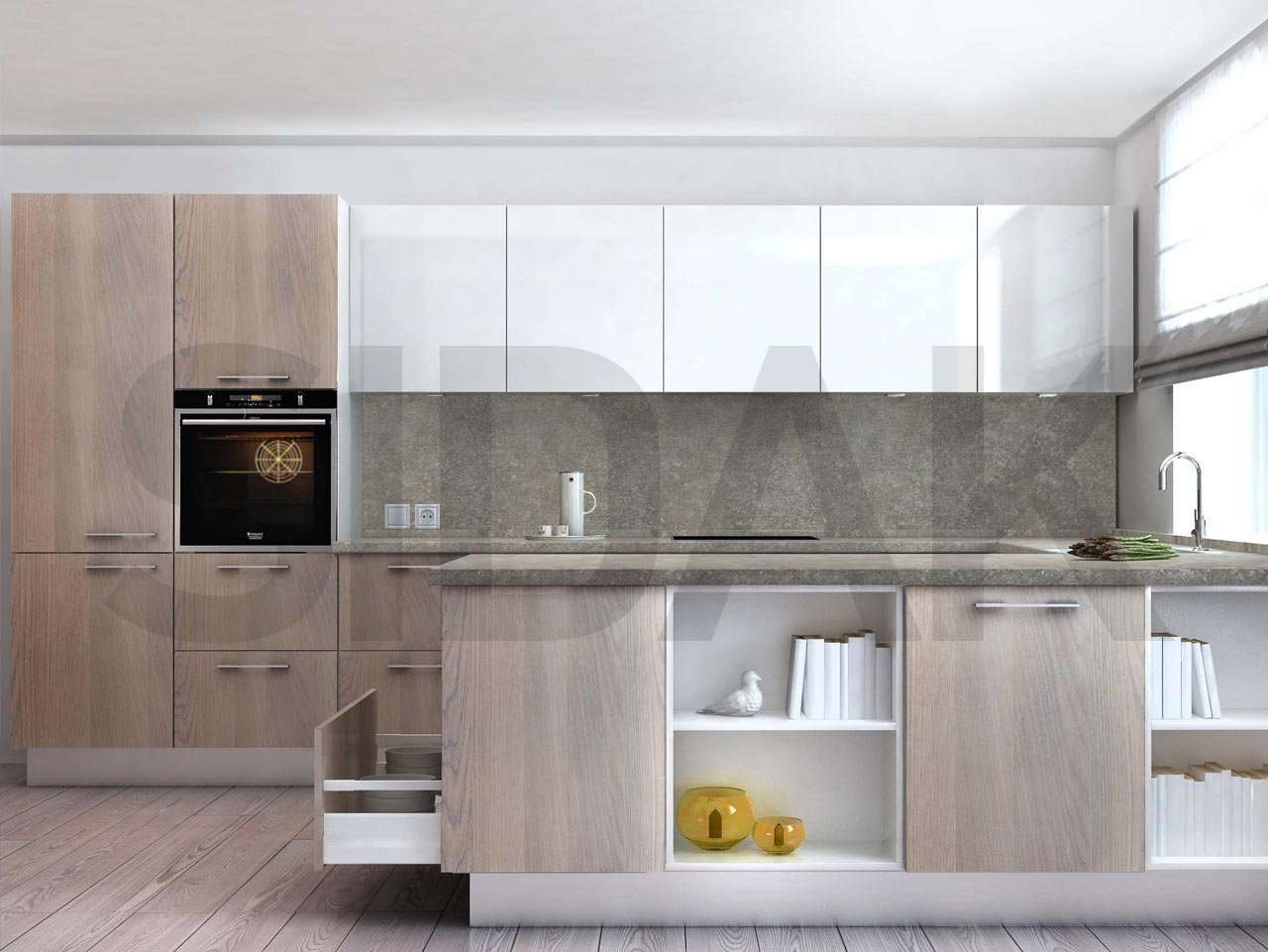 Сканди кухня дуб беленый