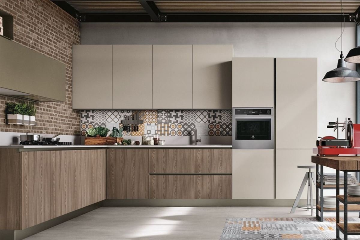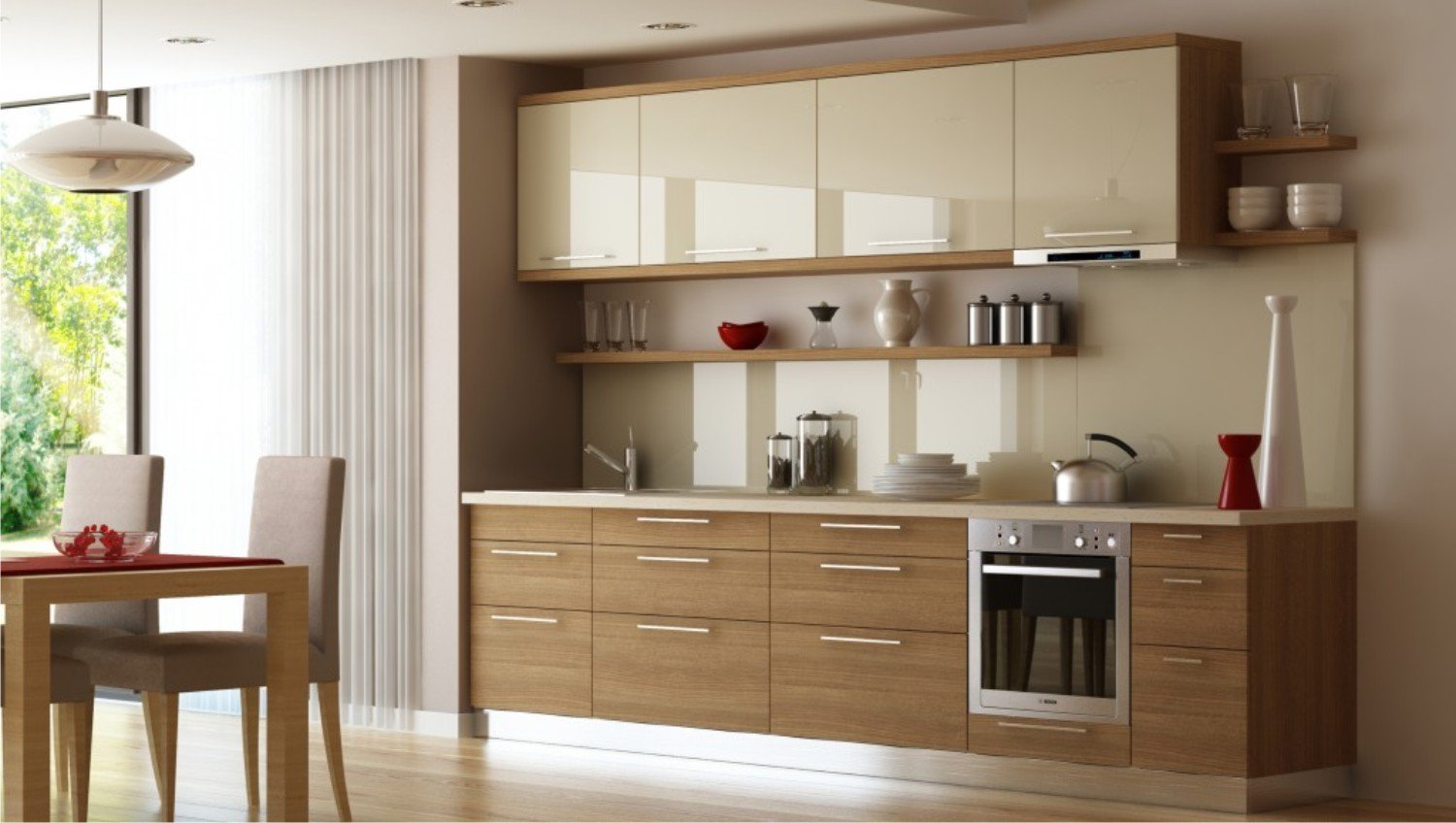 Кремовая кухня с деревом