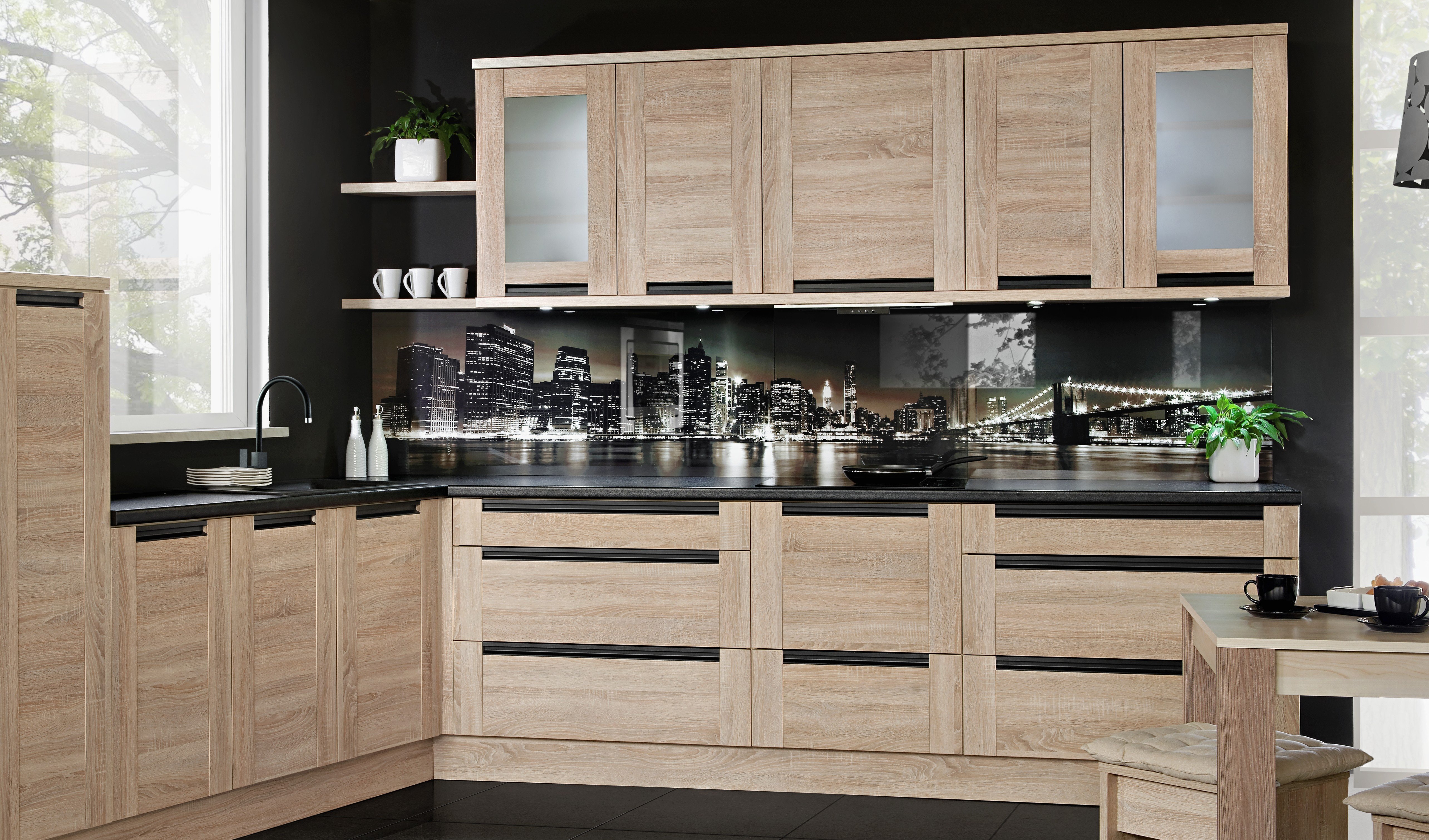 Кухня под дерево с темной столешницей