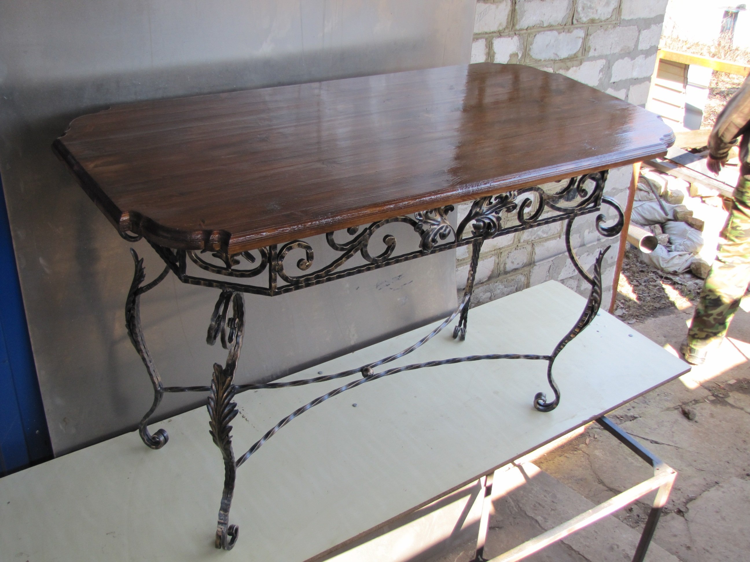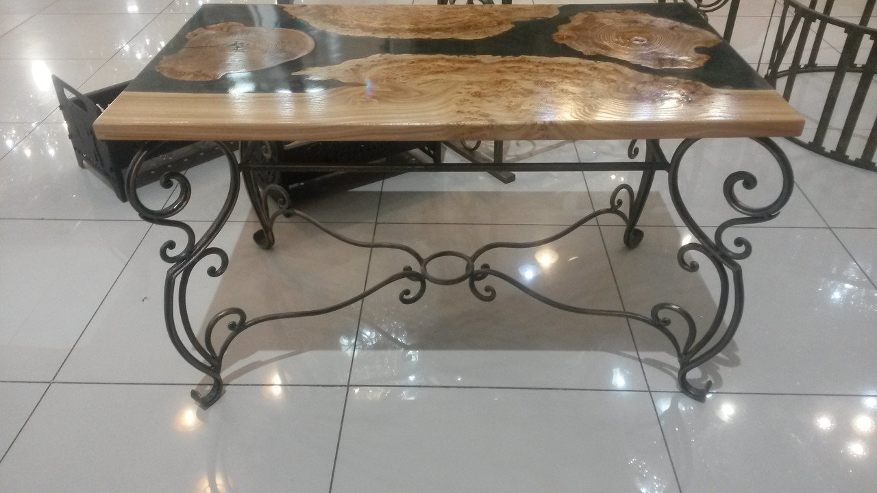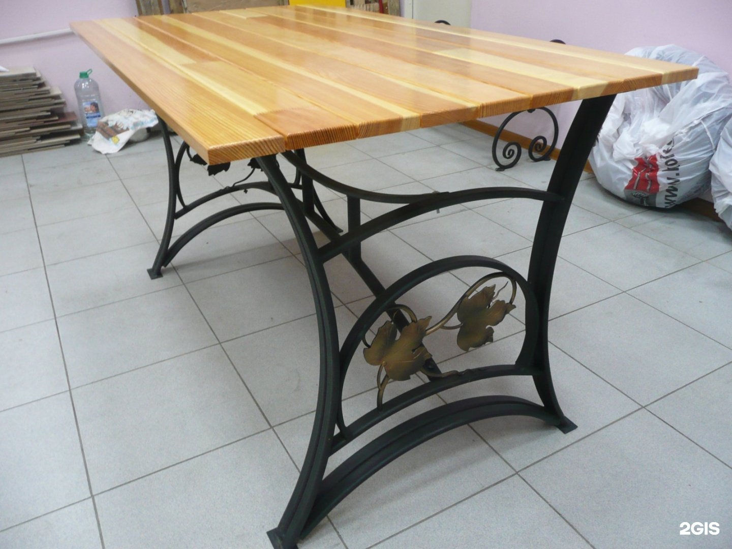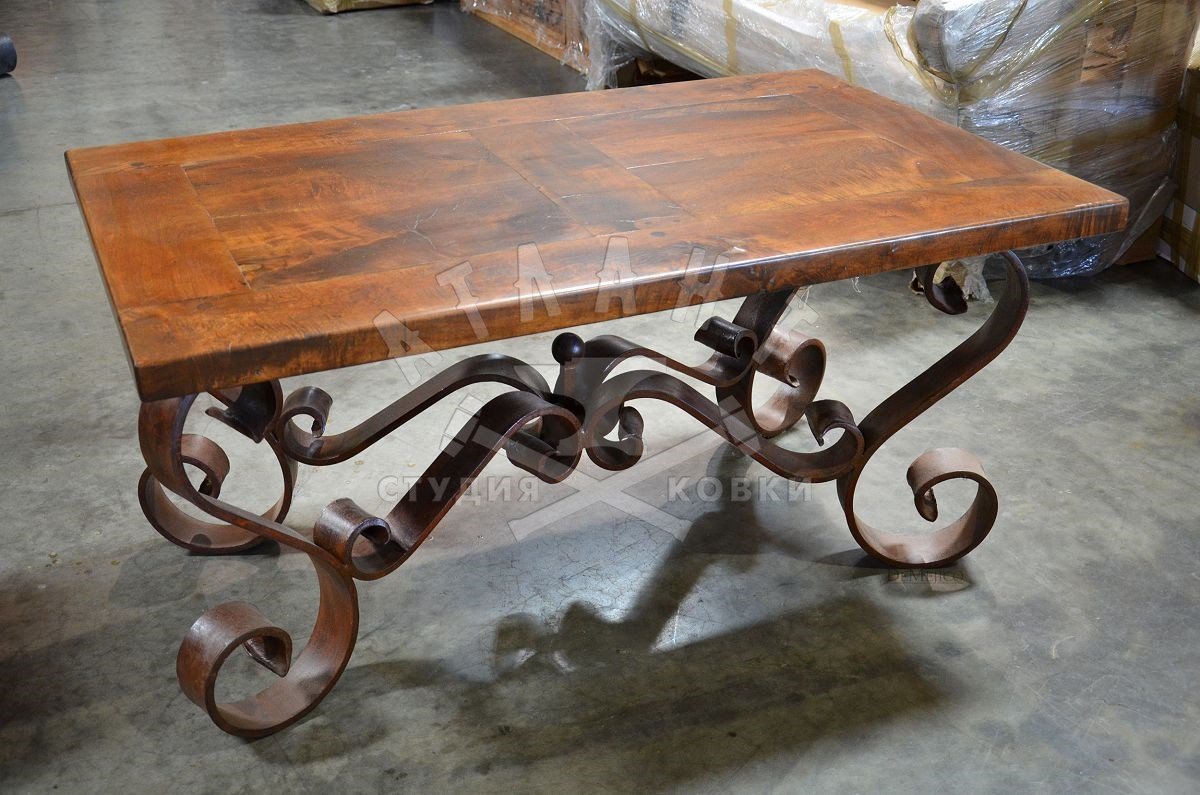 Стол кованый с деревянной столешницей фото в интерьере гостиной