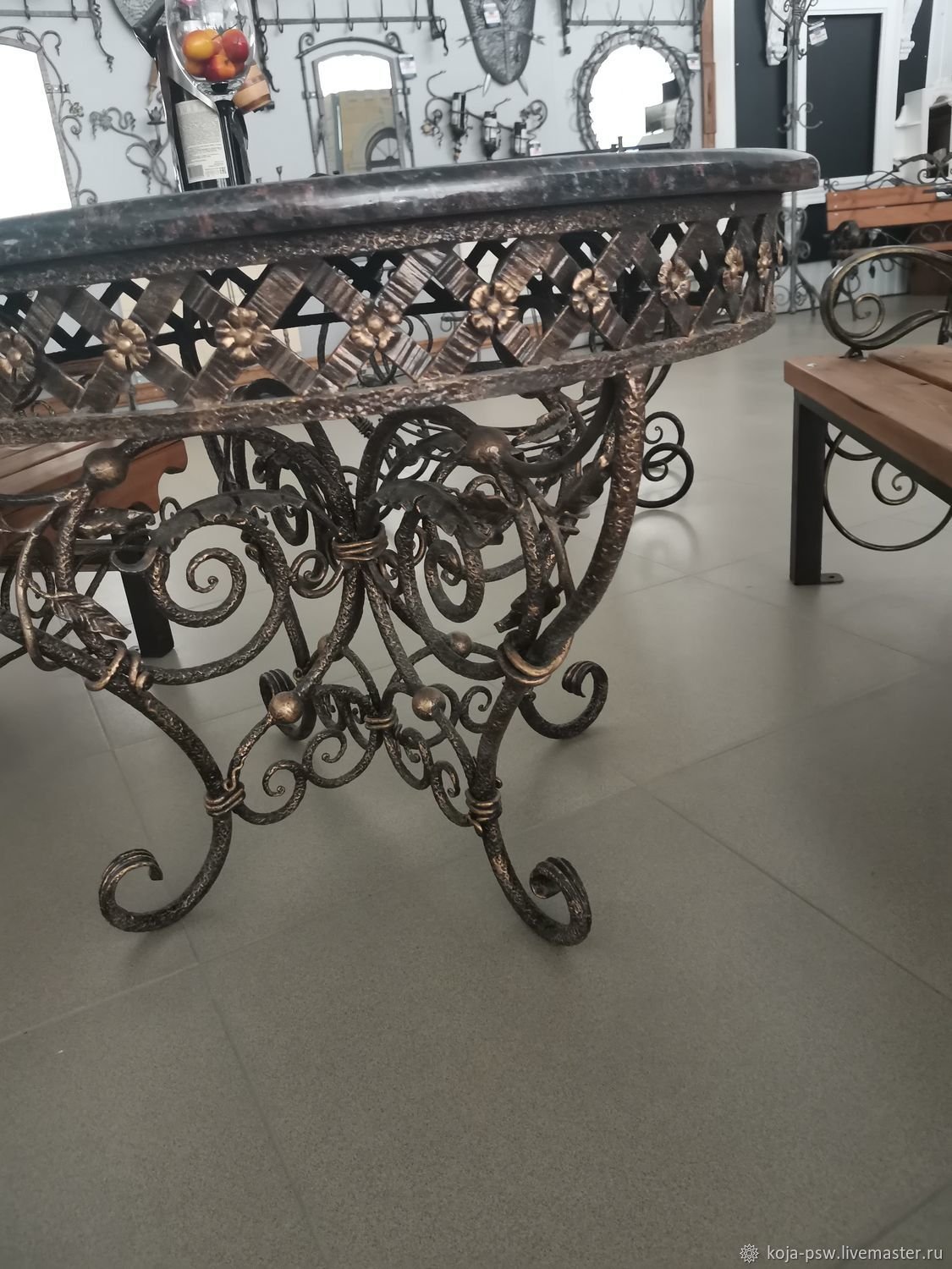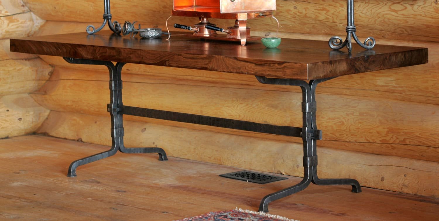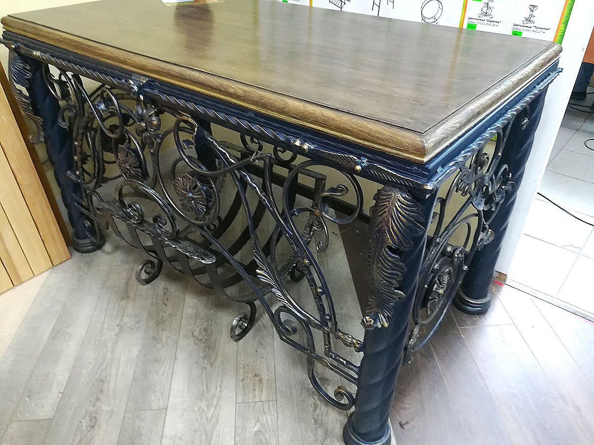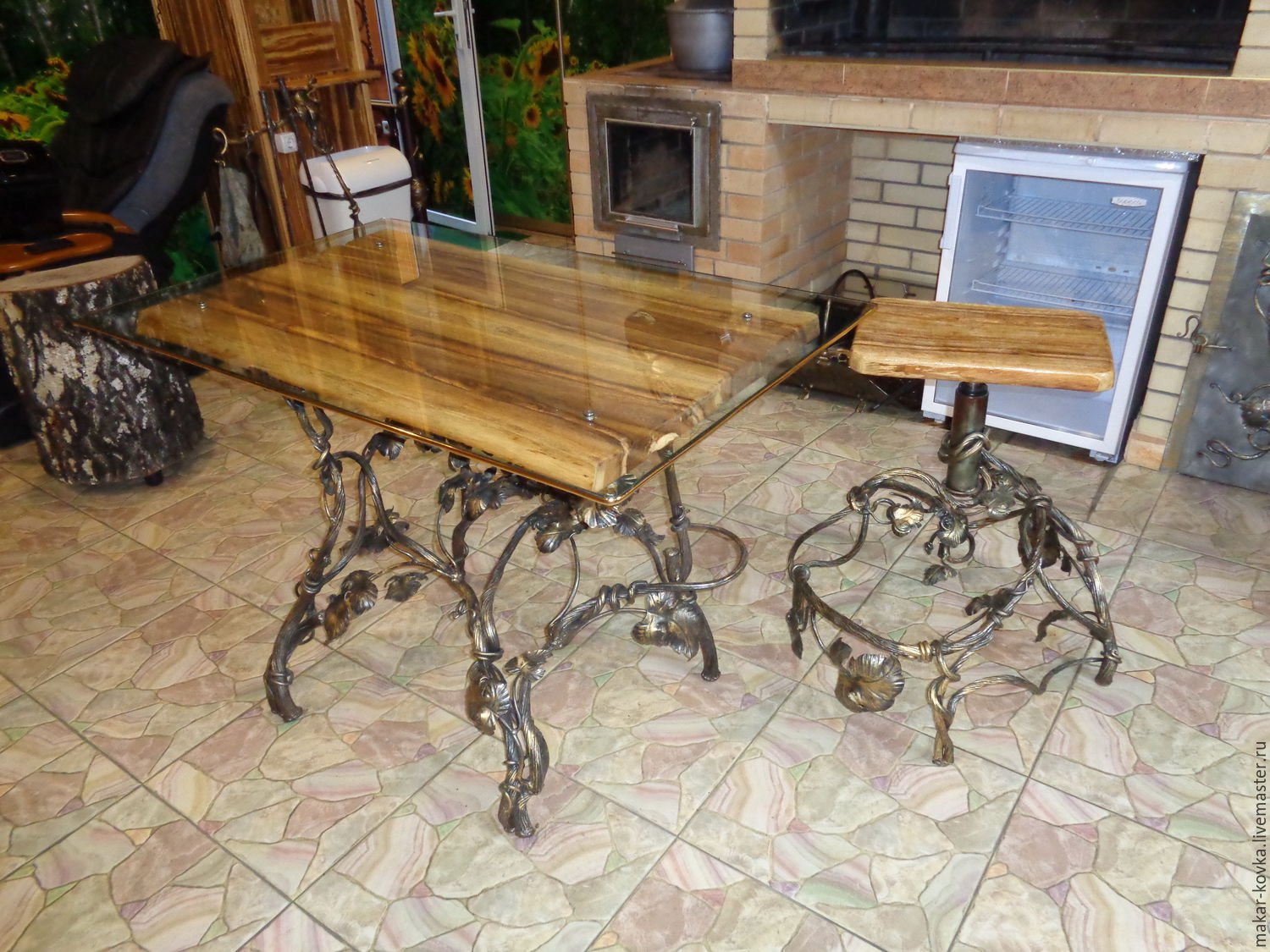 Стол кованый с деревянной столешницей фото в интерьере гостиной