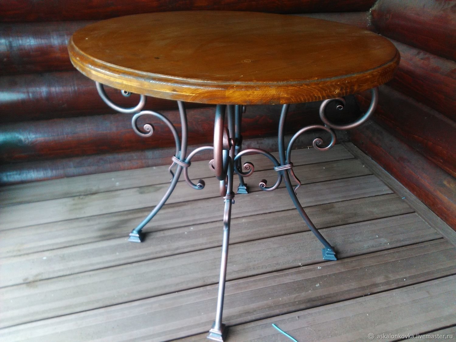 Кованый журнальный столик с деревянной столешницей из профтрубы