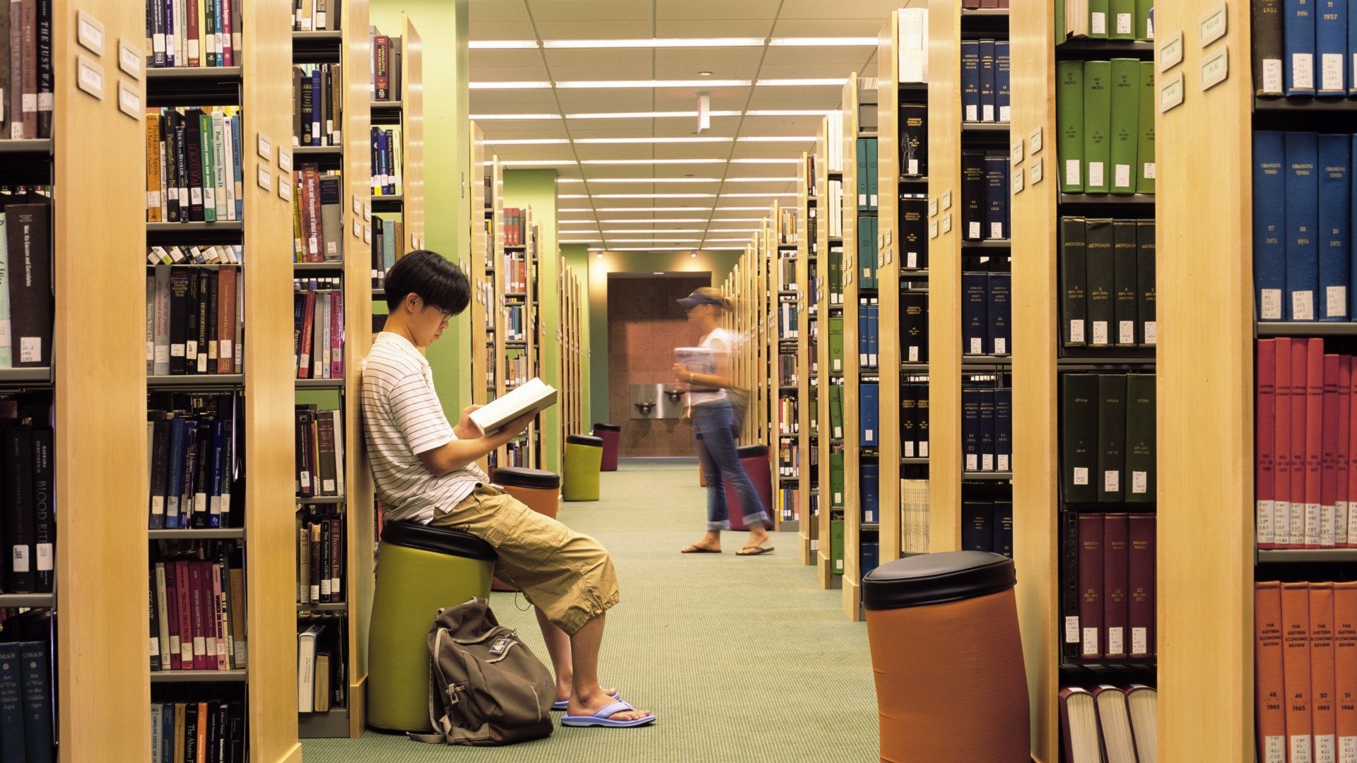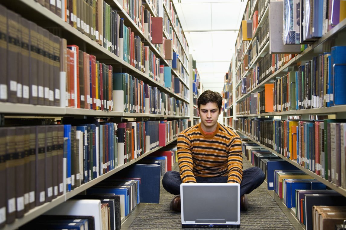 Стеллажи с книгами в библиотеке