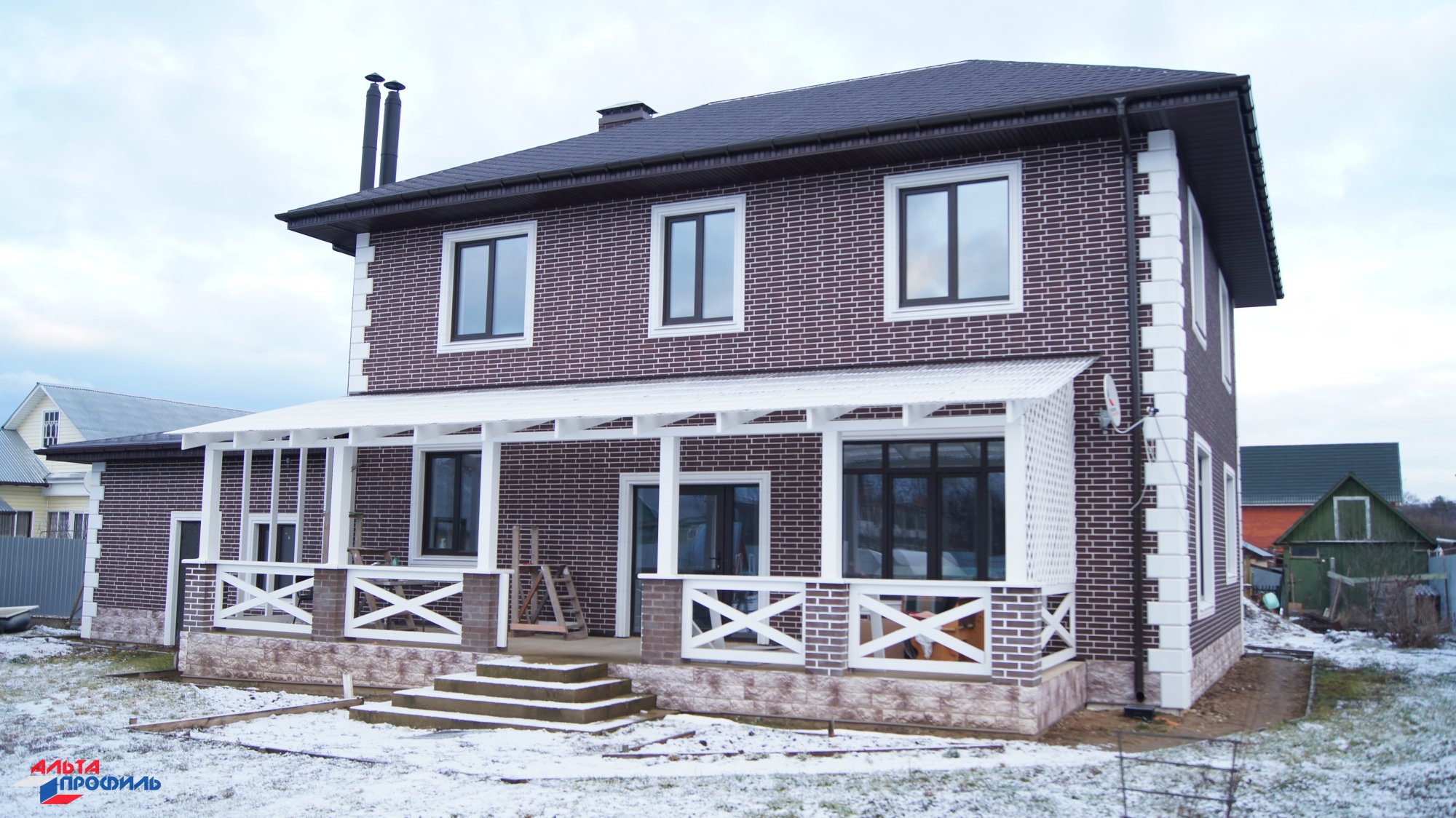 Дом обшитый Альта профиль кирпич