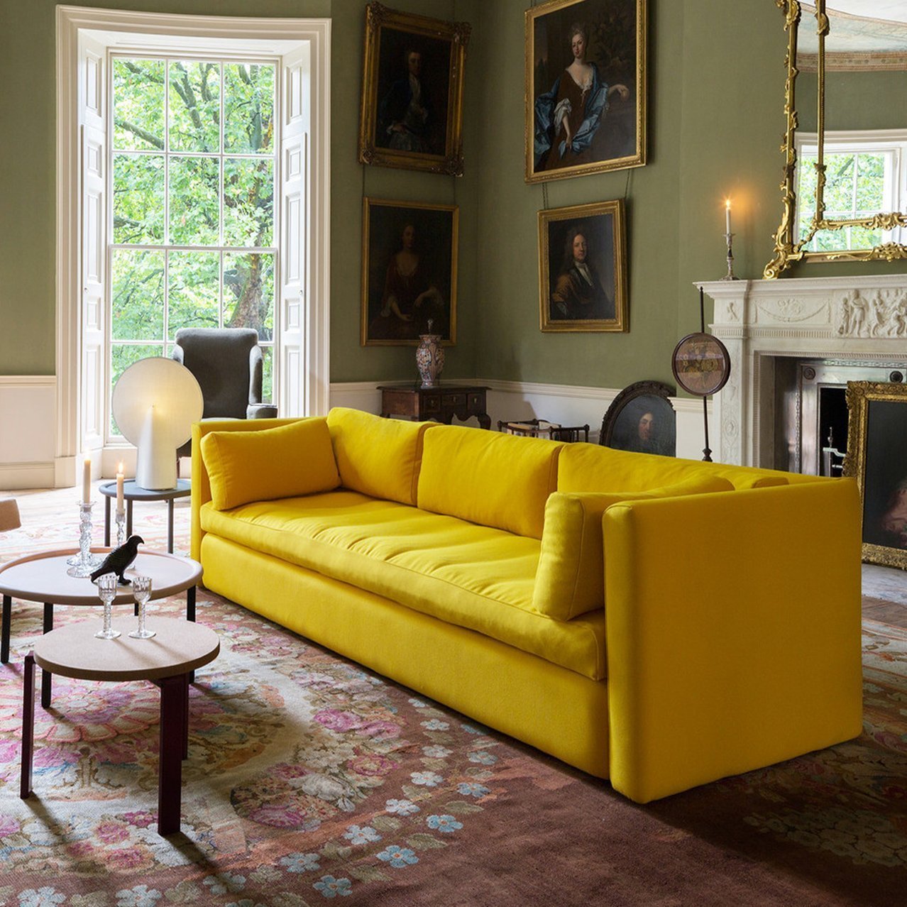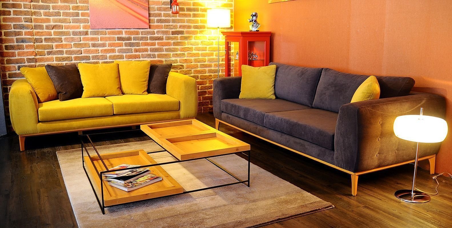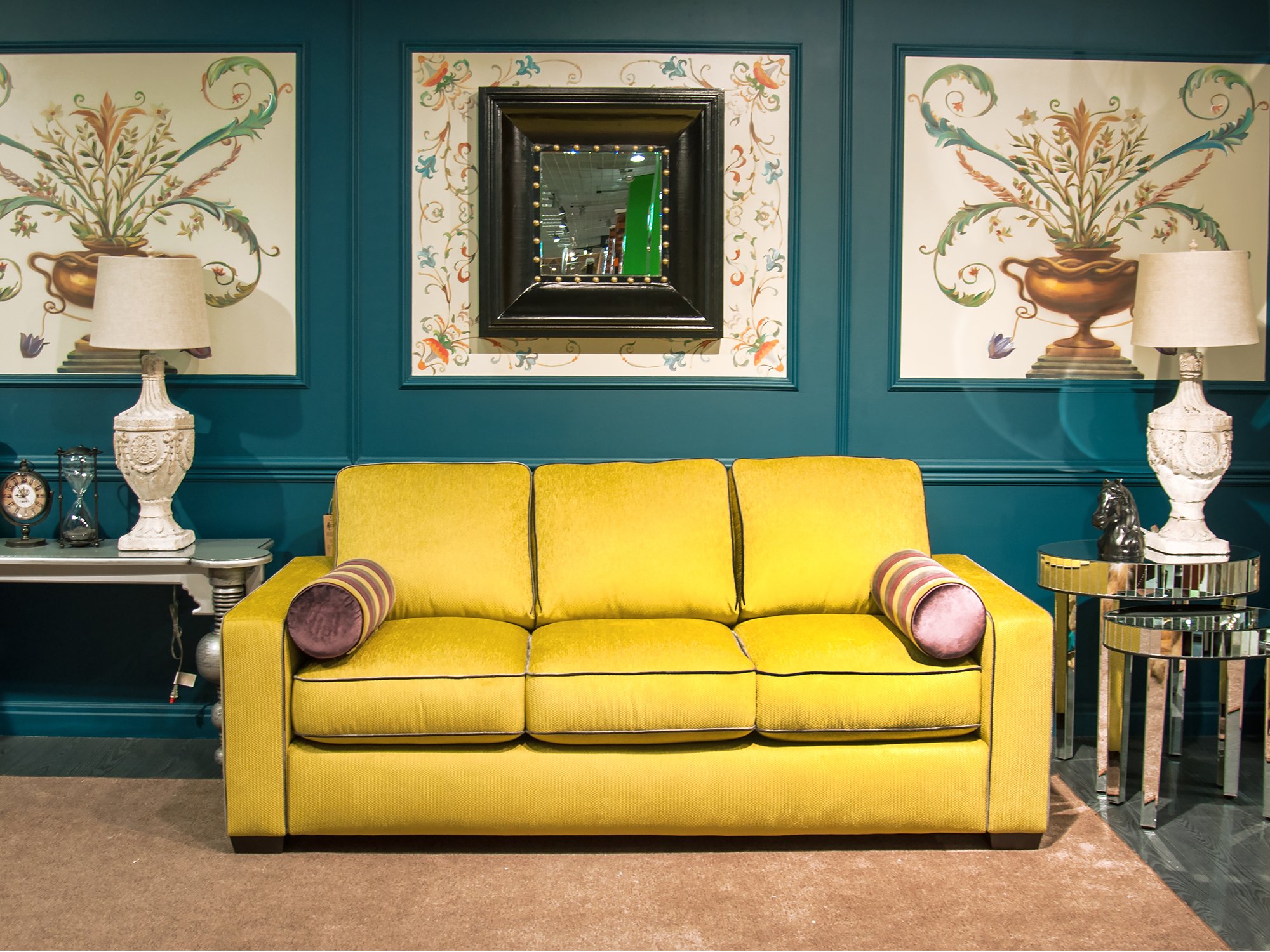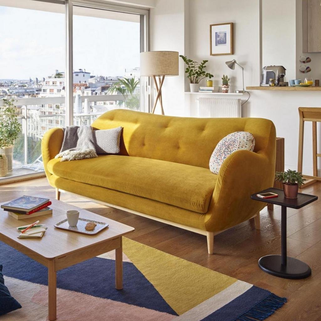Диван горчичного цвета в интерьере
