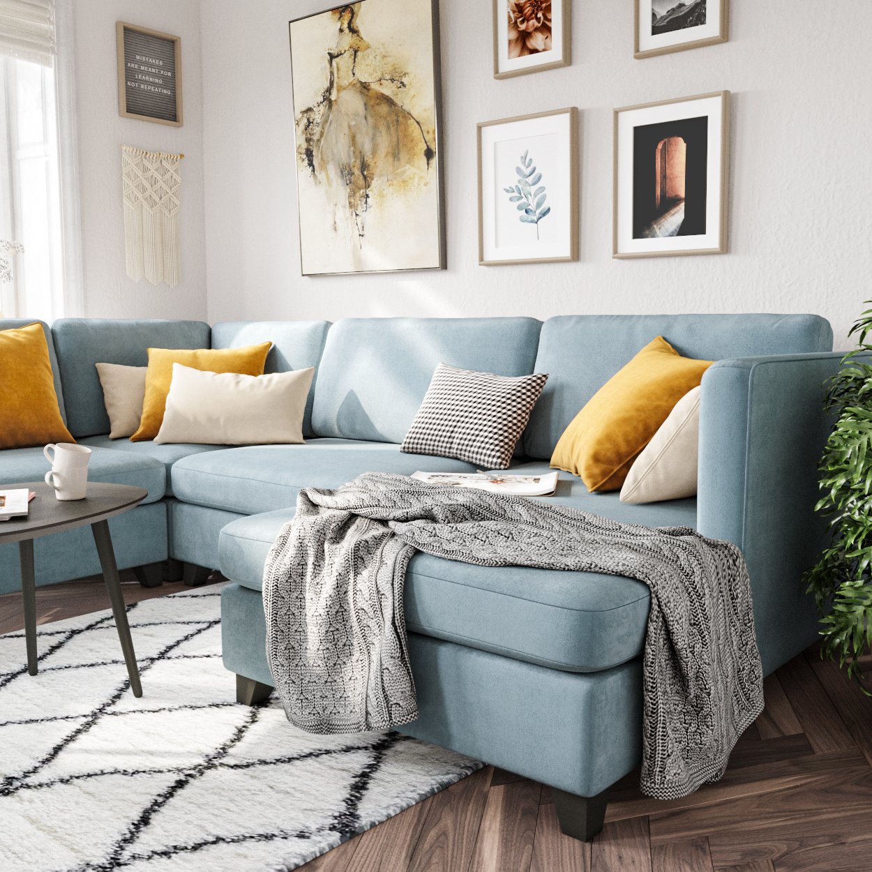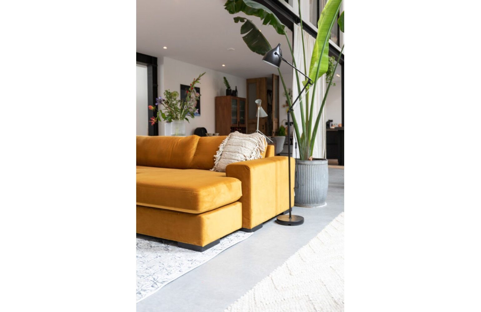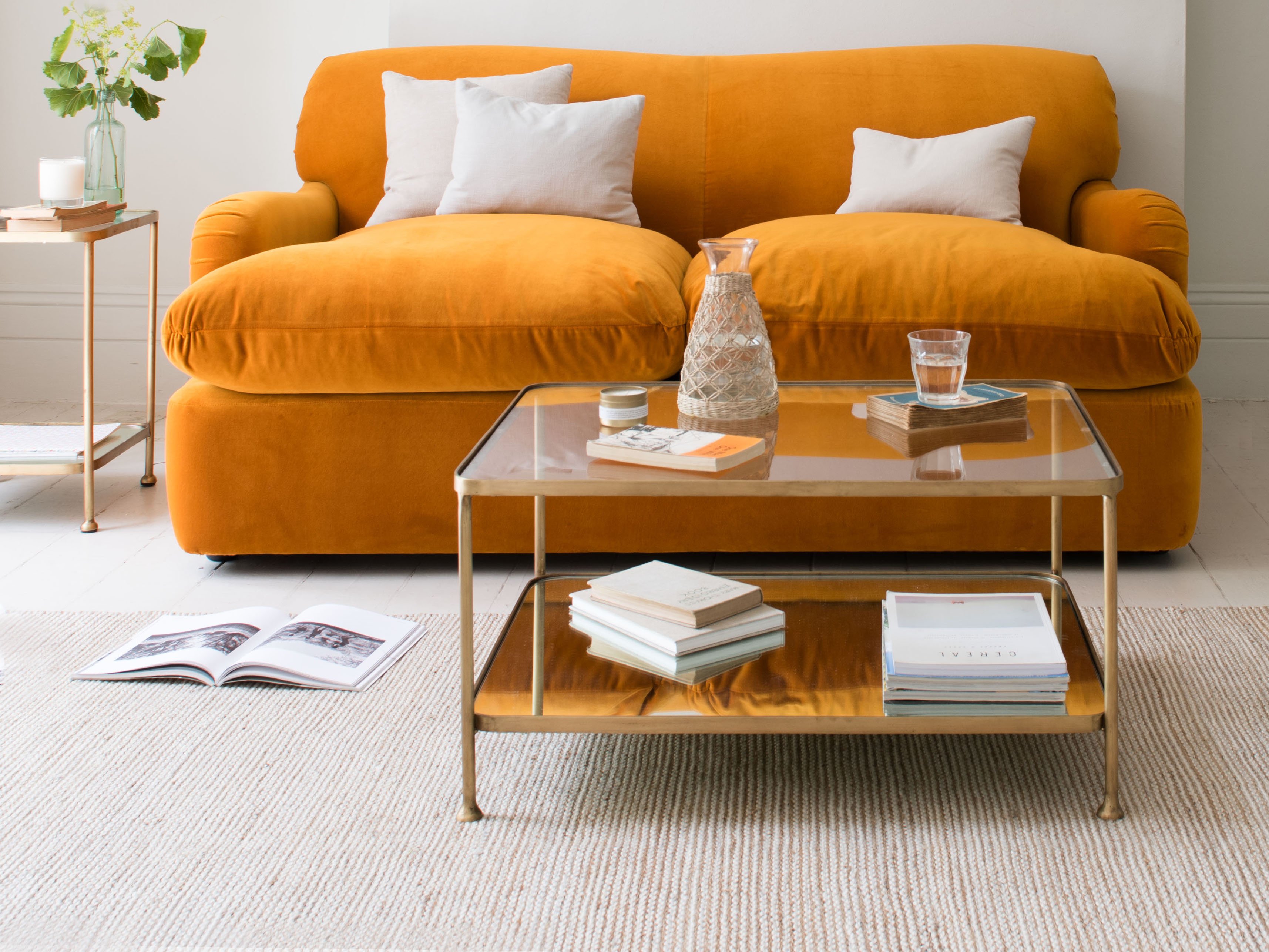 Диван горчичного цвета в интерьере