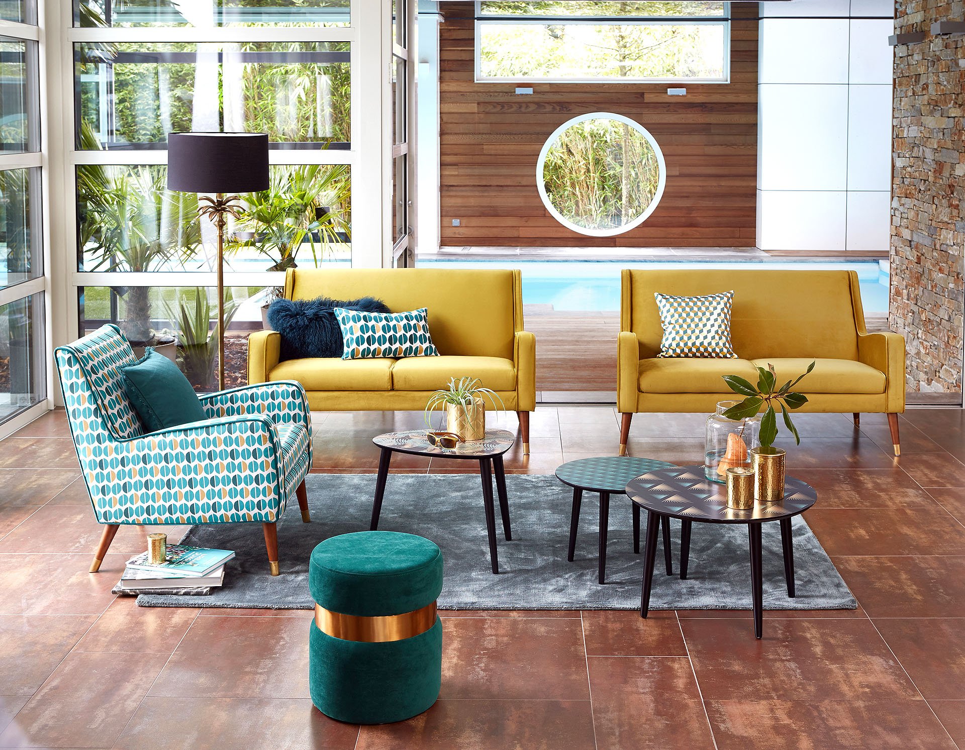 Бирюзовый и горчичный в интерьере